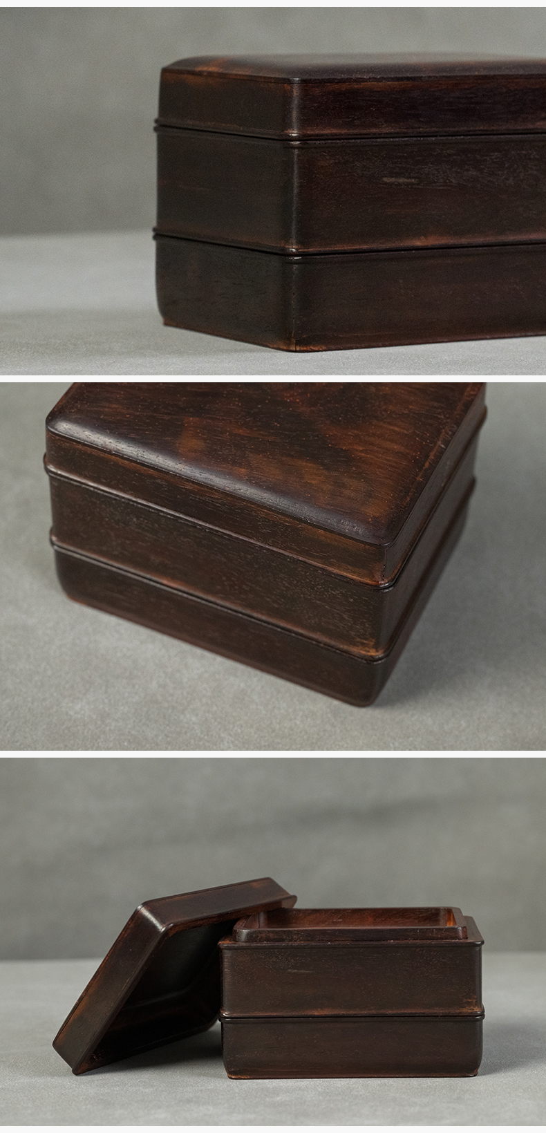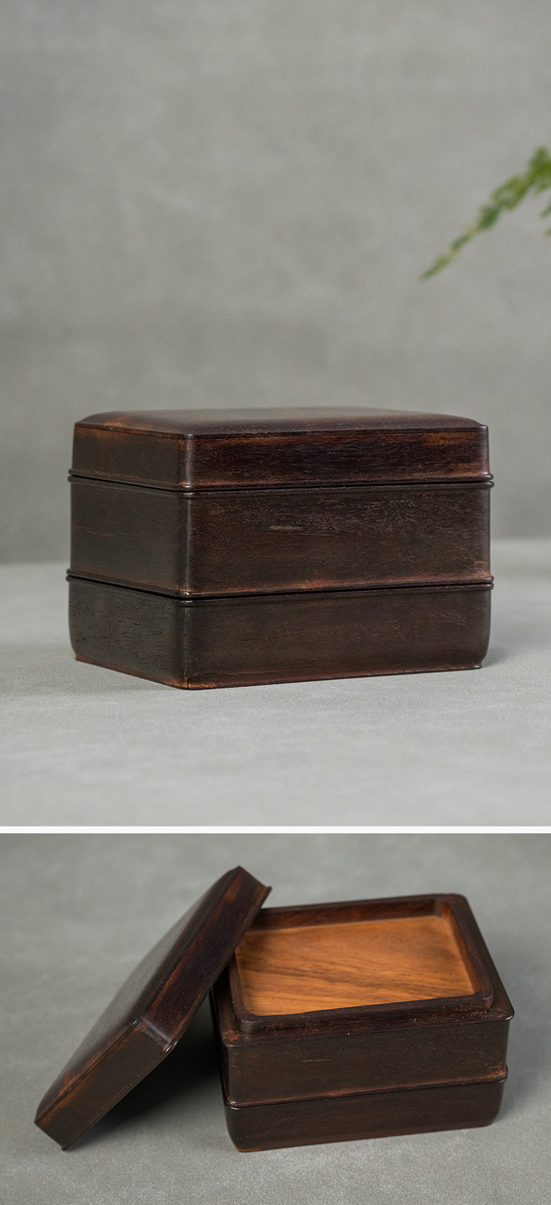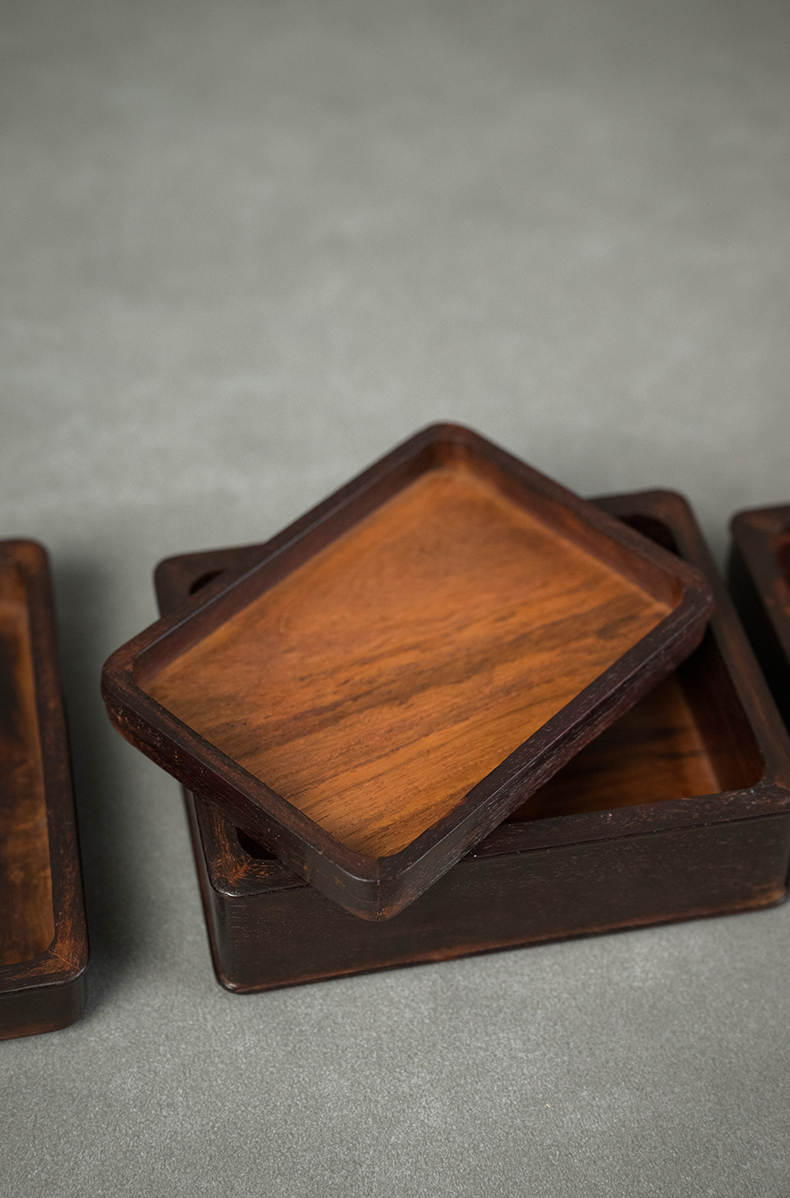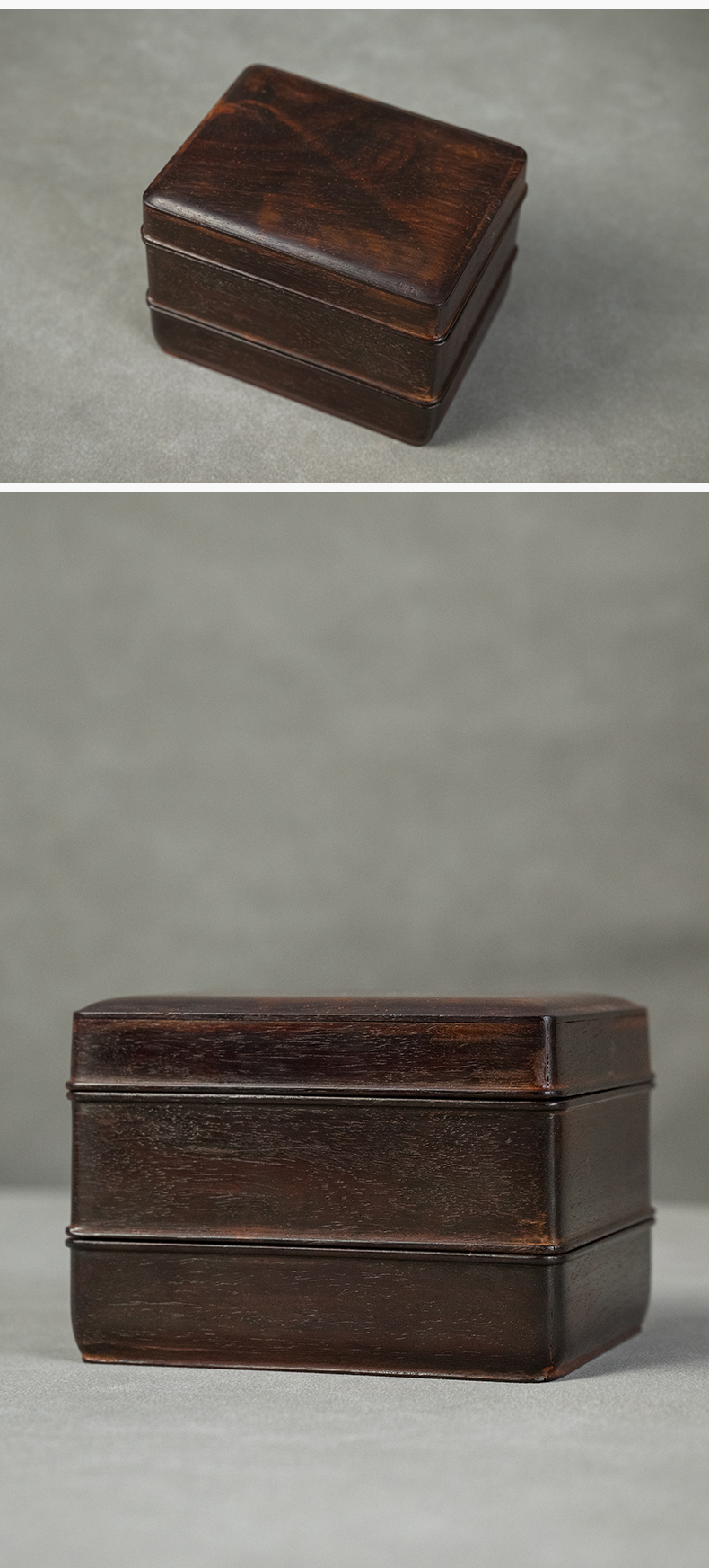 二十世纪 紫檀嵌黄花梨双层盖盒