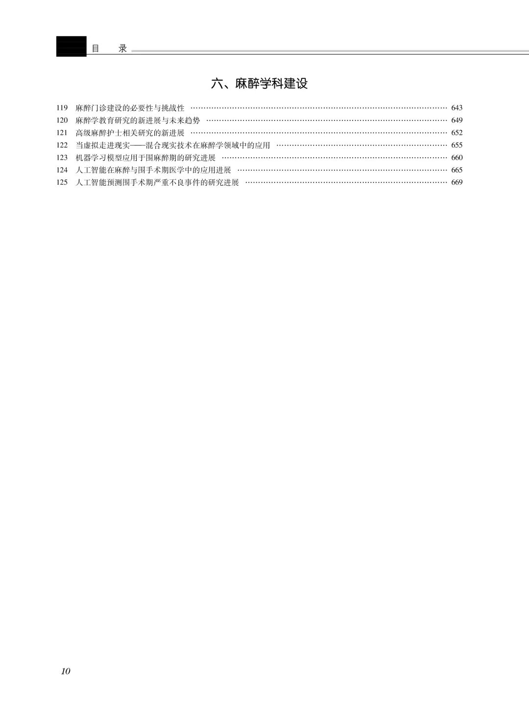 在传统的追求围手术期安全性的问题之外,麻醉科医师和患者更多地开始追求医疗服务的舒适性,让患者得以在一个轻松而舒适的氛围下接受外科手术,从而更加快速地恢复。随着虚拟现实技术、人工智能理念的发展,在麻醉学的日常工作中的应用越来越广泛,本辑中包含了舒适化医疗结合信息技术发展方面的内容,例如虚拟现实技术在分娩疼痛管理等麻醉学领域中的应用、人工智能在预测围手术期严重不良事件等麻醉与围手术期医学中应用等多篇研究进展。此外,围手术期睡眠障碍、围手术期情绪优化、高级麻醉护士等之前医护人员较少关注的研究领域重要问题“新进展”在本书中均有所体现。希望通过我们的努力,为繁忙的麻醉从业者提供新颖、重要和全面的前沿知识,方便大家快速系统地掌握学科发展的前沿,同时带来更有益的思考。