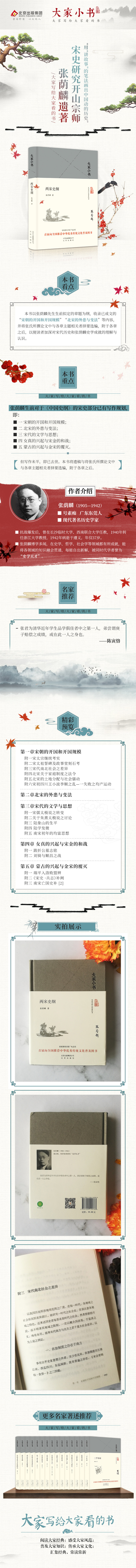 张荫麟生前对于《中国史纲》的宋史部分已有写作规划,即:一、宋朝的开国和开国规模;二、北宋的外患与变法;三、宋代的文学与思想;四、女真的兴起与宋金的和战;五、蒙古的兴起与金宋的覆灭。但写作未半,即已去世。本书以张氏拟定章题为纲,收录已成文的*章、第二章及中辍的第三章*节全部内容,并将张氏所撰论文中与各章主题相关者择要选编,附于各章之后,以便读者加深对宋代历史和张荫麟史学成就的理解与认识。