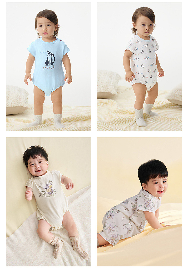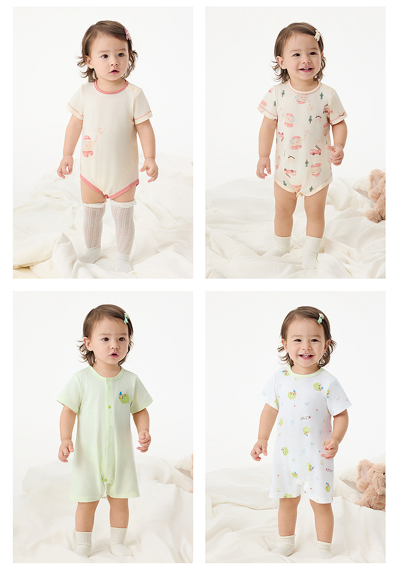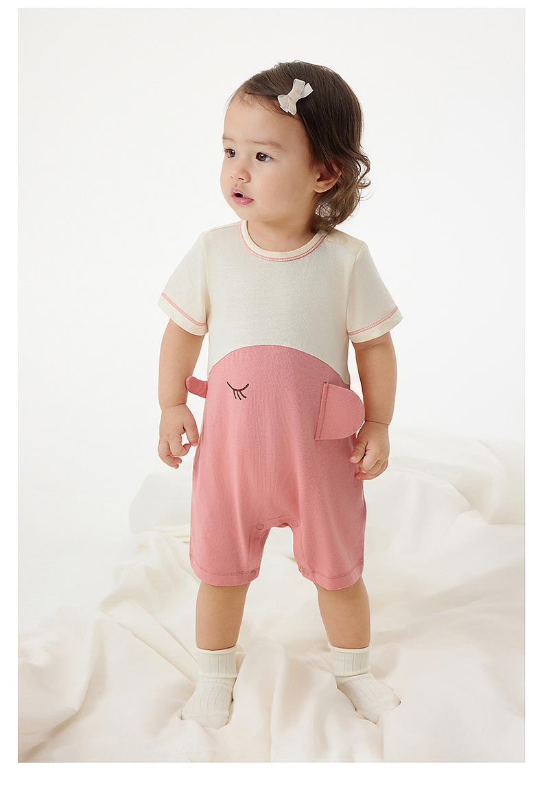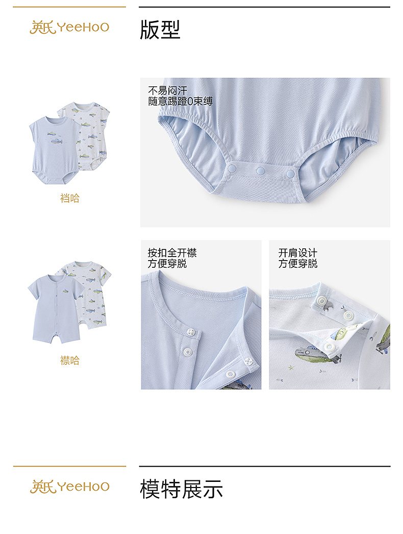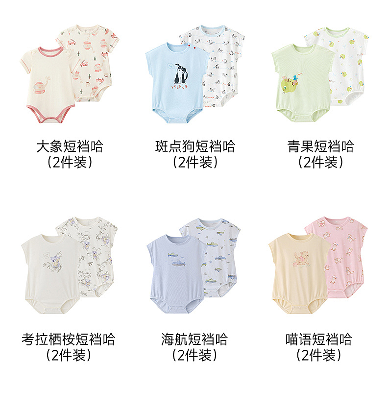 英氏婴儿哈衣新生衣服宝宝连体衣夏季纯棉短袖包屁衣春季