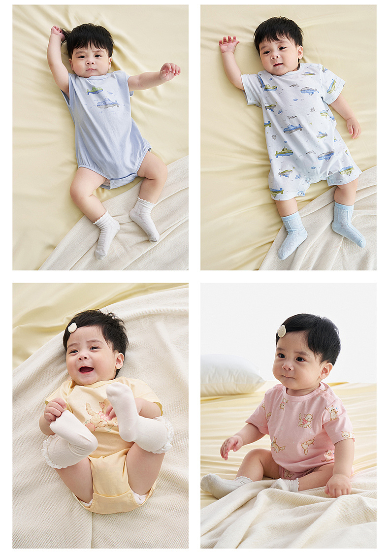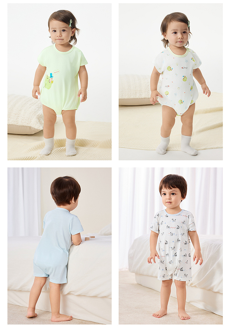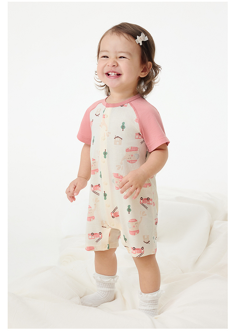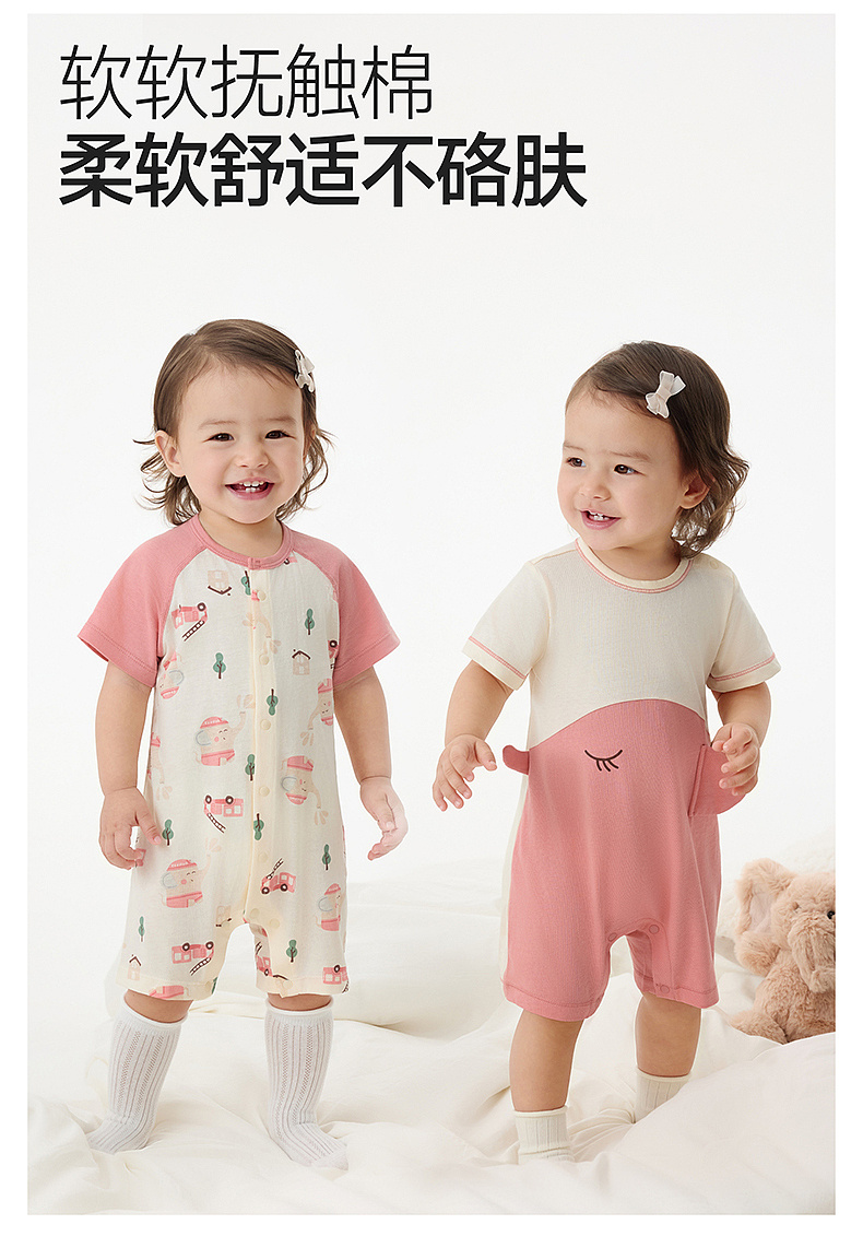 英氏婴儿哈衣新生衣服宝宝连体衣夏季纯棉短袖包屁衣春季