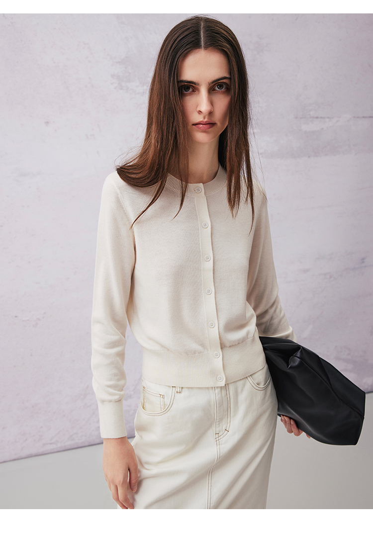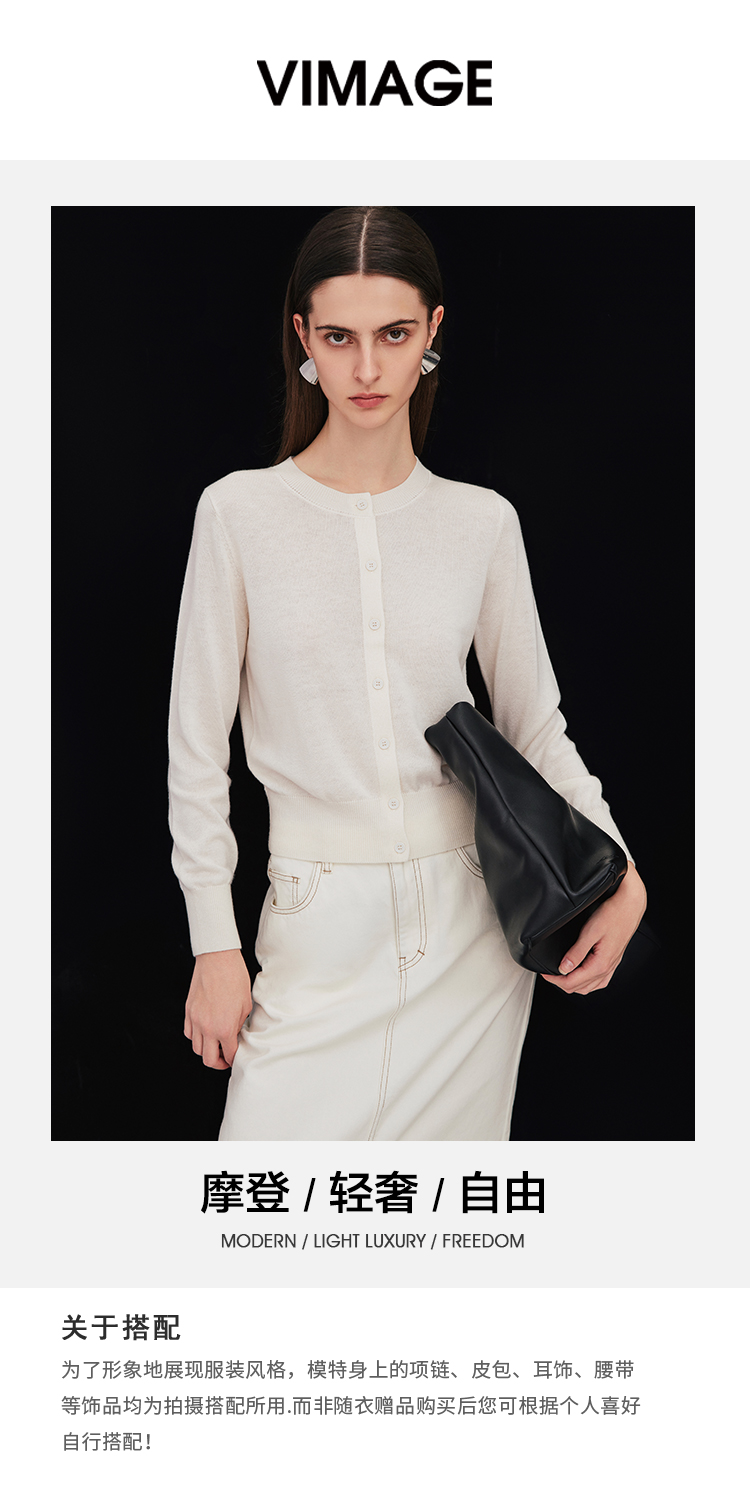 VIMAGE纬漫纪春季新款通勤气质显瘦纯色针织衫V2101718