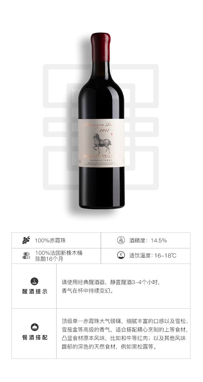 嘉地酒庄旗舰店河山单一梅洛干红葡萄酒