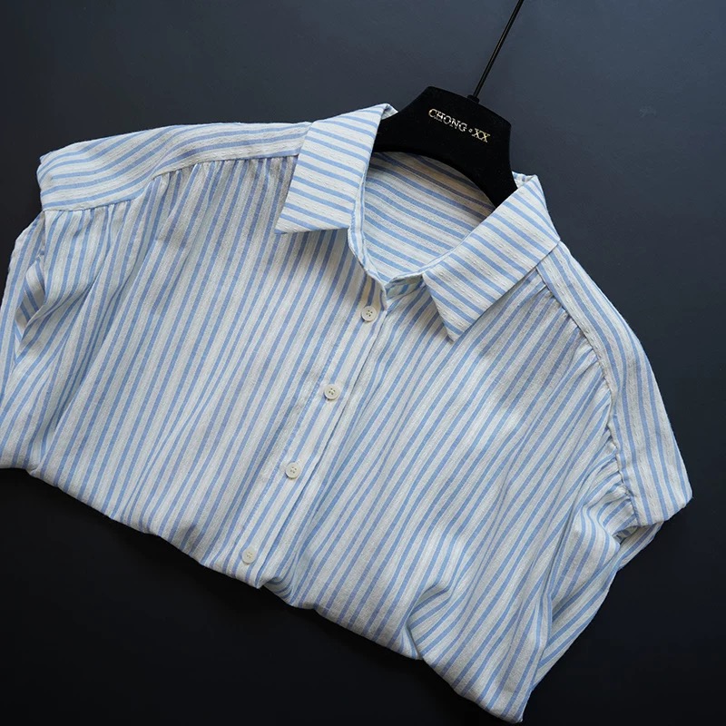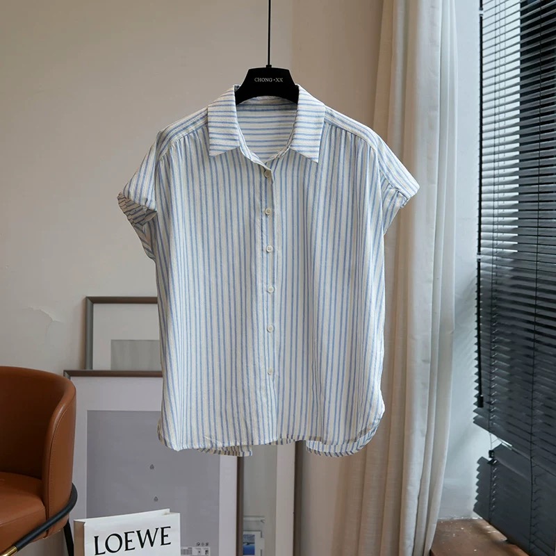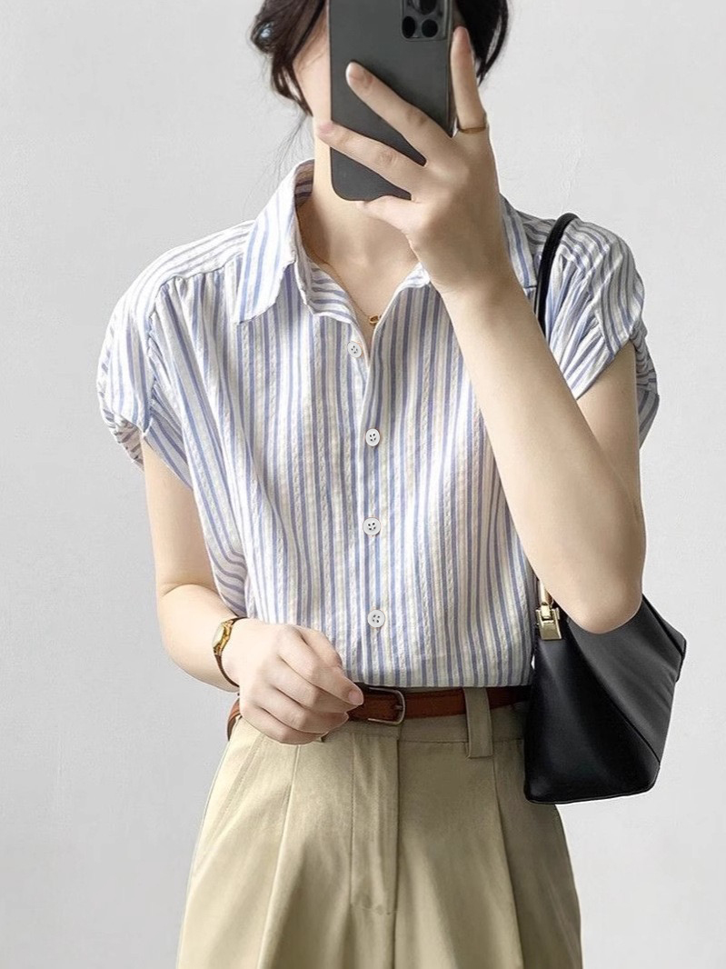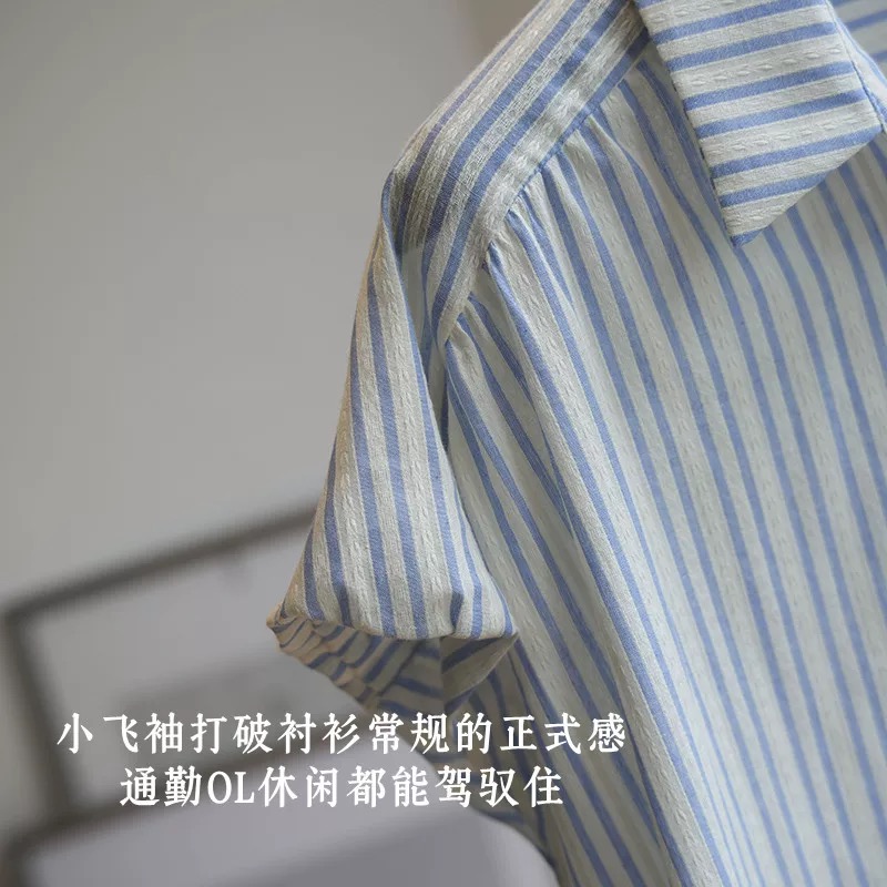 预售 年初八发货【霓颜 法式气质小飞袖条纹衬衫】80-140斤可穿,版型宽松垂顺,面料轻薄舒适柔软,上身百搭文艺风!