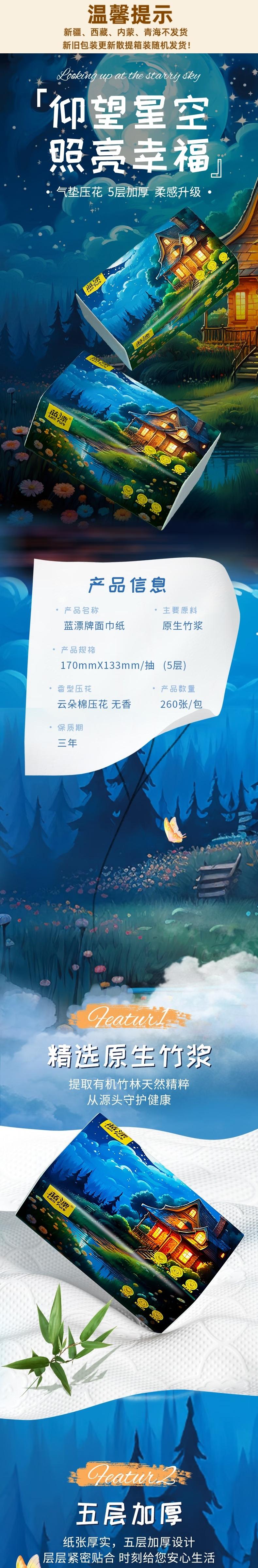 蓝漂 星空系列4D压花抽纸5层260张5包*2组共10包 LP0XCR10B