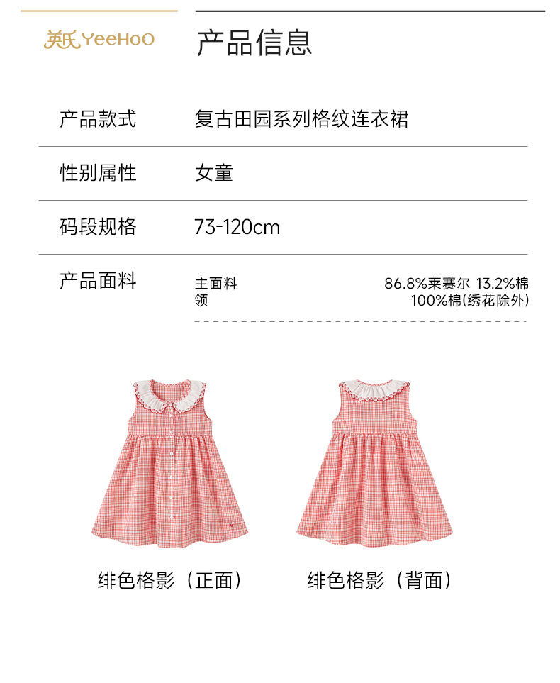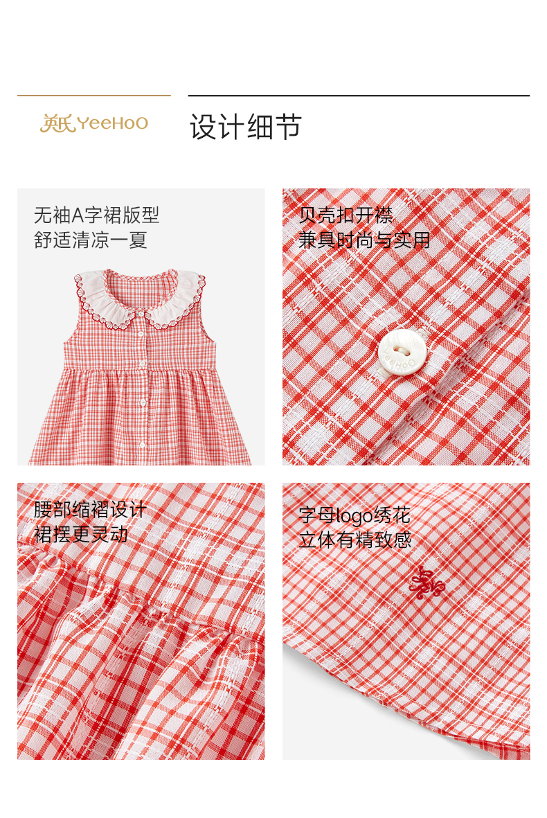 【商场同款】英氏女童背心裙夏新款红色系连衣裙儿童公主裙