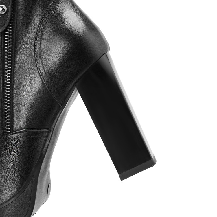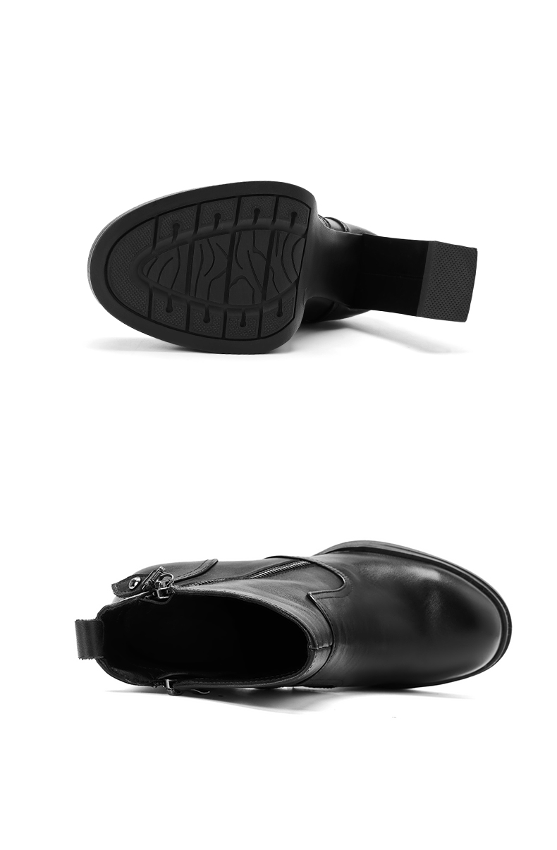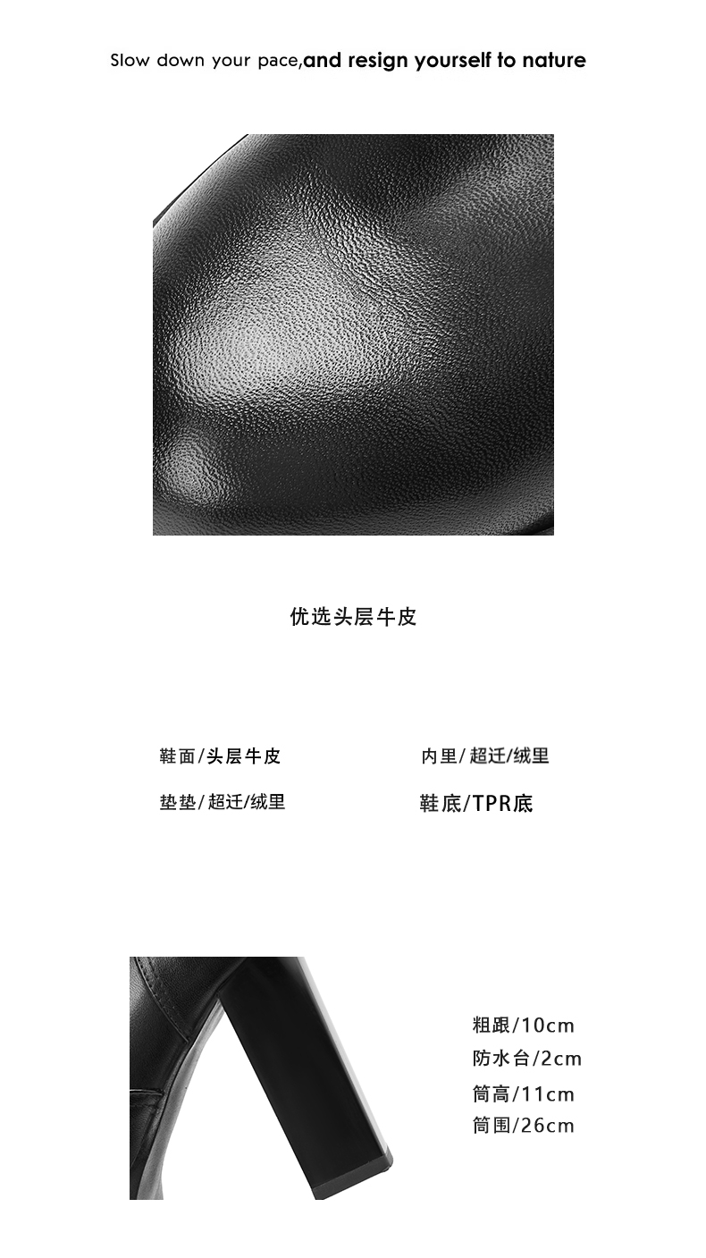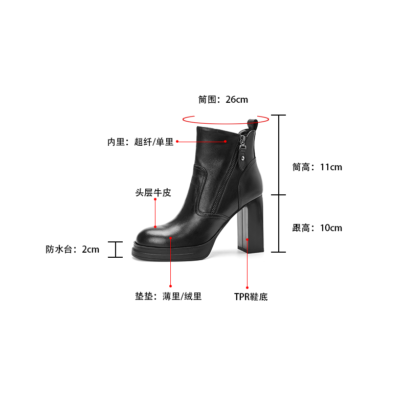 【预售5天】真皮短靴女高跟鞋秋冬季黑色马丁靴粗跟瘦瘦靴新款单靴保暖棉靴SMQ&8881