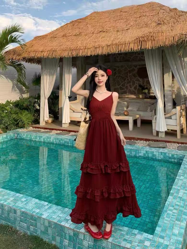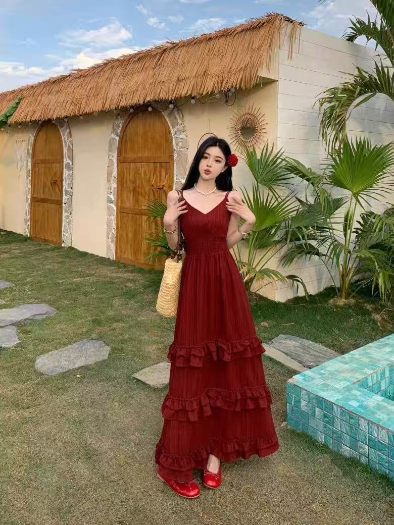 11.11最后促,不参与退货清仓处理!卡芙蒂妮0002夏日度假风吊带长裙连衣裙-喜出