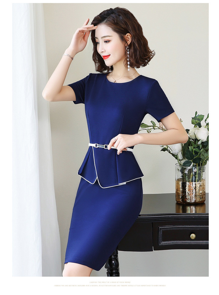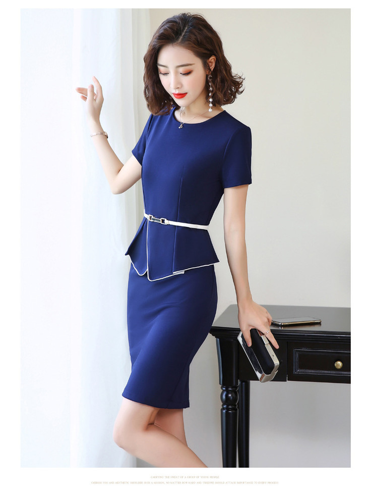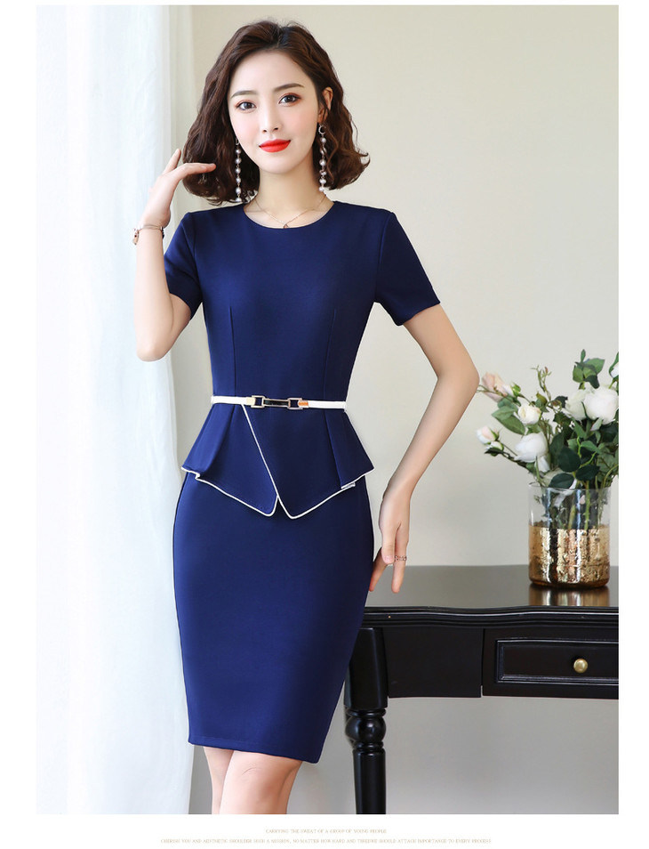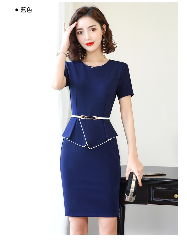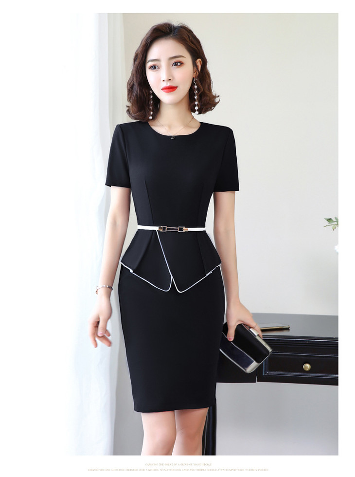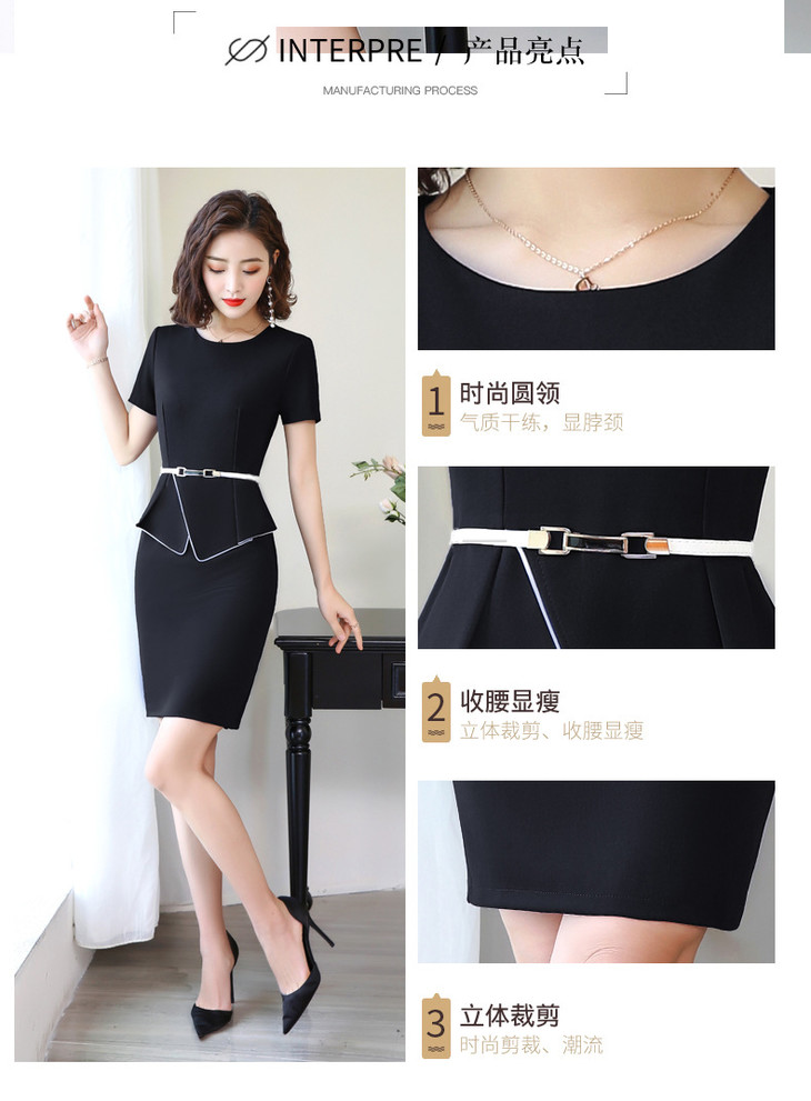 XZ-YL1986简约舒适,圆领中腰工作服短袖连衣裙
