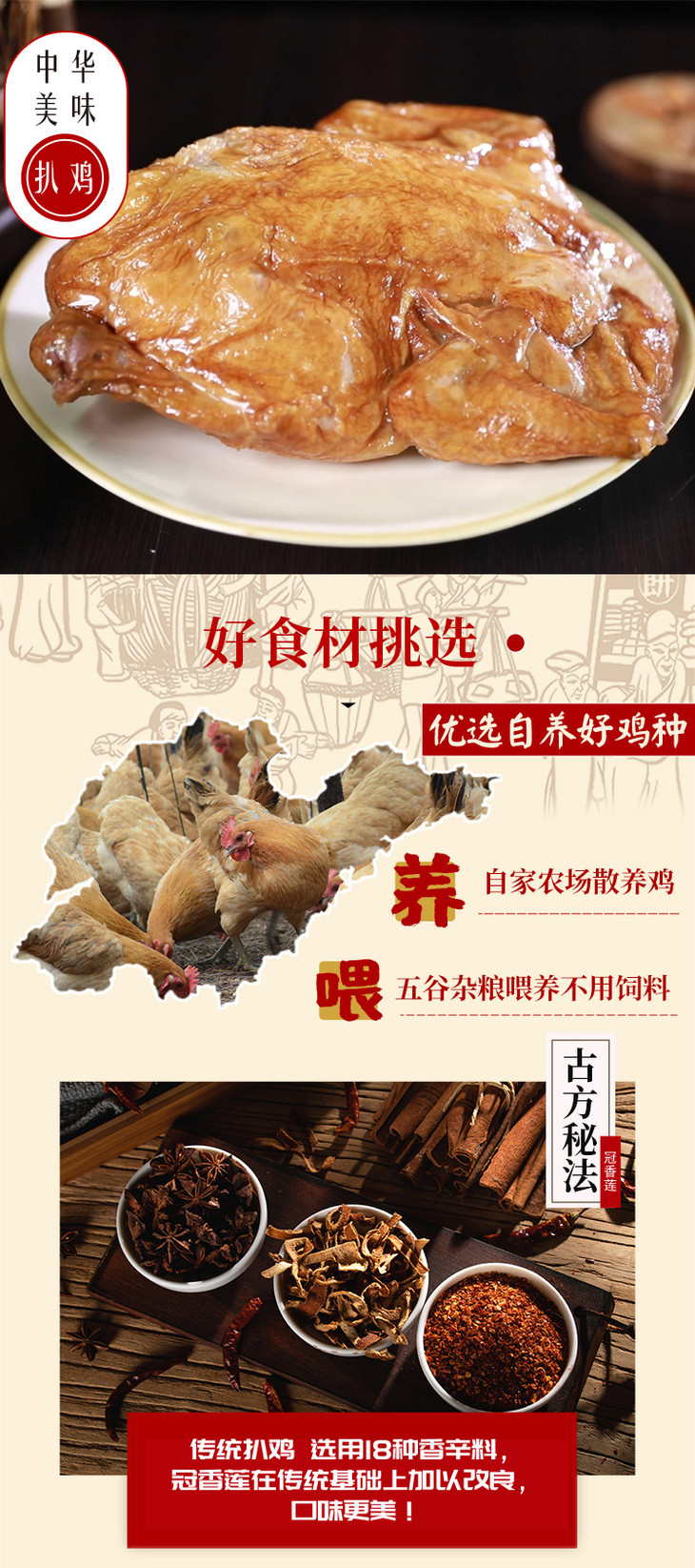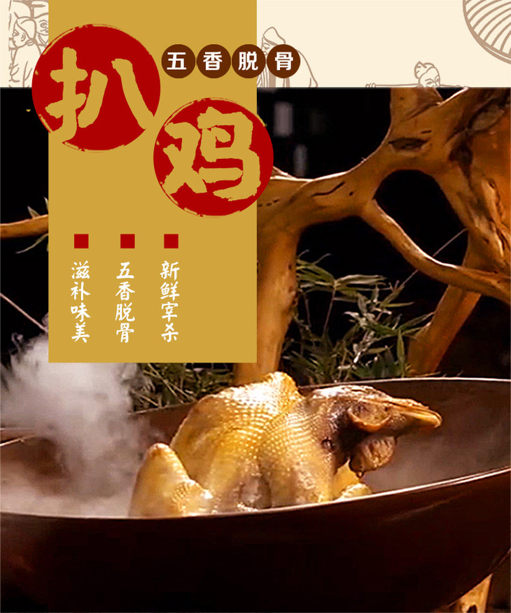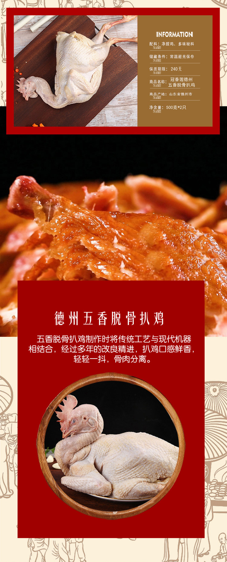 【快递停发,2月26日陆续发货】冠香莲 德州五香脱骨扒鸡 礼盒装 1kg/箱 2只装