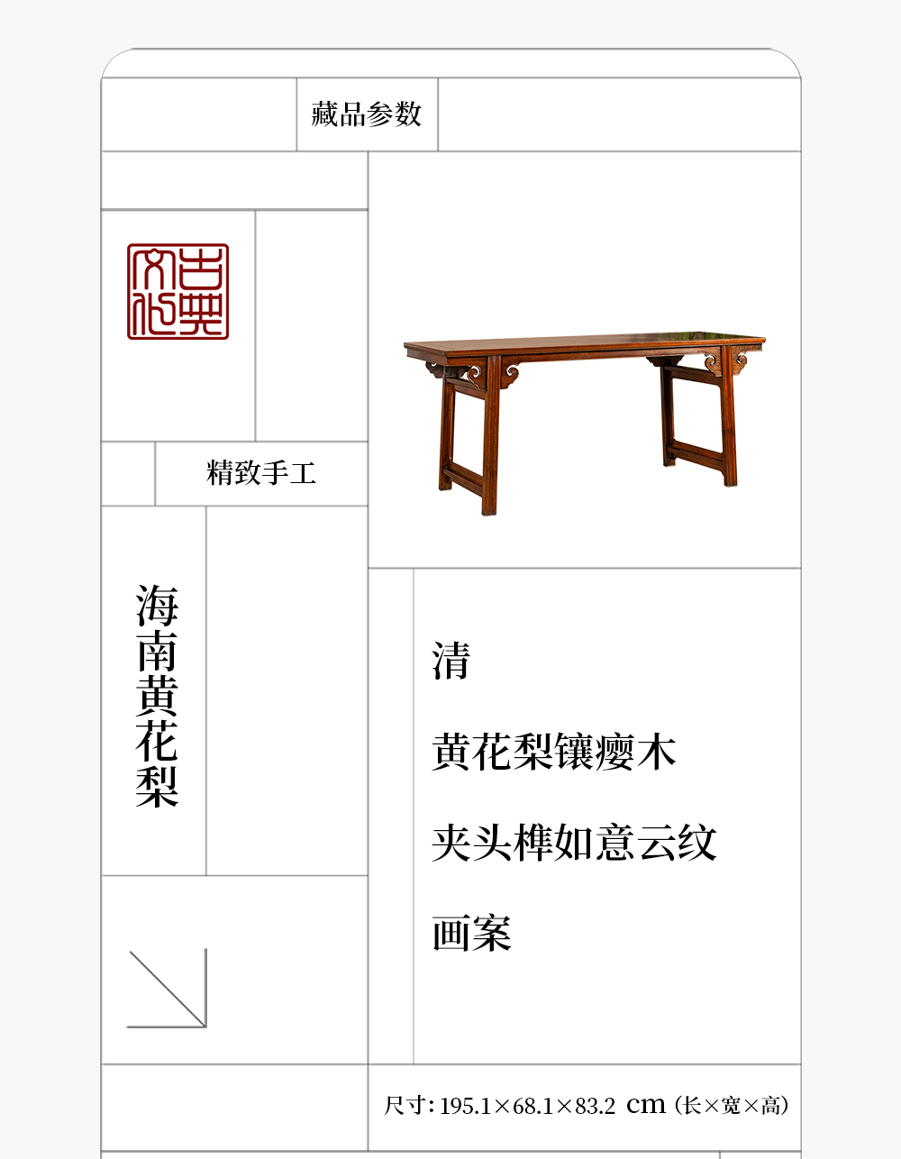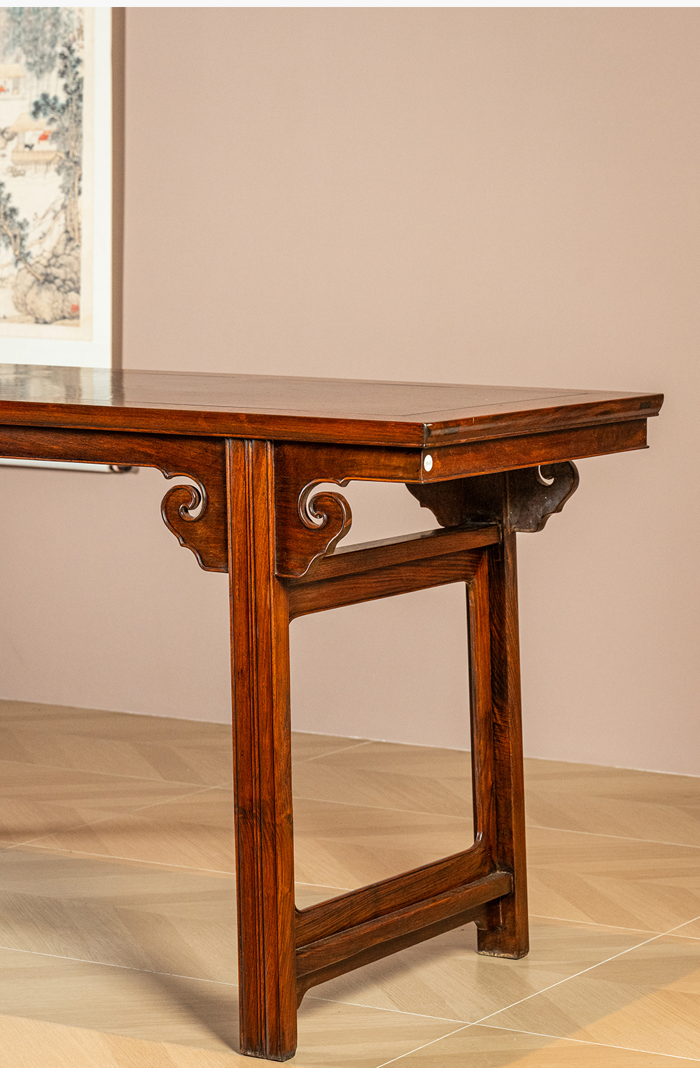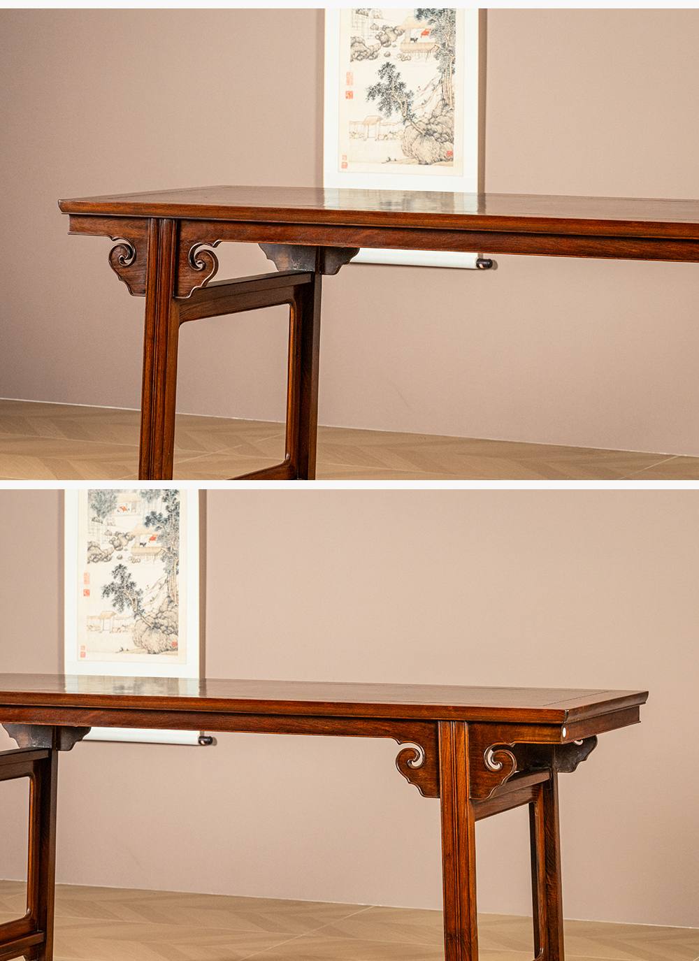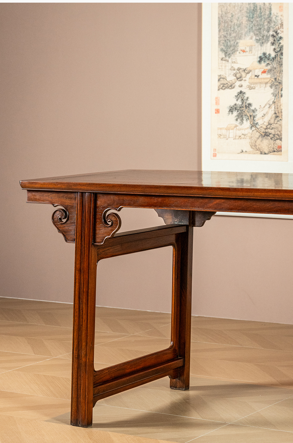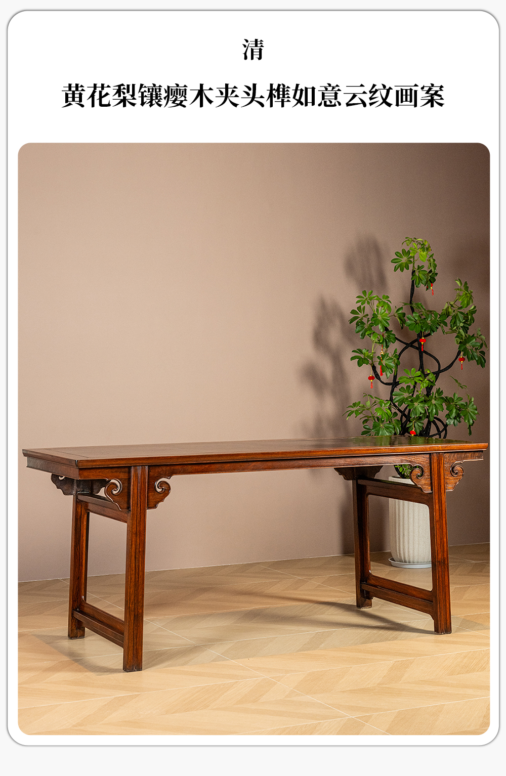 清 黄花梨镶瘿木夹头榫如意云纹画案