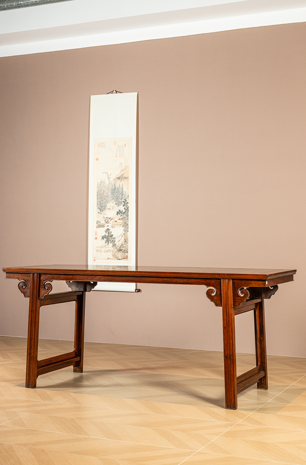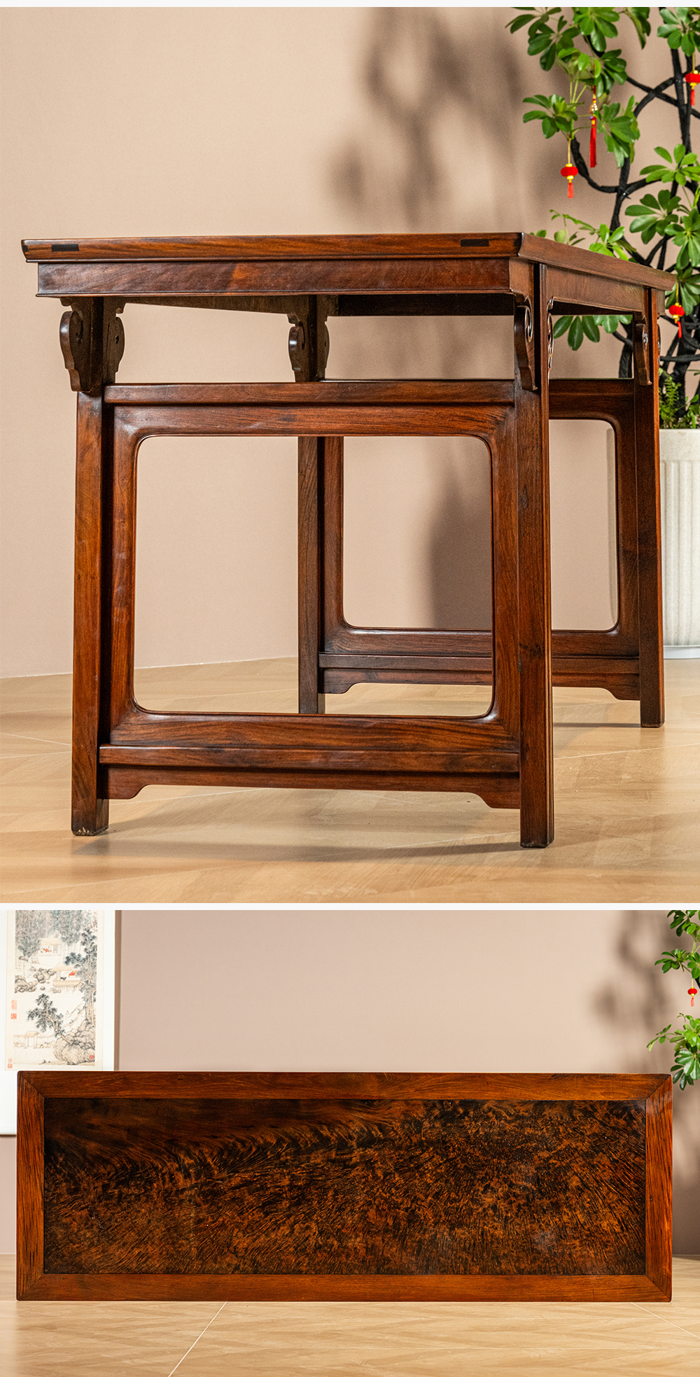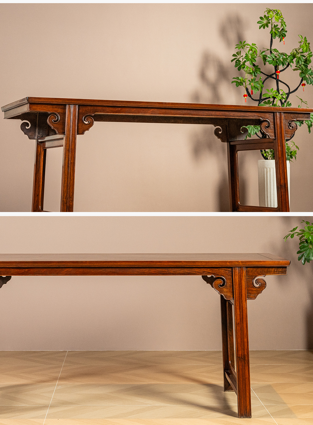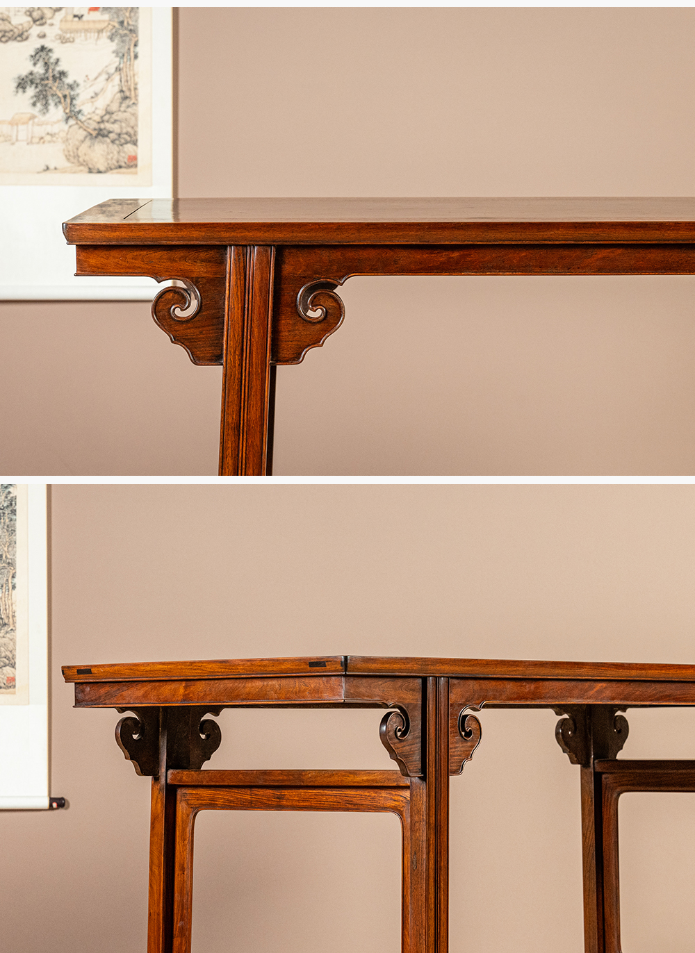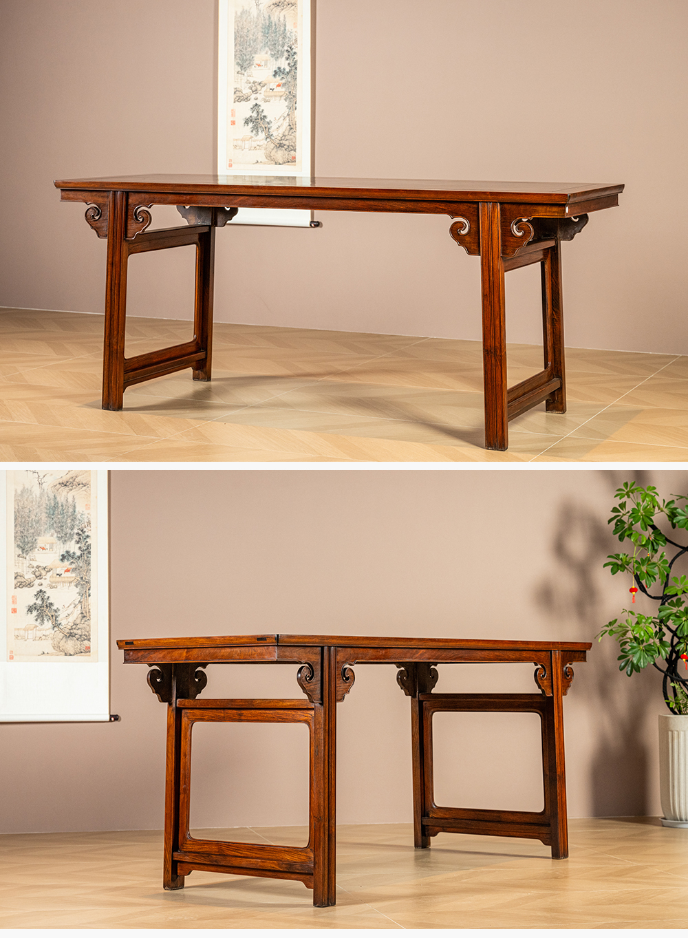 清 黄花梨镶瘿木夹头榫如意云纹画案