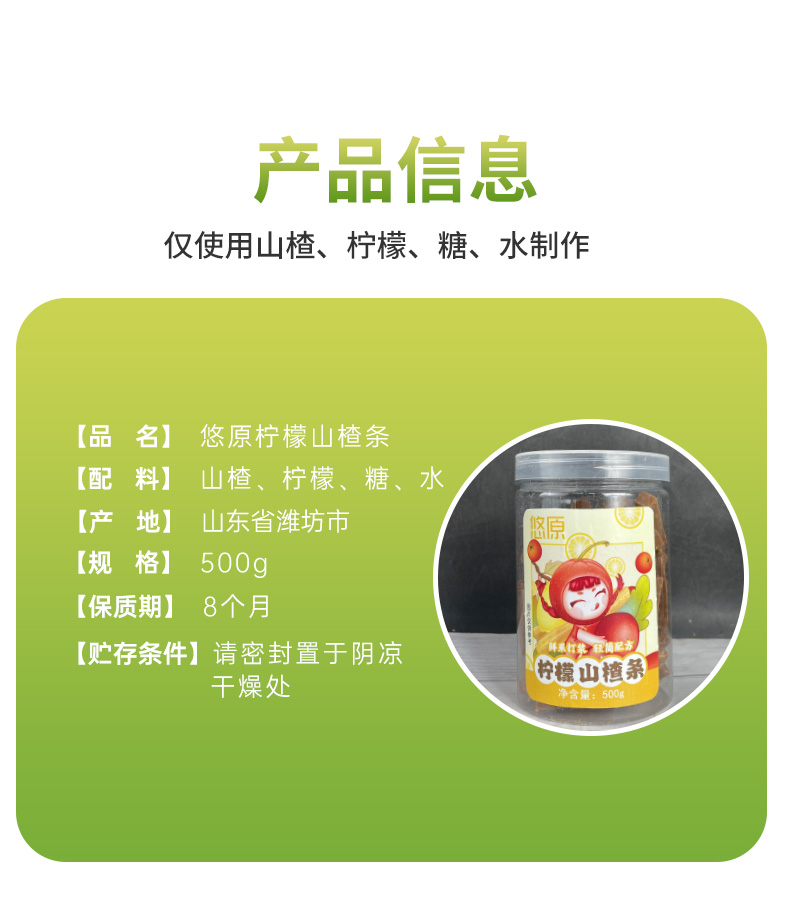 悠原柠檬山楂条/1罐(500g)生产日期:25年12月