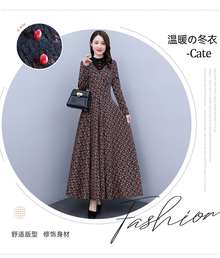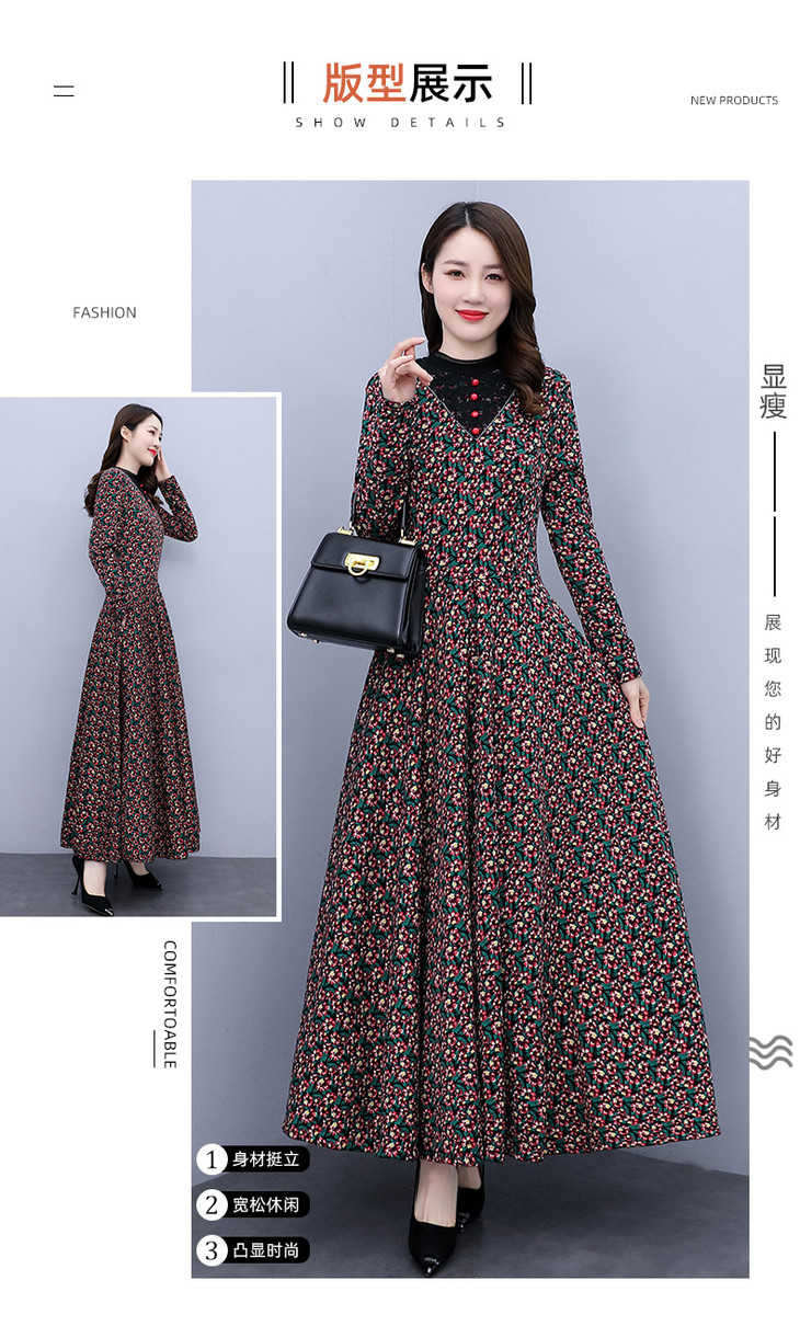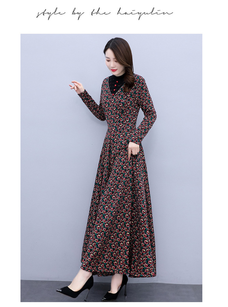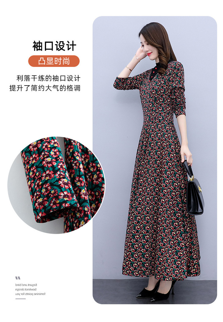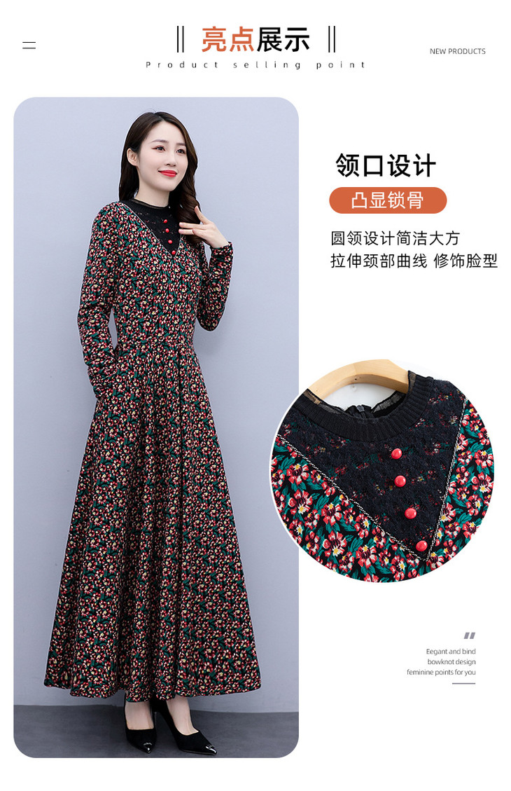 HRYZ7680 连衣裙2021新款洋气气质长裙长袖打底长款中年贵夫人妈妈加绒加厚