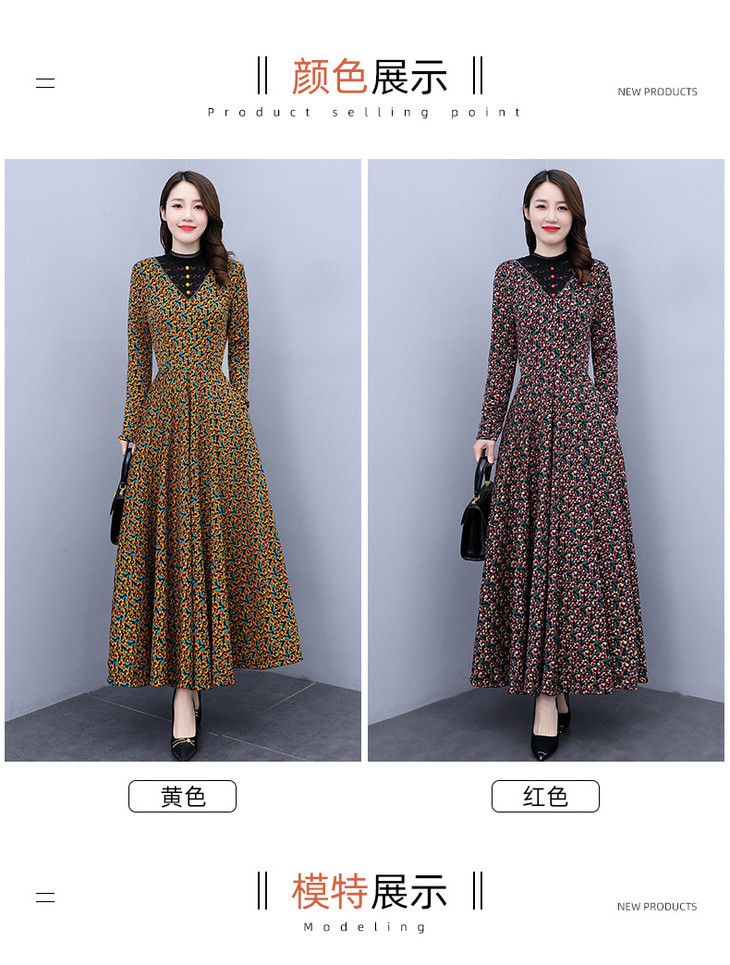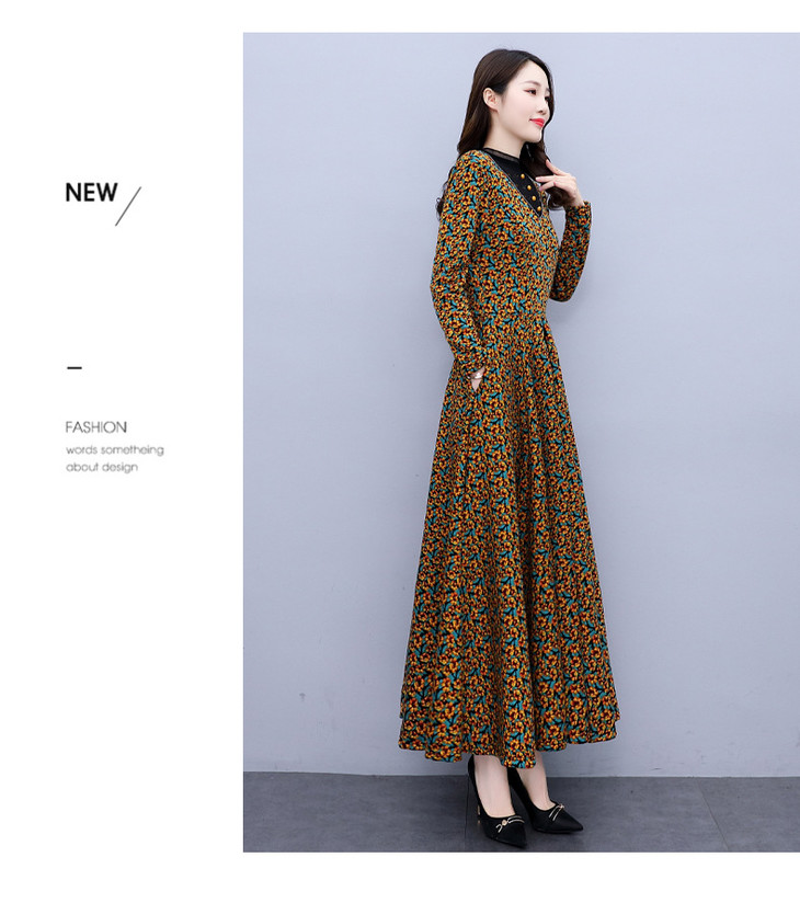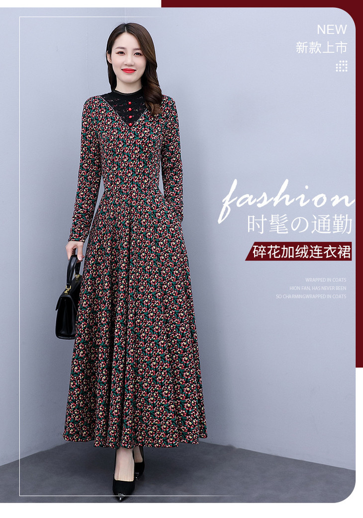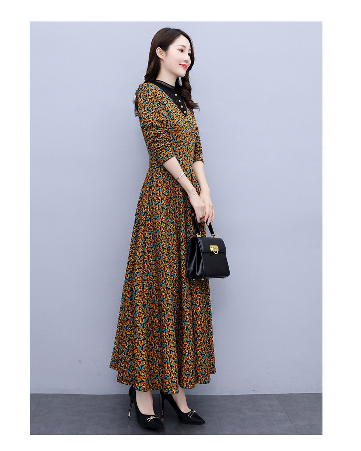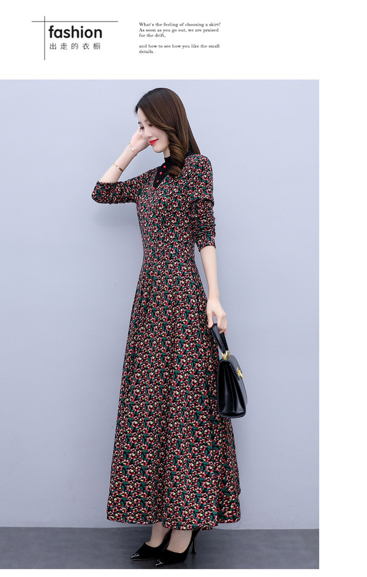 HRYZ7680 连衣裙2021新款洋气气质长裙长袖打底长款中年贵夫人妈妈加绒加厚
