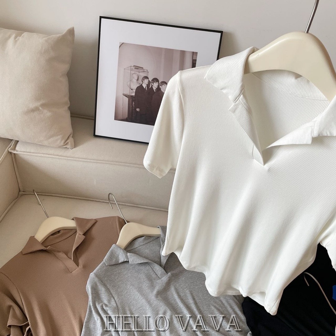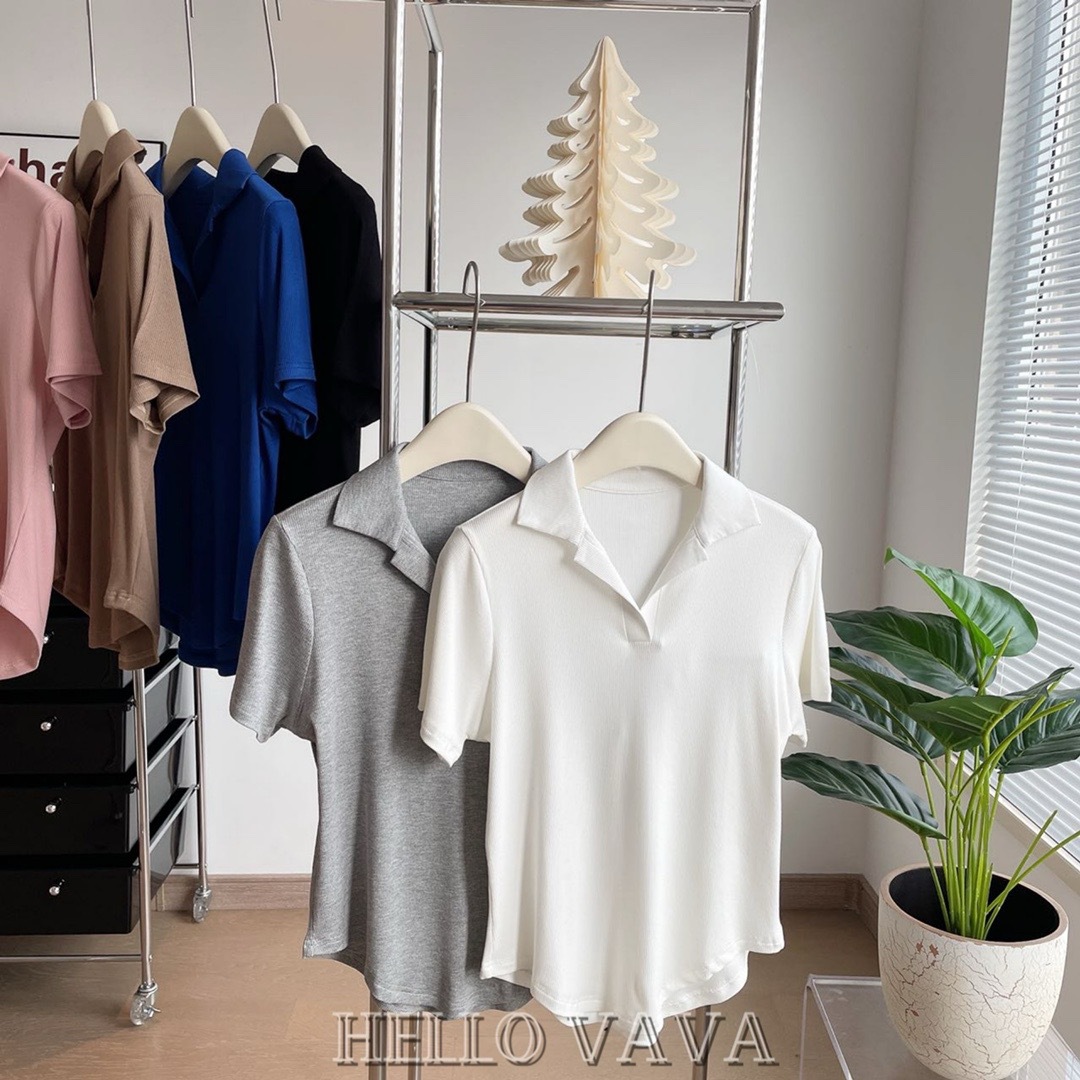 【宽松版型,敲击显瘦!】polo领纯欲显瘦T恤螺纹棉,无束缚纸片人冰凉吸汗百搭短袖,清新又百搭还能遮小肉肉-lm!