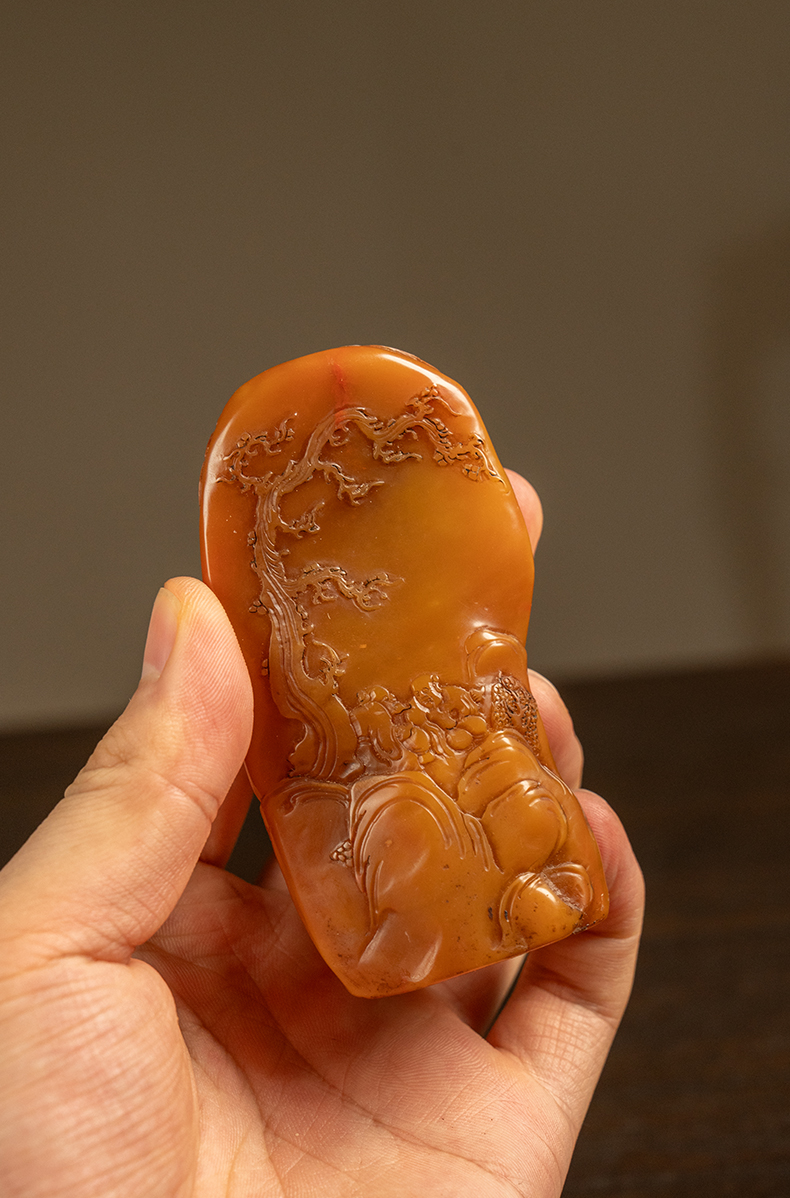 清 张宏裕款竹雕竹林雅集笔筒(红木口底)