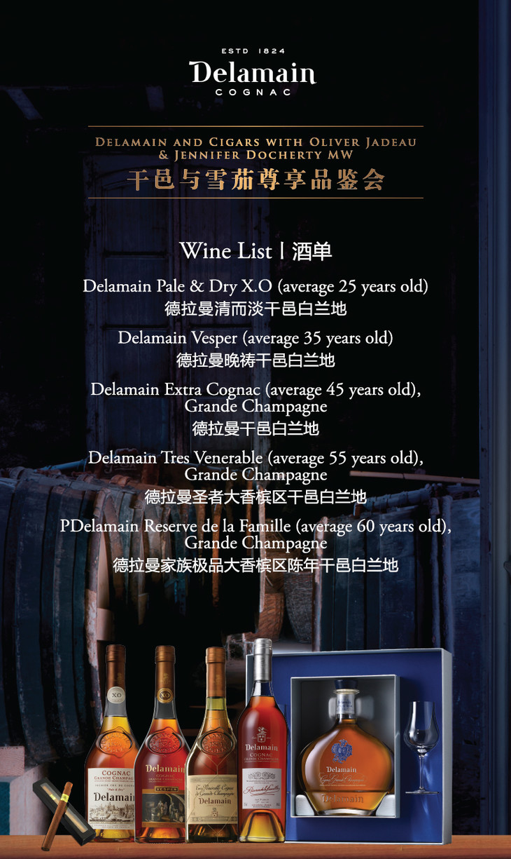 【品鉴会门票】与德拉曼干邑,渐入“茄”境【Ticket】Delamain and Cigars with Oliver Jadeau & Jennifer Docherty MW