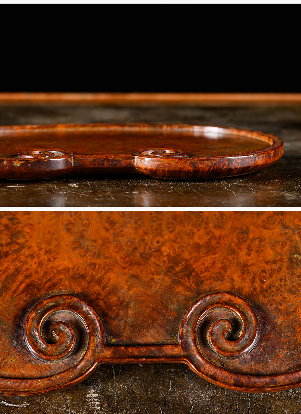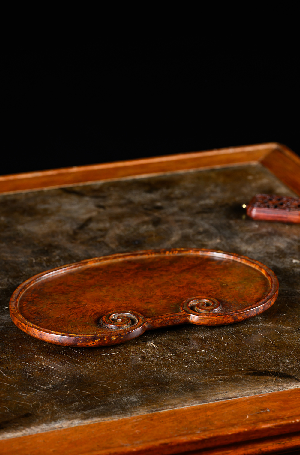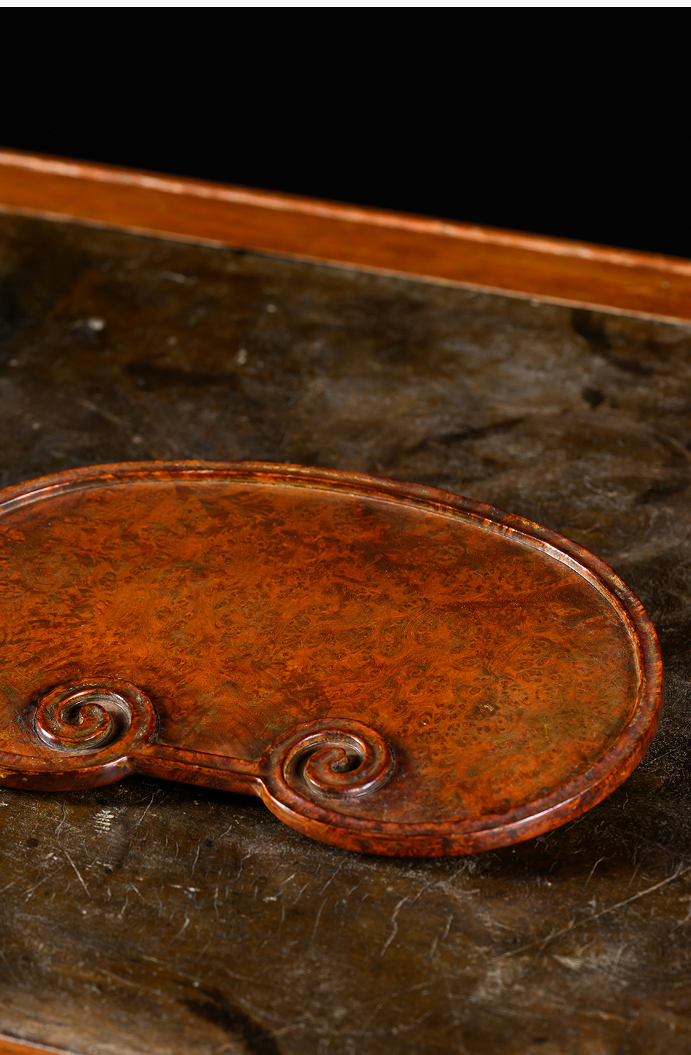 清 黄花梨镶绿石透雕螭龙纹大插屏