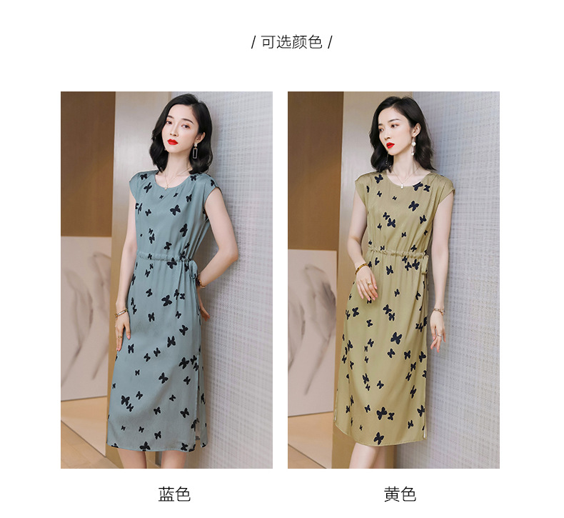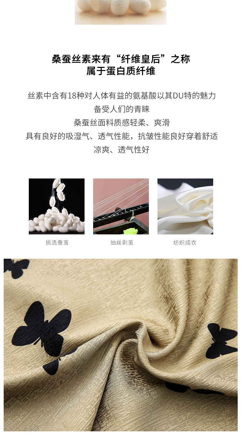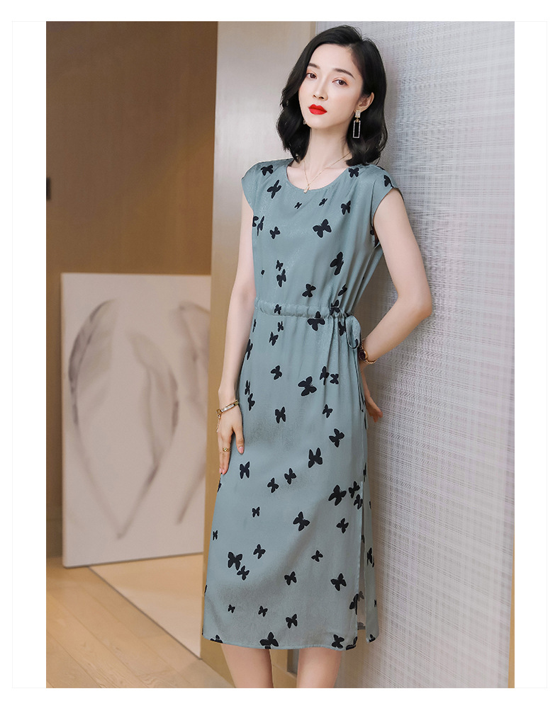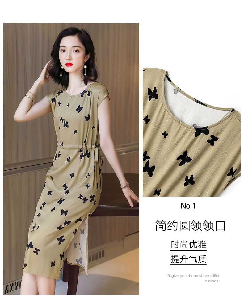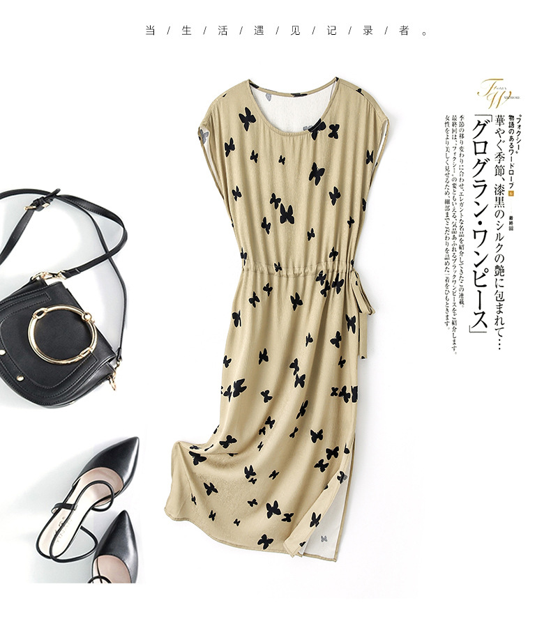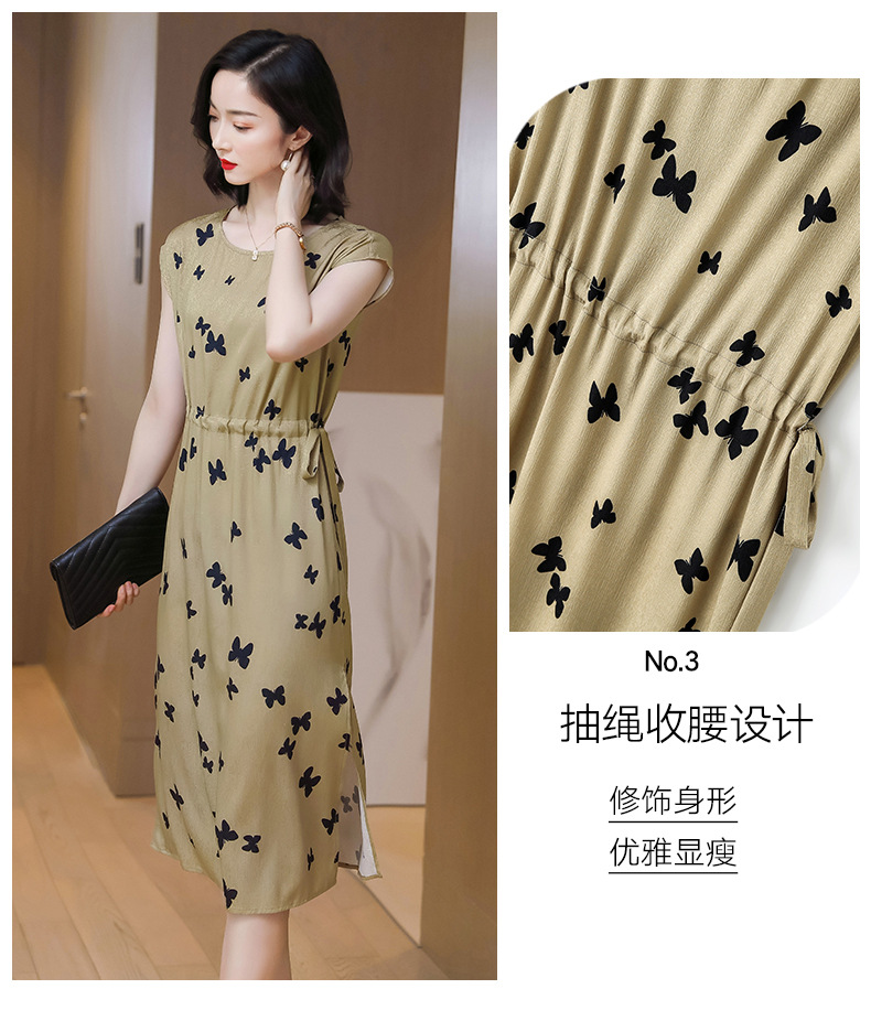 上海旗袍厂ASE-9115真丝连衣裙新款圆领蝴蝶印花优雅气质显瘦短袖桑蚕丝长裙