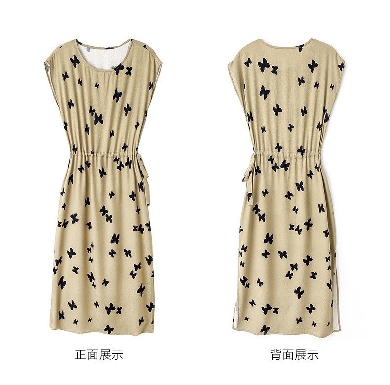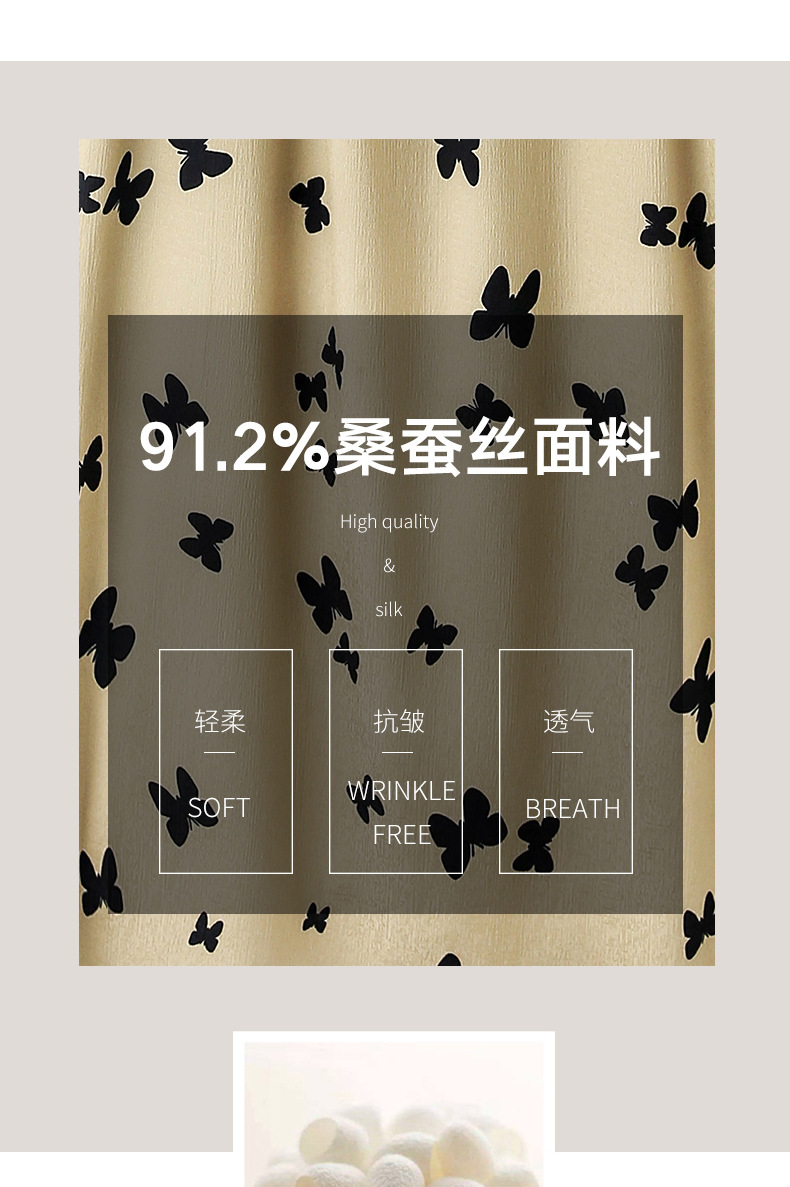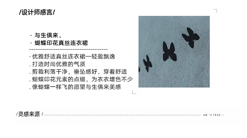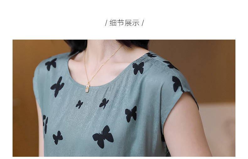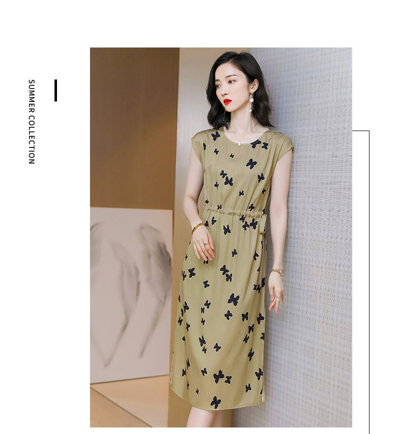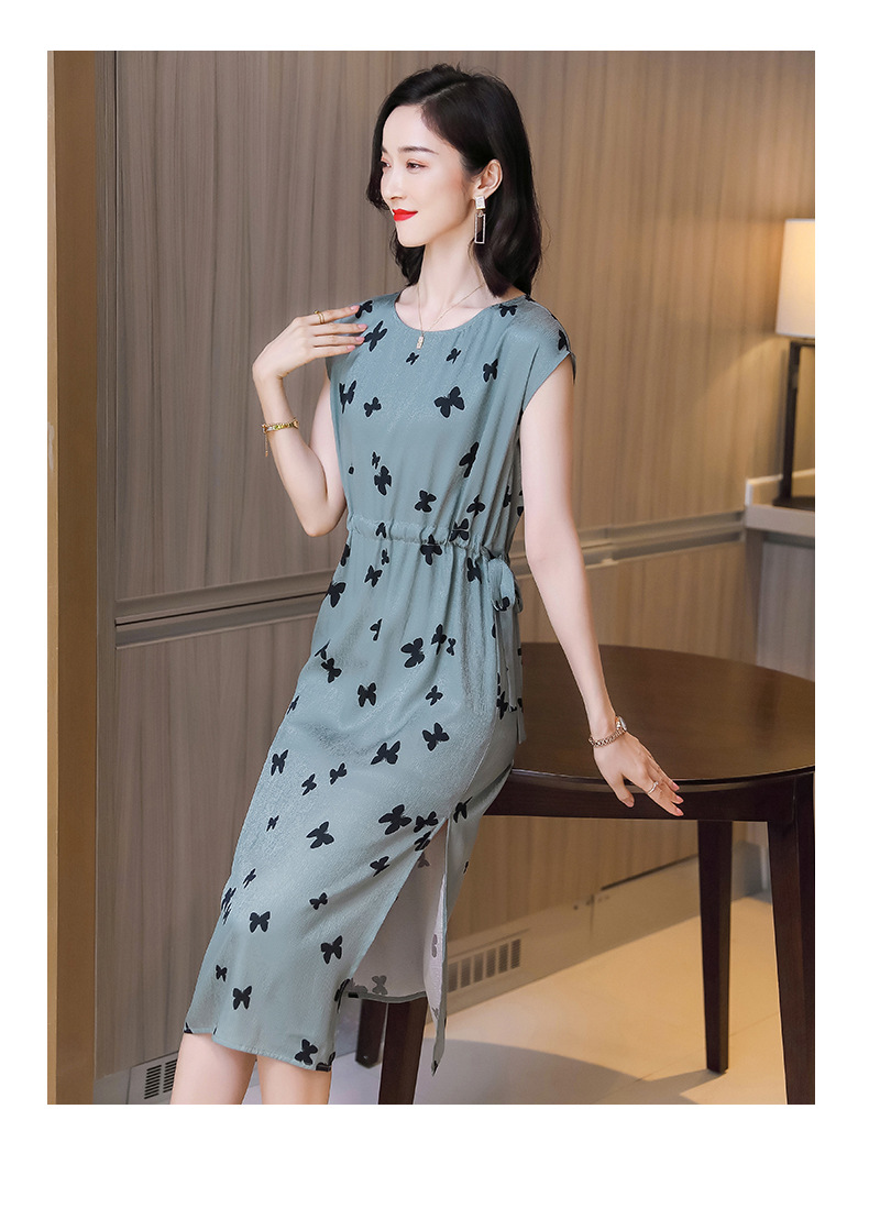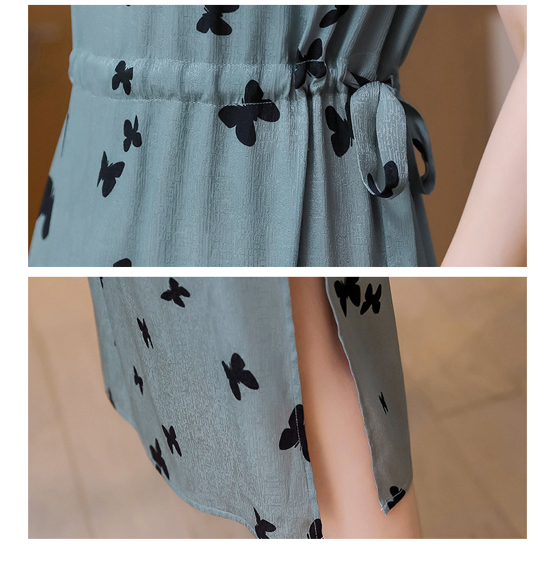 上海旗袍厂ASE-9115真丝连衣裙新款圆领蝴蝶印花优雅气质显瘦短袖桑蚕丝长裙