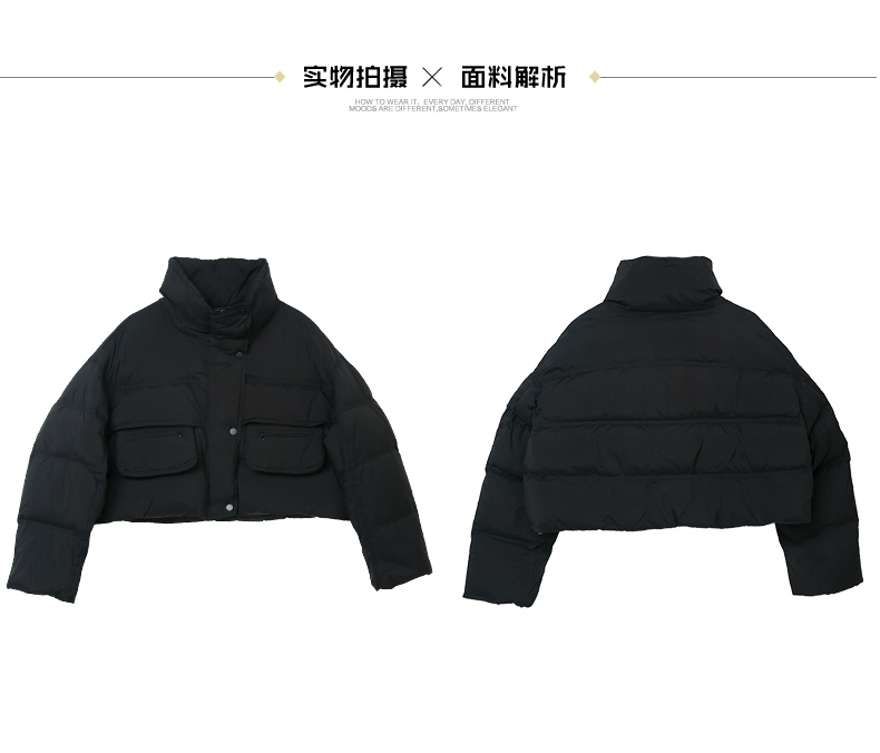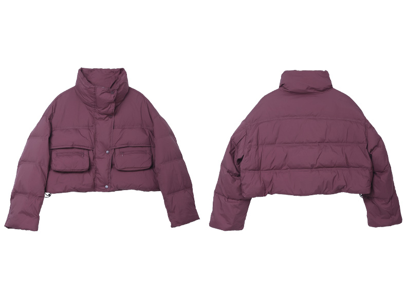 暗紫红色短款立领羽绒服 多口袋工装风宽松廓形保暖显瘦秋冬通勤休闲百搭保暖外套