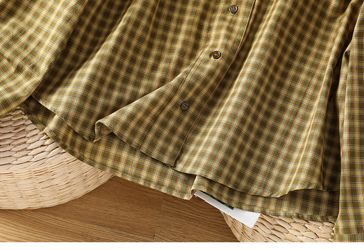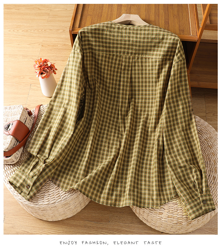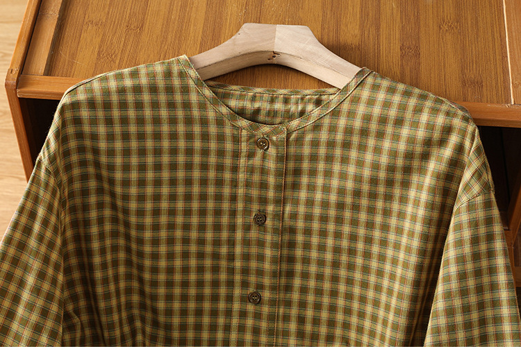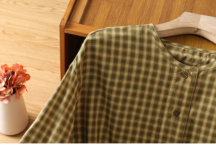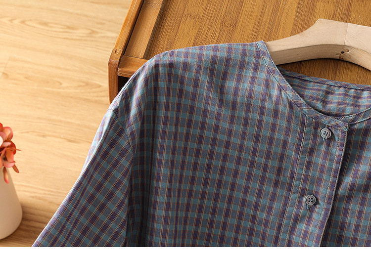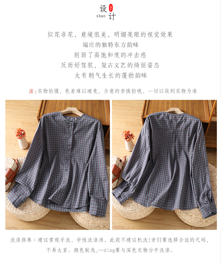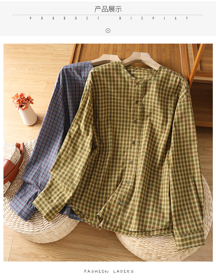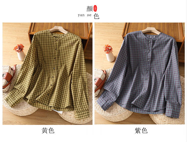 B098-8102025休闲简约复古格纹圆领衬衫秋季新款文艺格子长袖外套女装