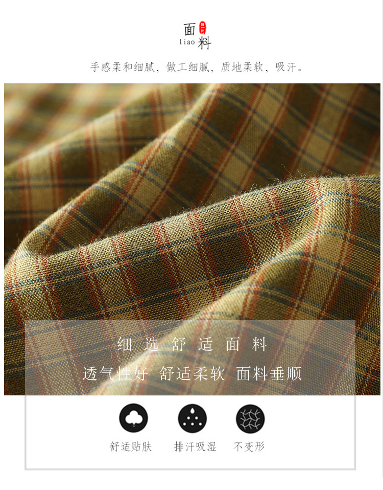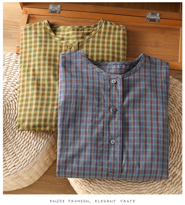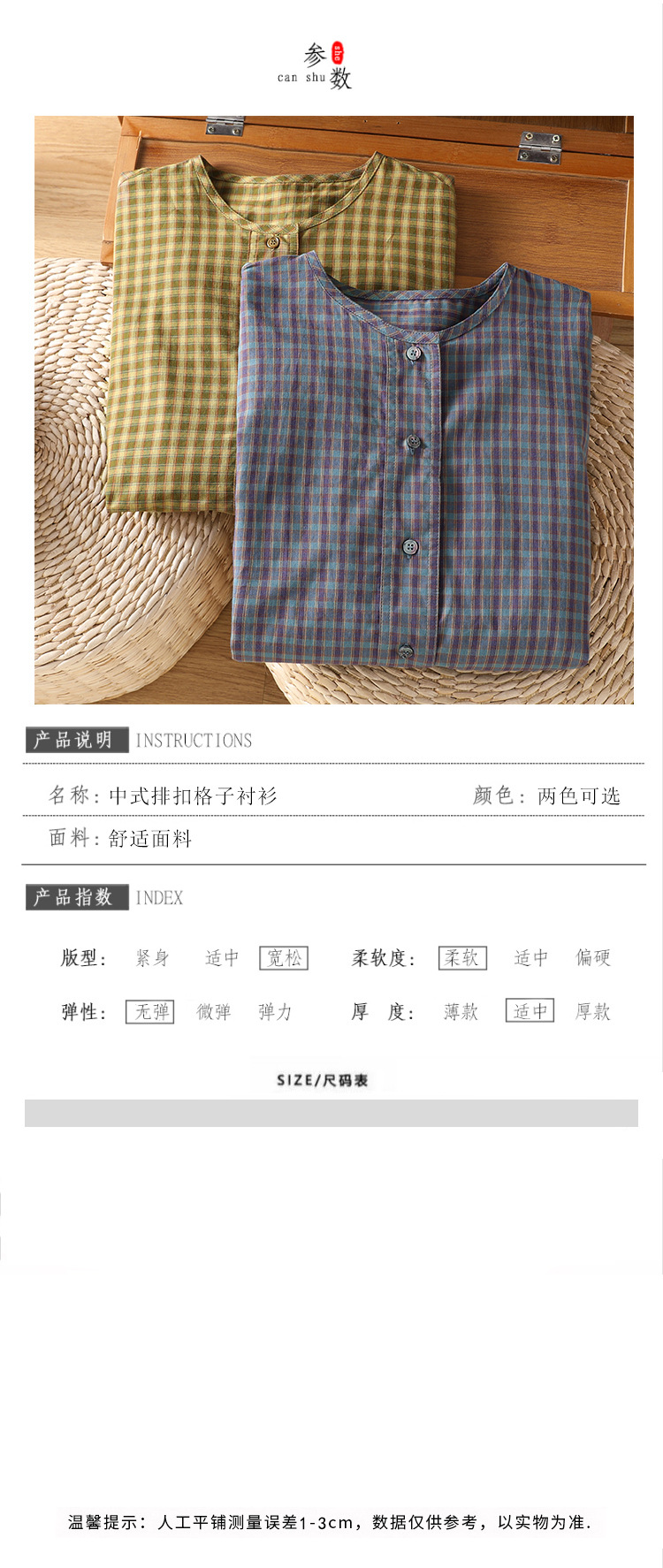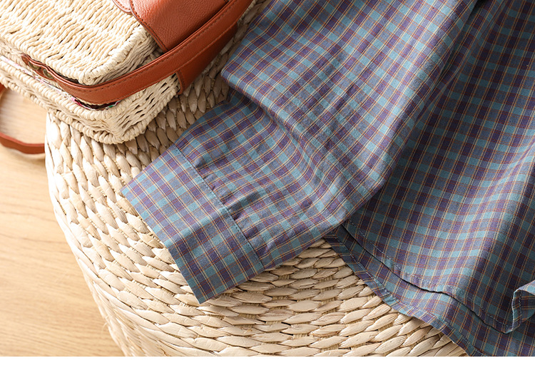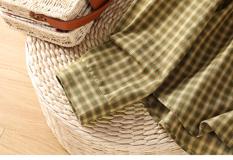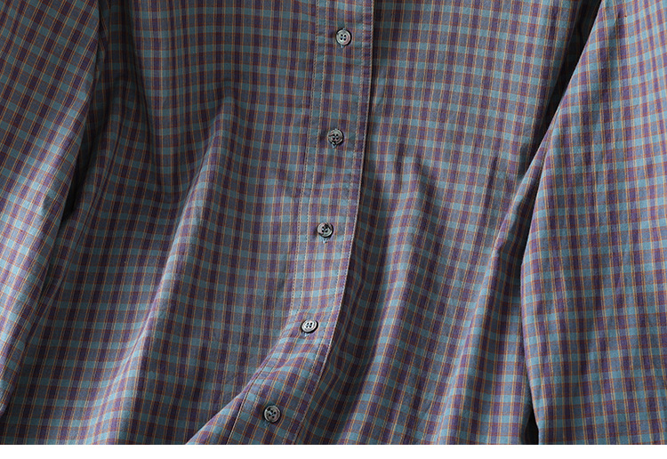 B098-8102025休闲简约复古格纹圆领衬衫秋季新款文艺格子长袖外套女装