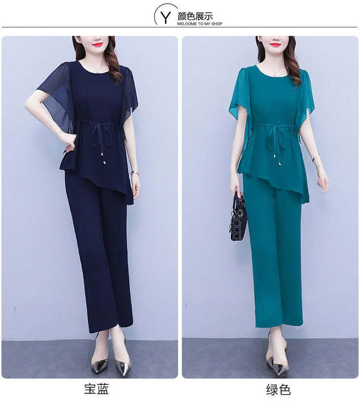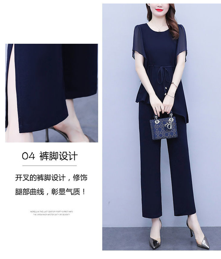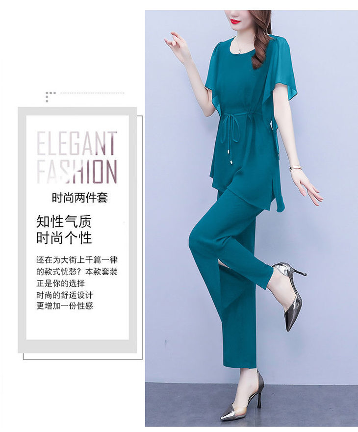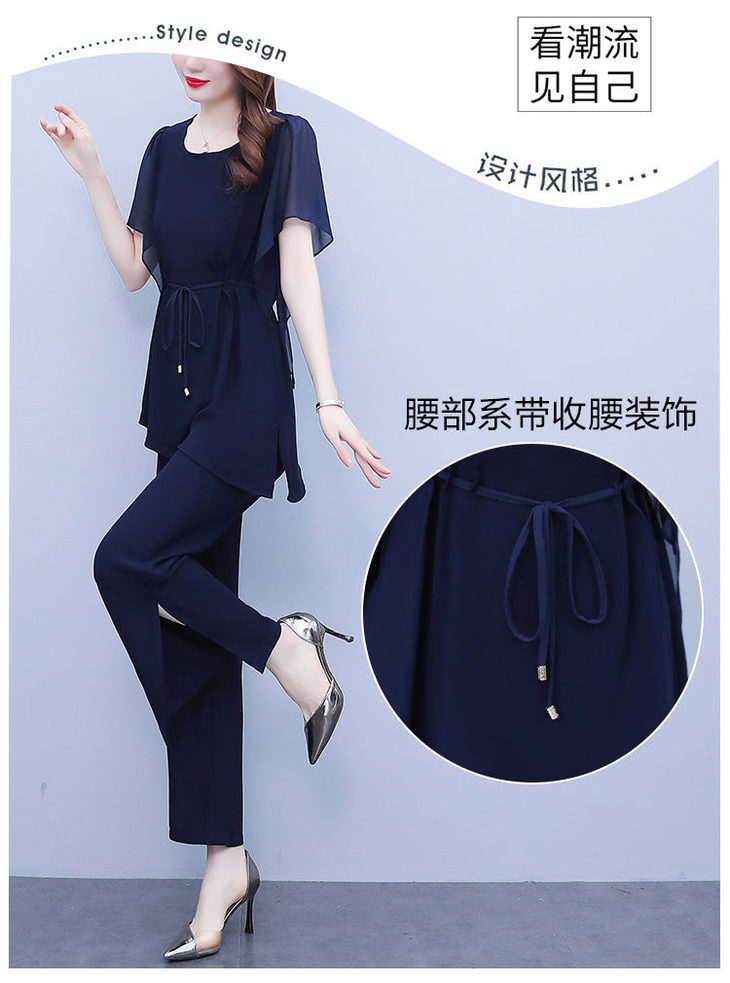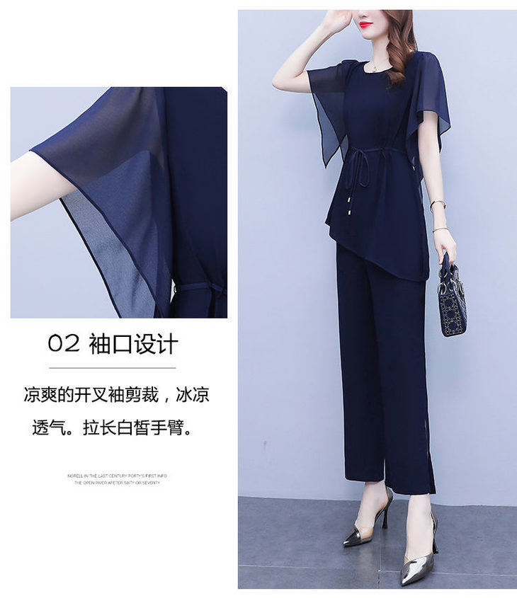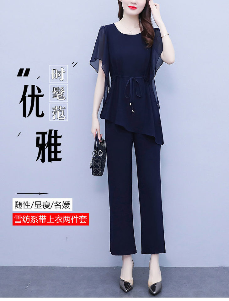 JXG-高档洋气雪纺套装女夏装新款宽松大码女装透气纱网短袖时尚两件套