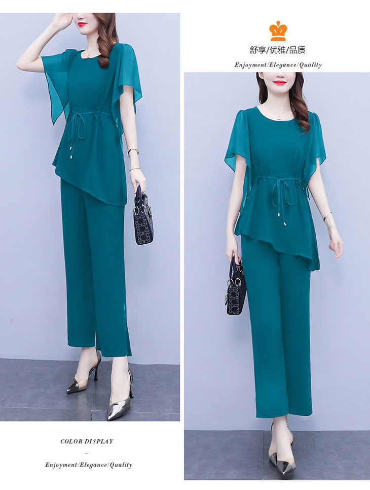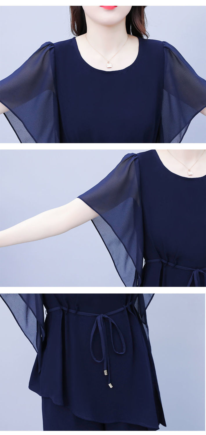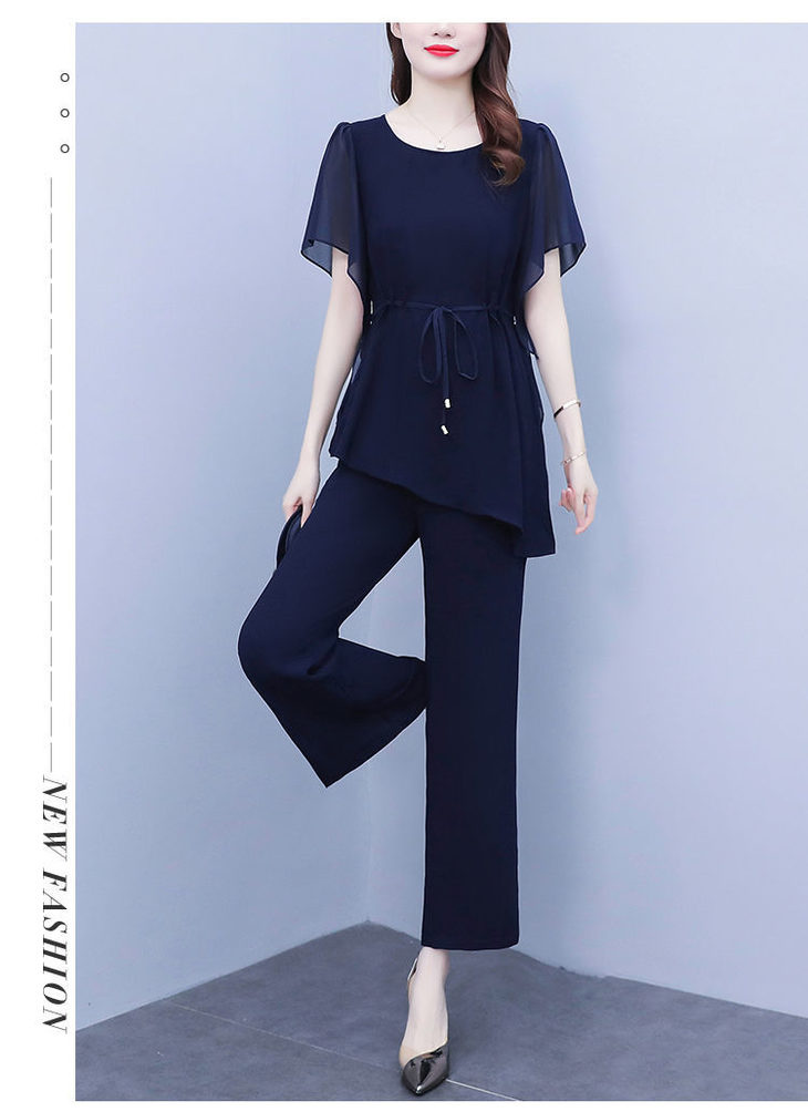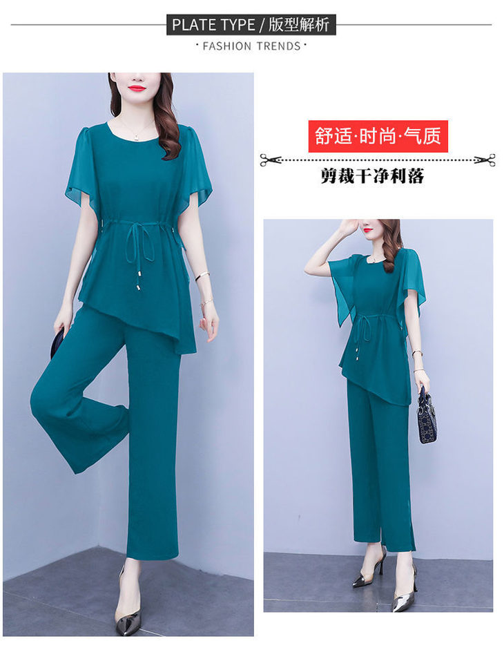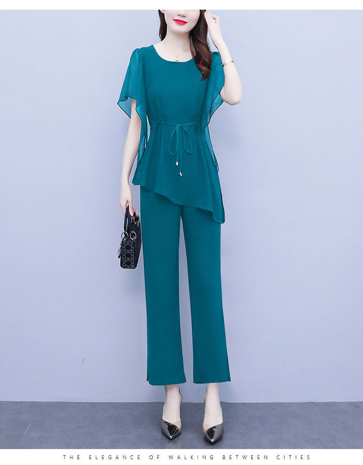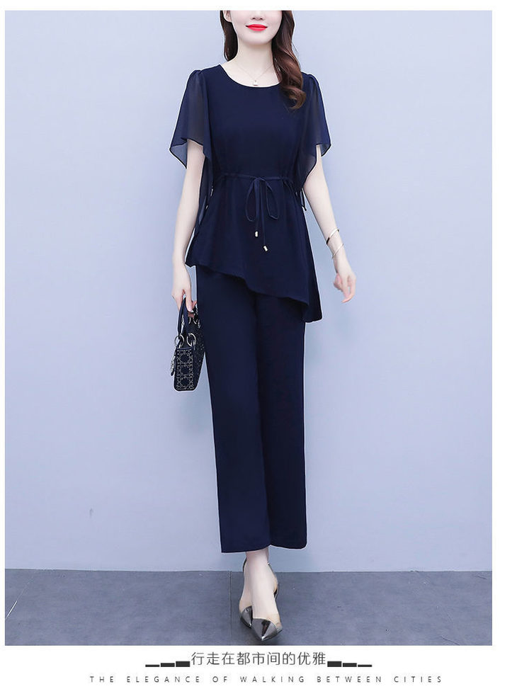 JXG-高档洋气雪纺套装女夏装新款宽松大码女装透气纱网短袖时尚两件套