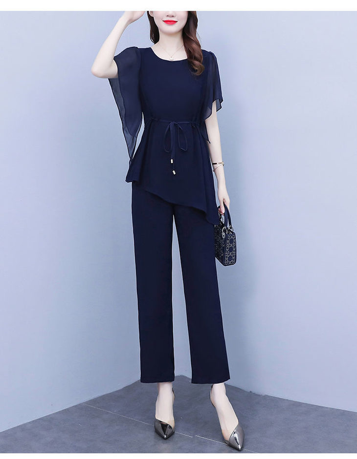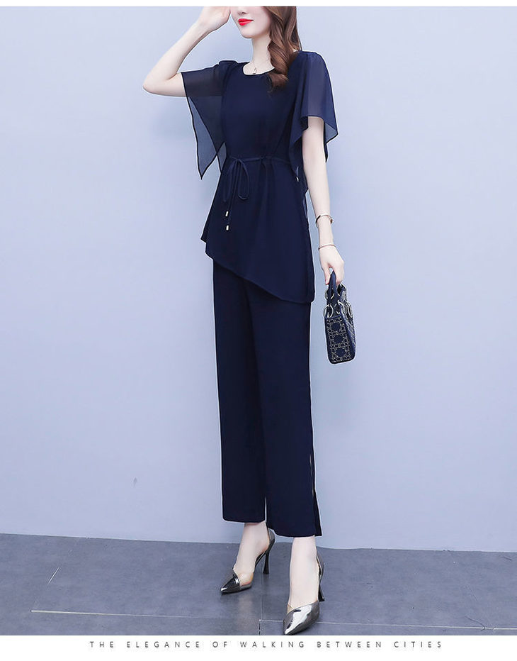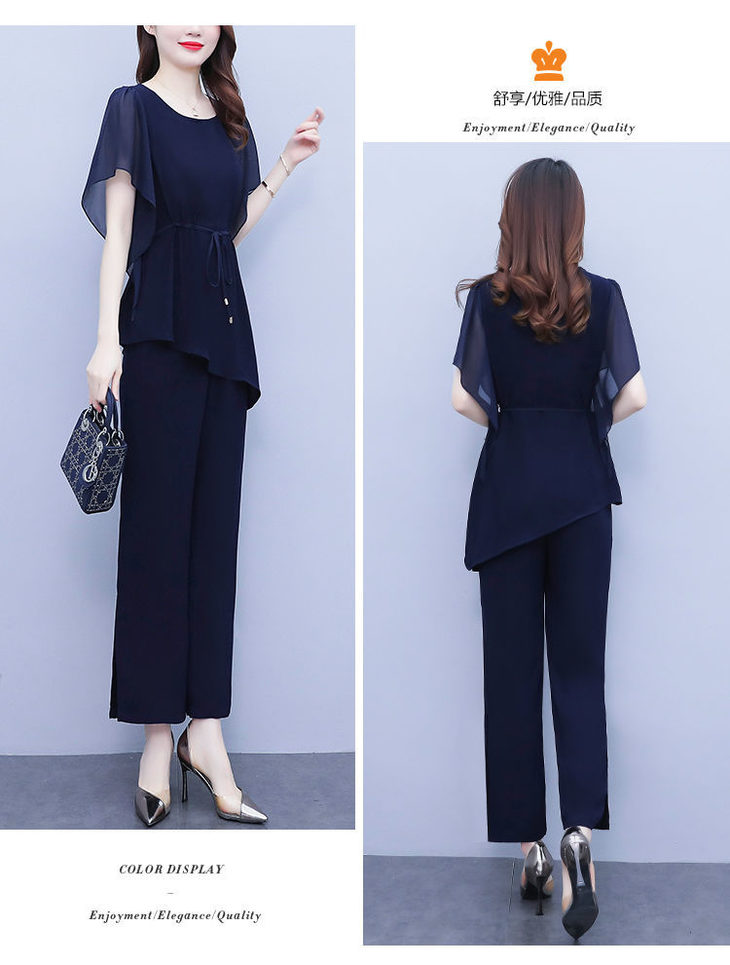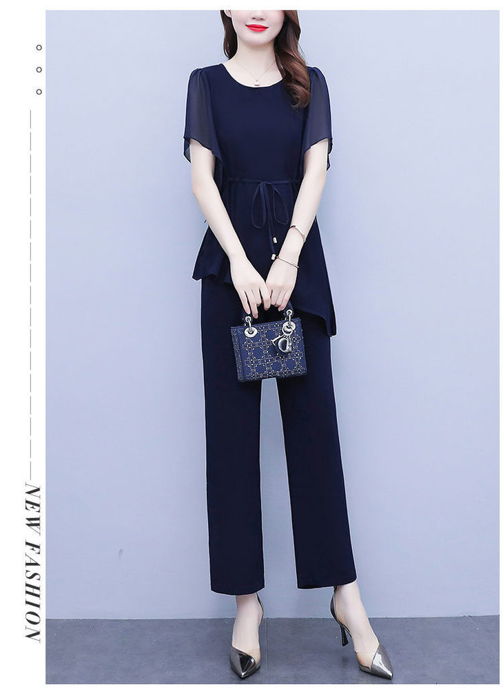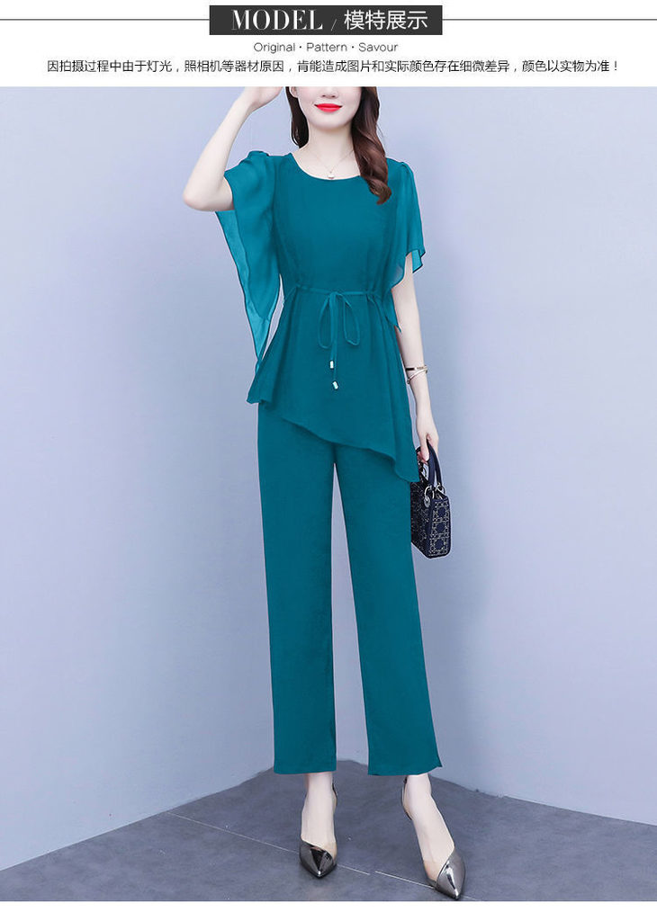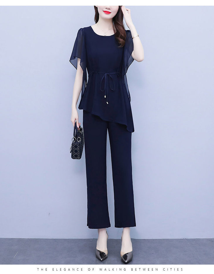 JXG-高档洋气雪纺套装女夏装新款宽松大码女装透气纱网短袖时尚两件套