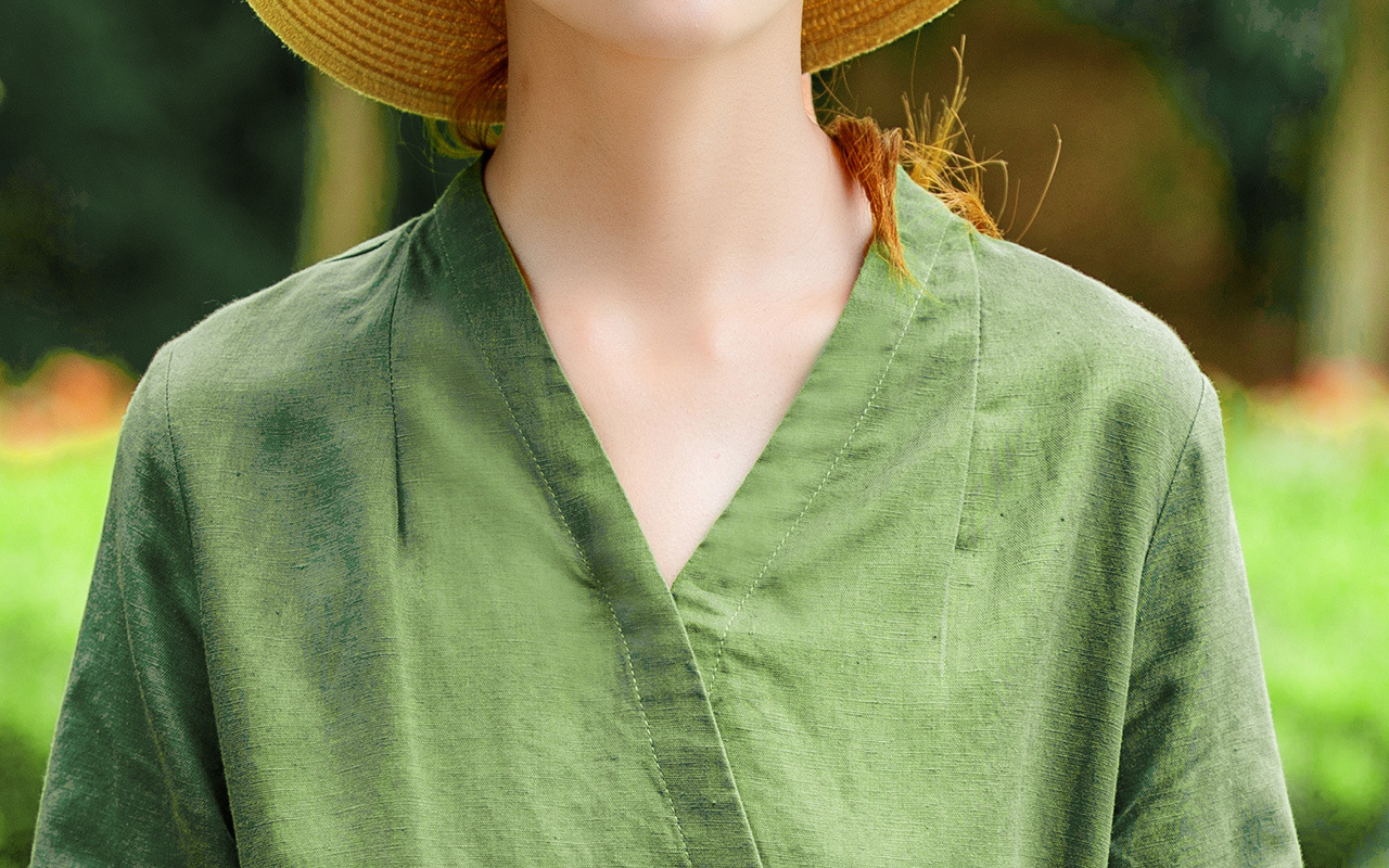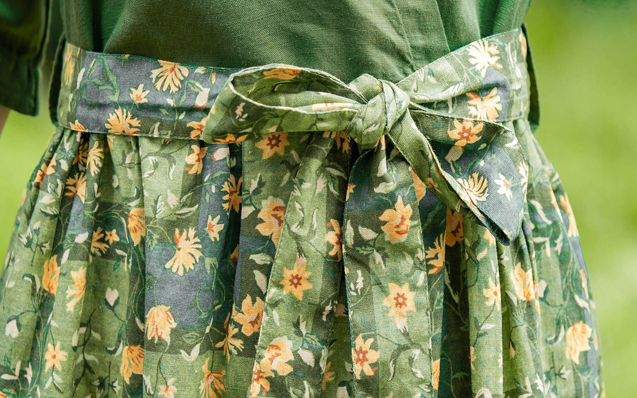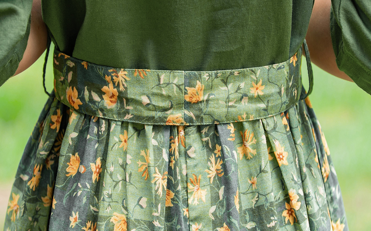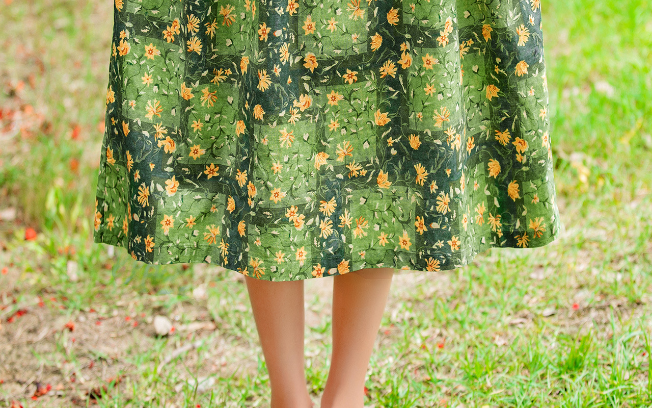 LT-025新款碎花亚麻连衣裙 夏季半袖系带修身A字长裙