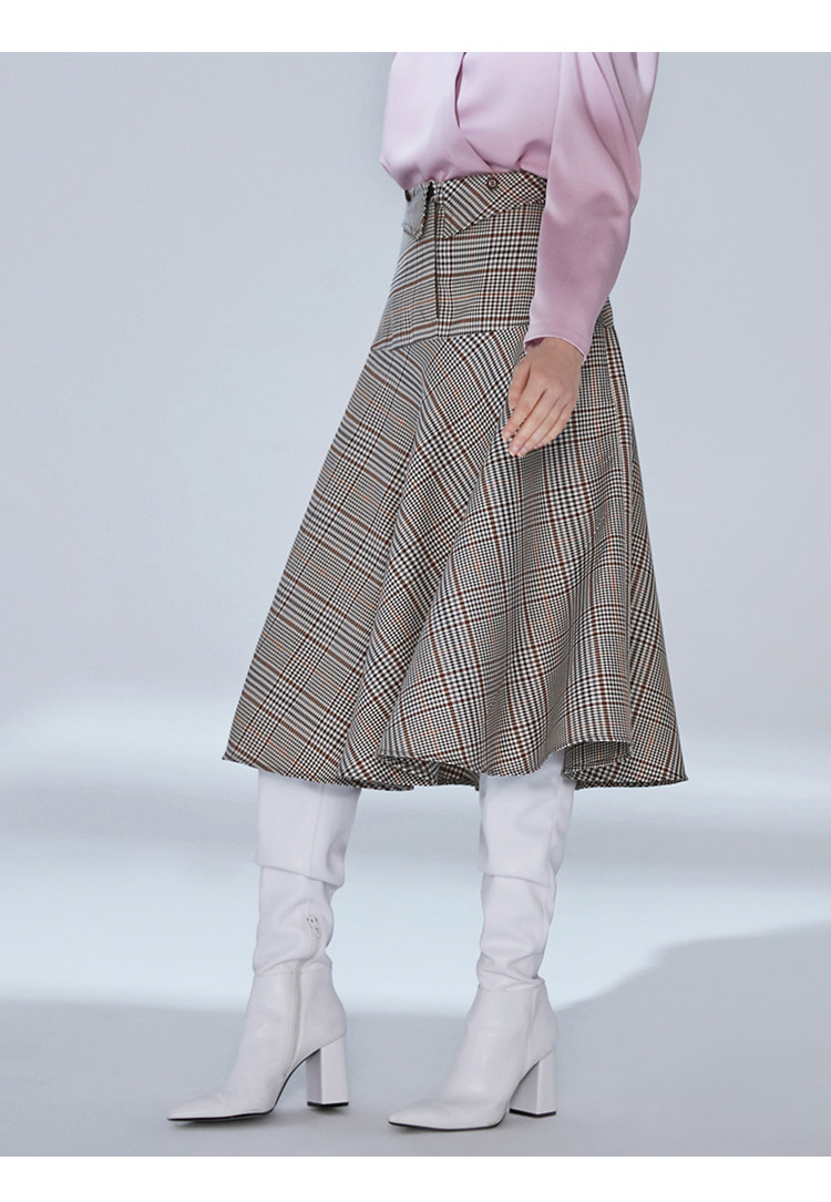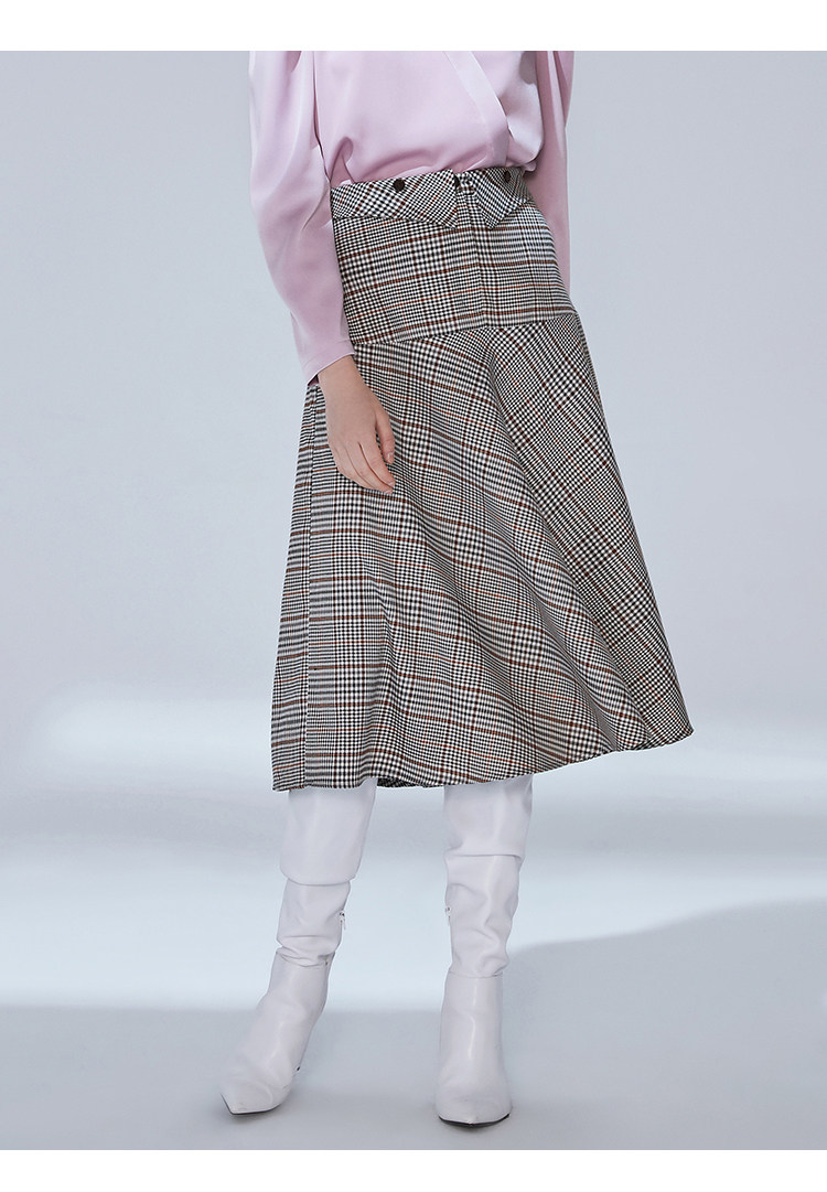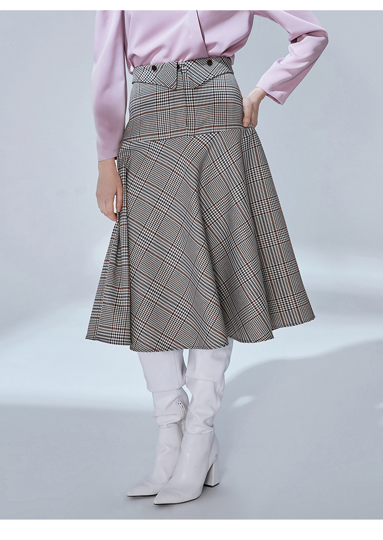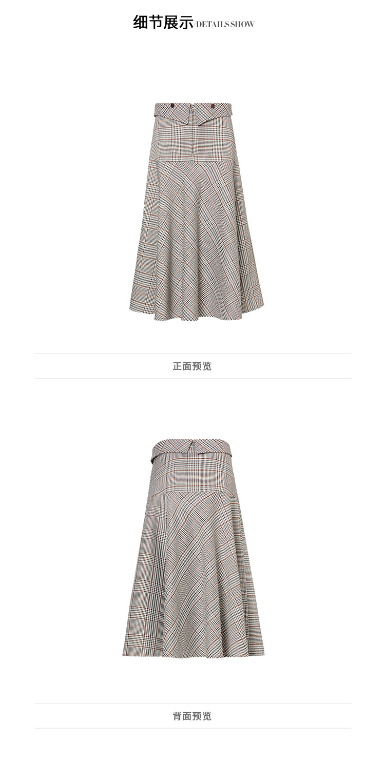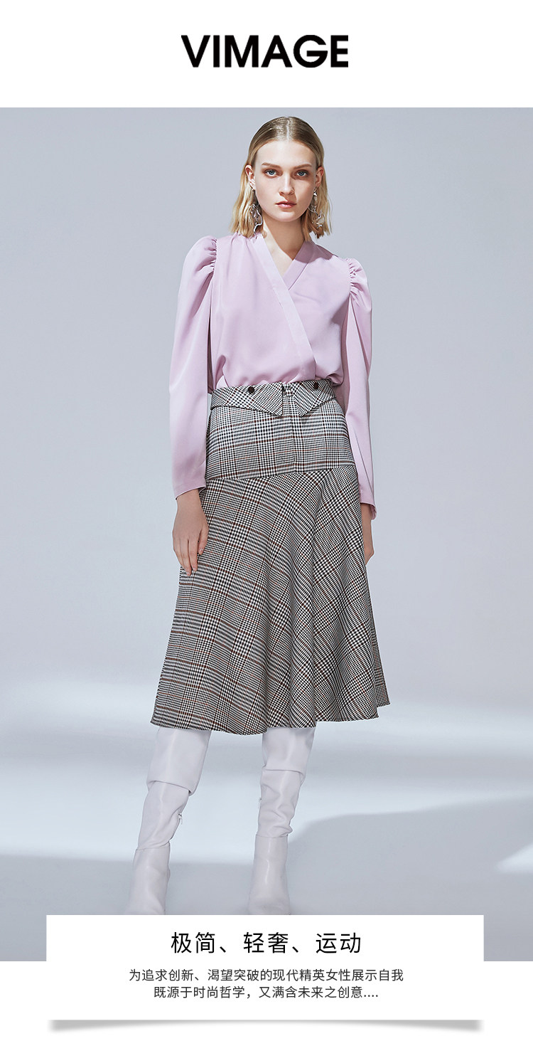 VIMAGE纬漫纪秋款个性英伦格纹A字百褶伞裙半身裙女显瘦V1406010