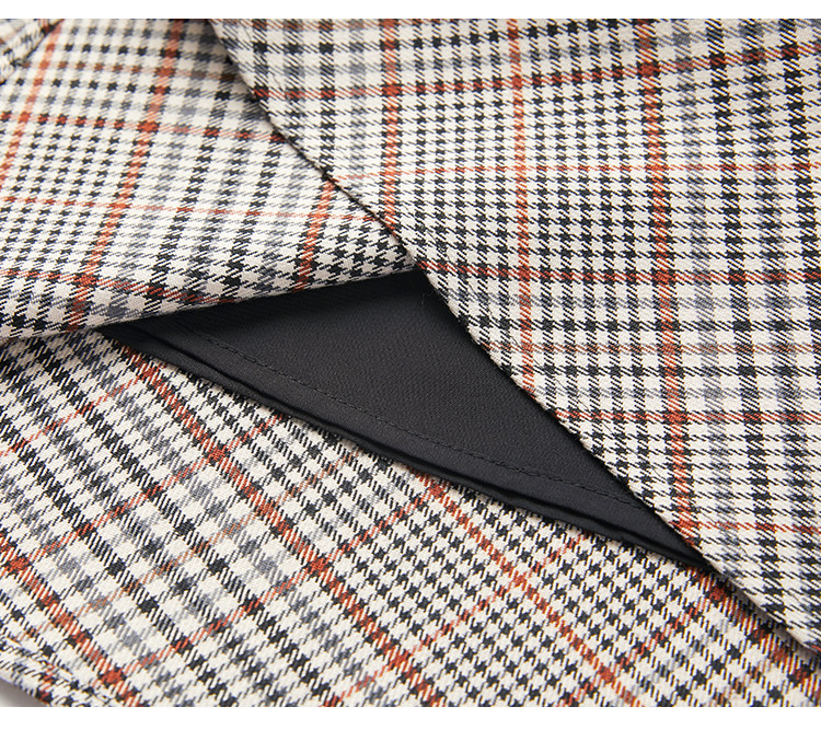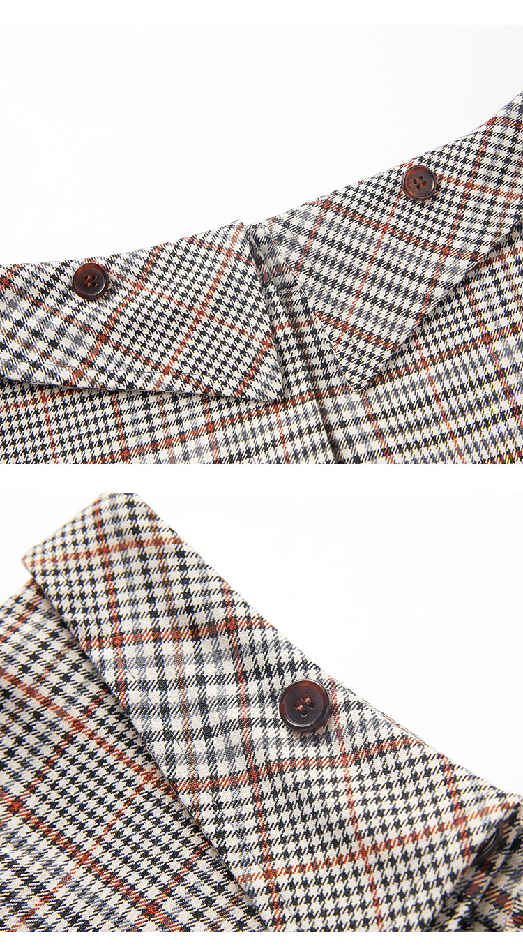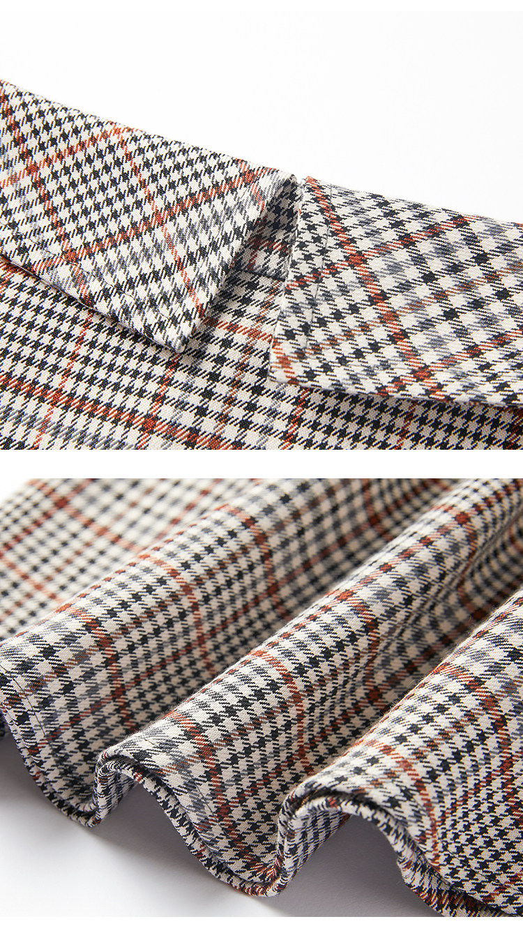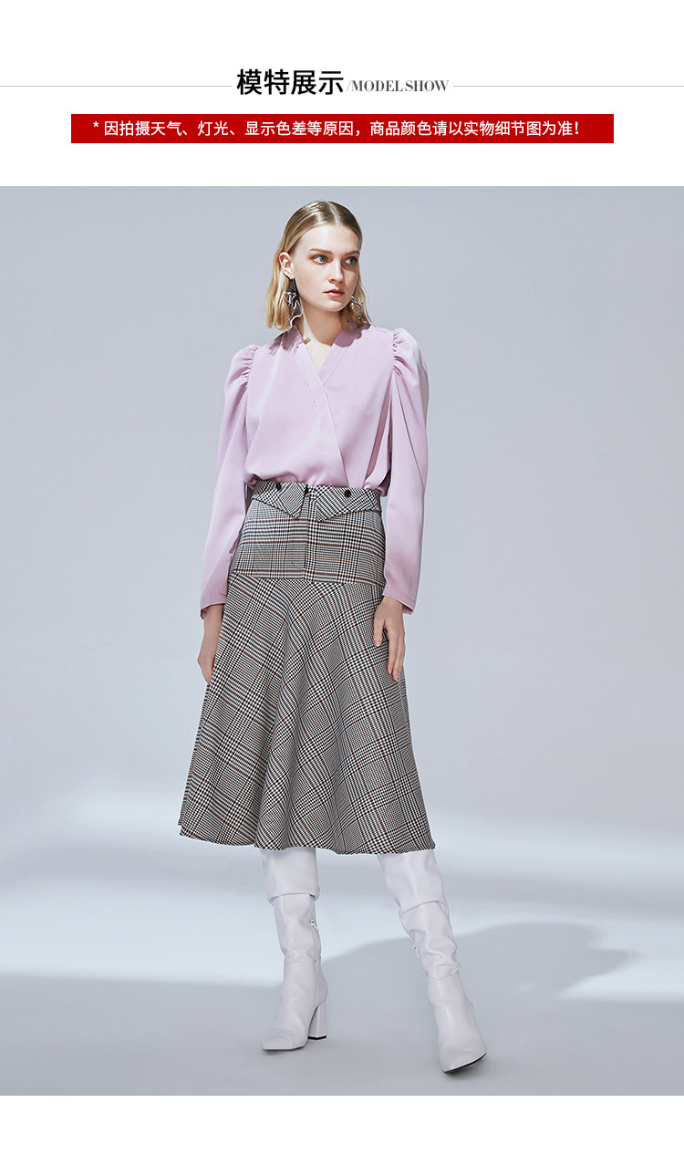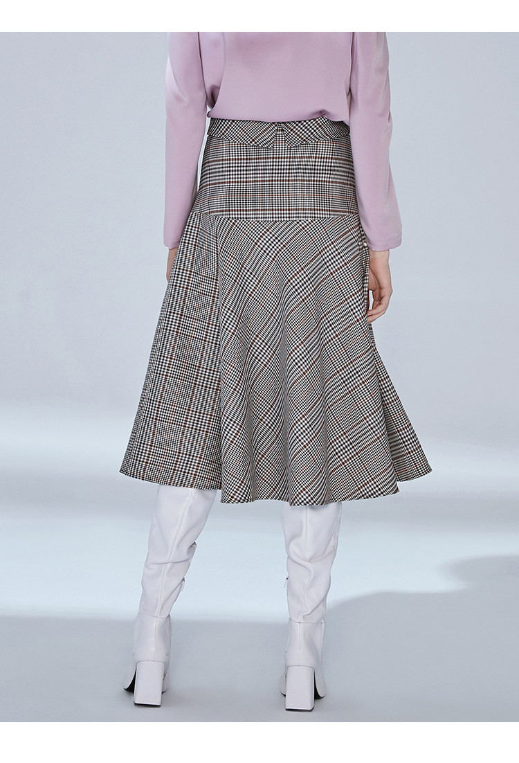 VIMAGE纬漫纪秋款个性英伦格纹A字百褶伞裙半身裙女显瘦V1406010
