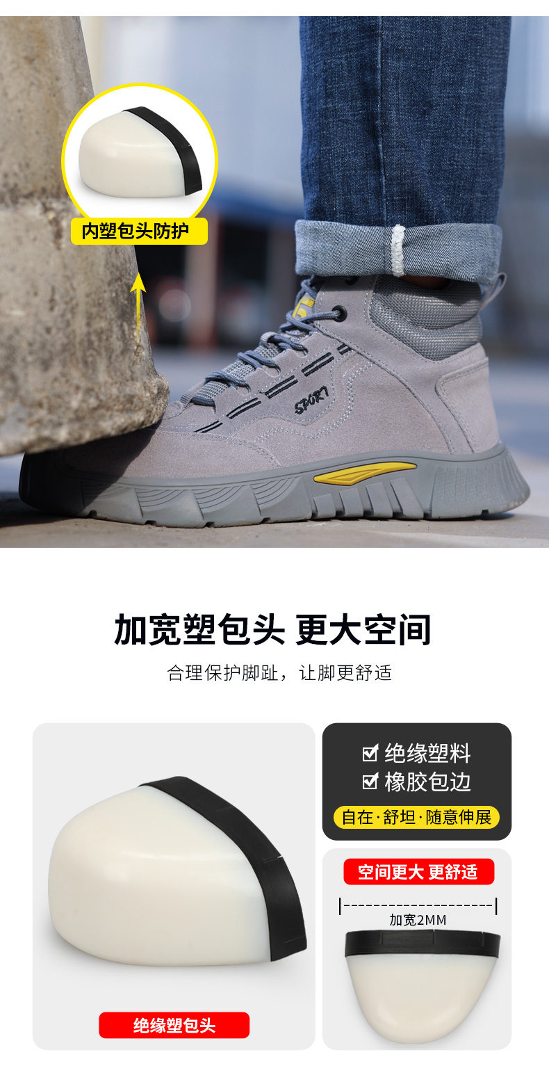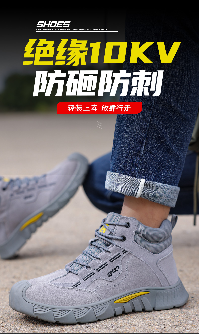 劳保鞋男防砸防刺绝缘10KV电工塑包头高帮反绒橡胶底安全鞋工作鞋