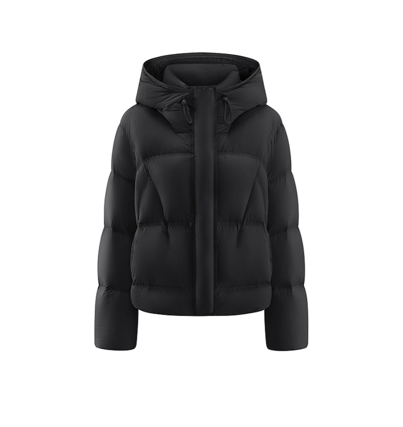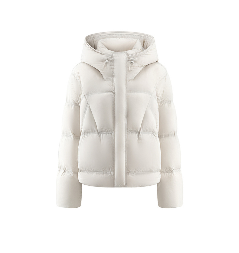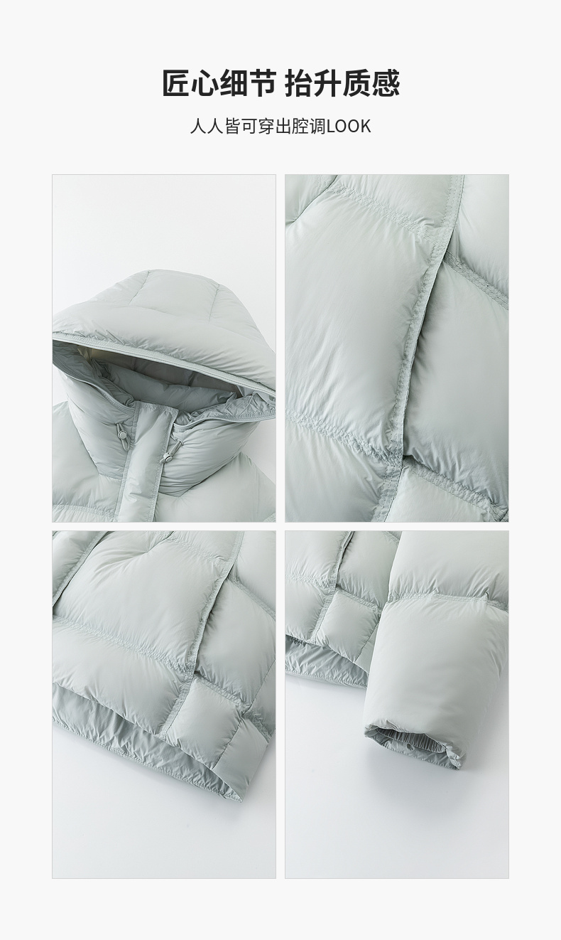天猫同步【90白鸭绒!】拉夏贝尔/La Chapelle连帽调节绳按扣拉链羽绒服女蓬松保暖加厚外套冬季新款
