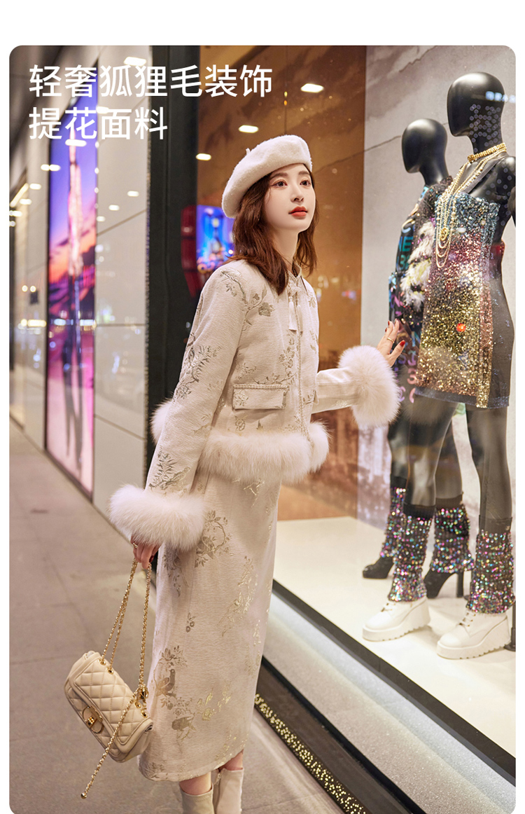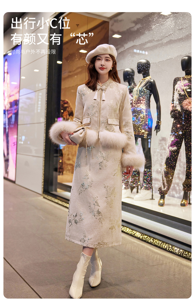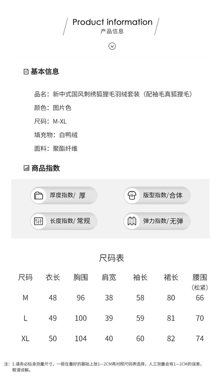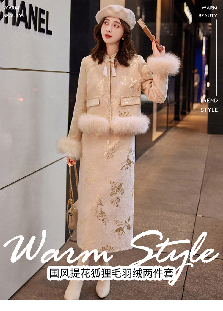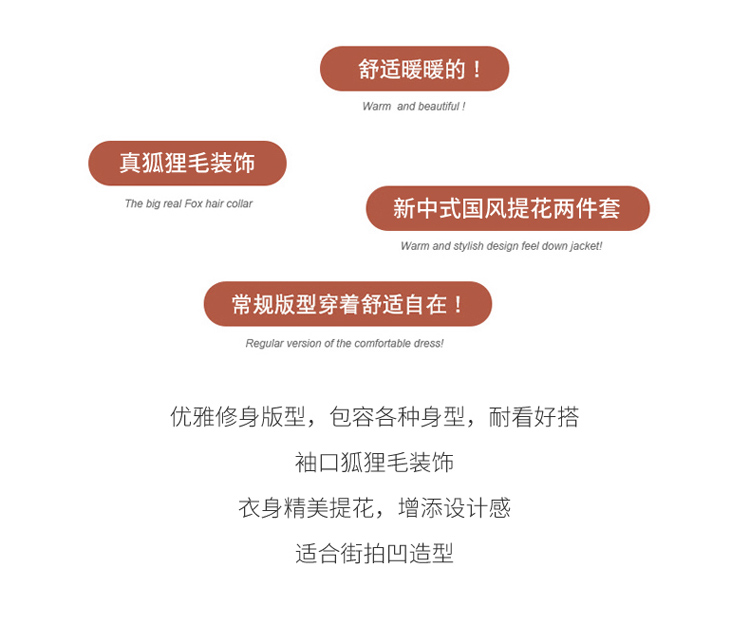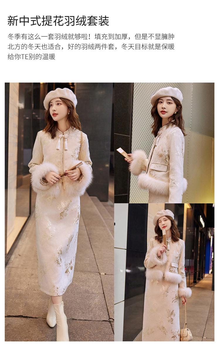 新款冬装,白鸭绒真狐狸毛新中式盘扣羽绒服套装(配真毛领配袖毛)HR-YJLY9029