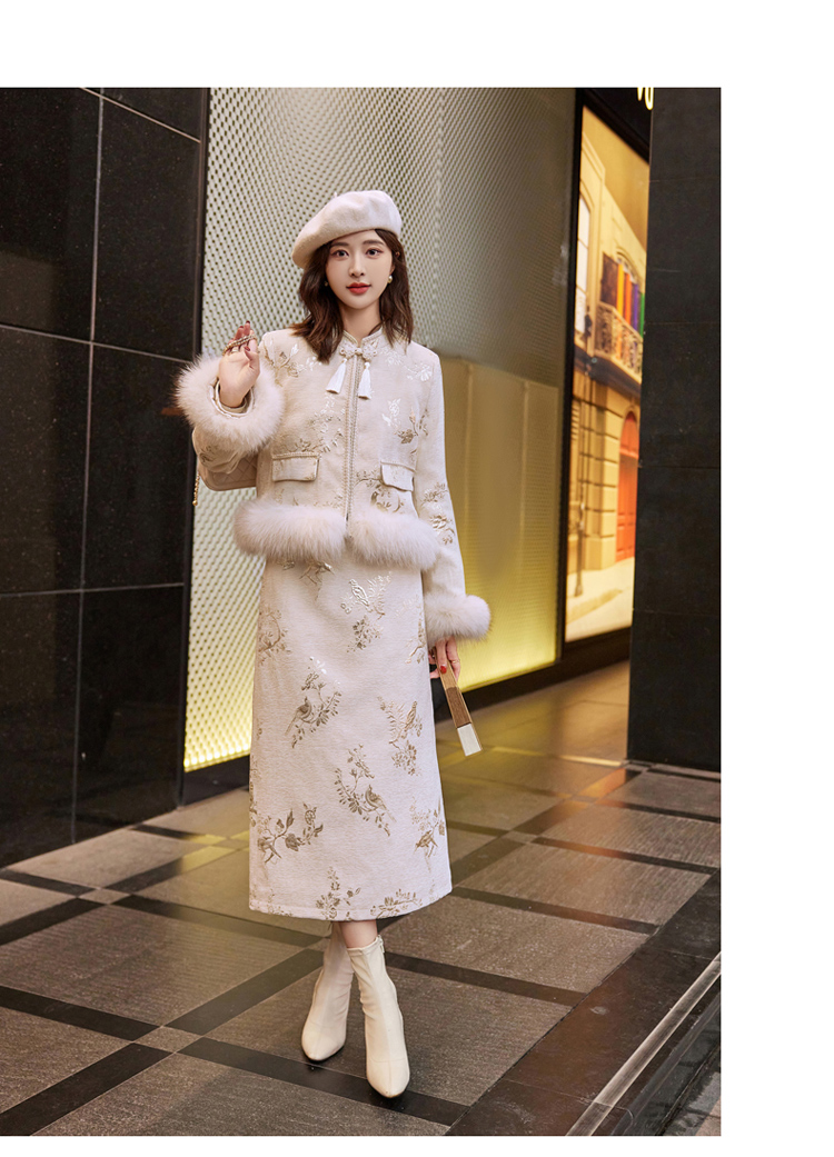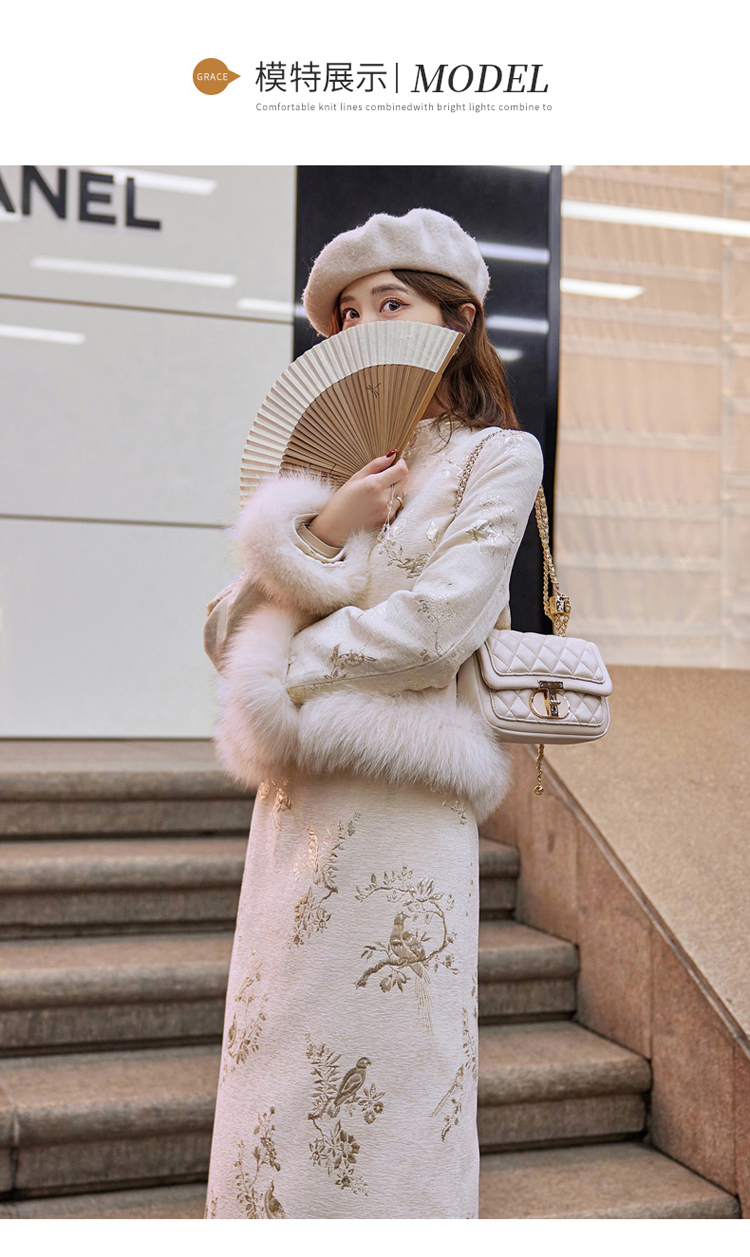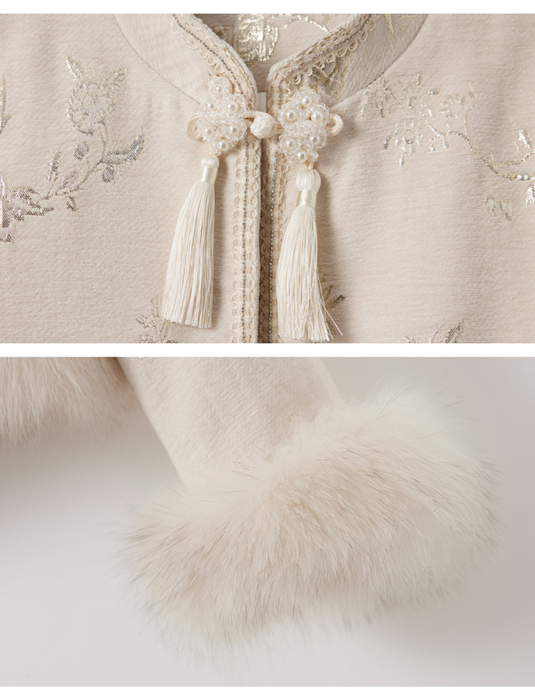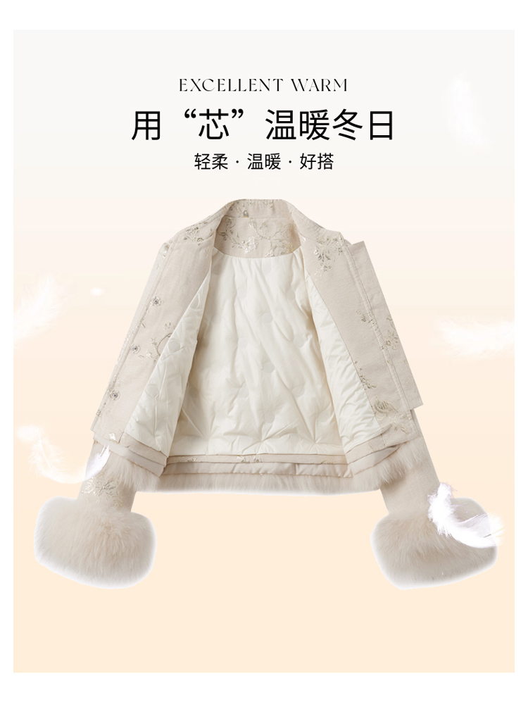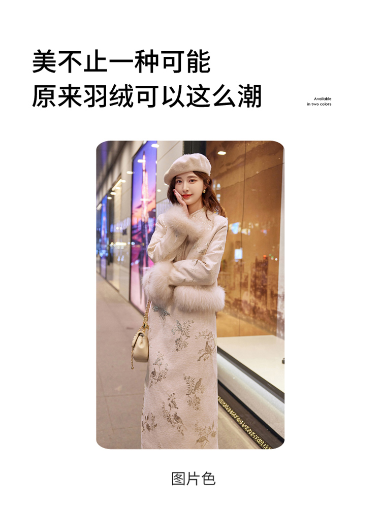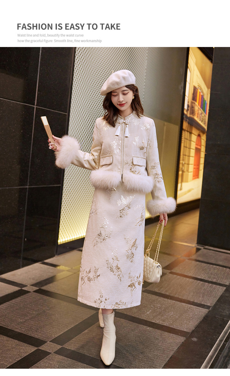 新款冬装,白鸭绒真狐狸毛新中式盘扣羽绒服套装(配真毛领配袖毛)HR-YJLY9029