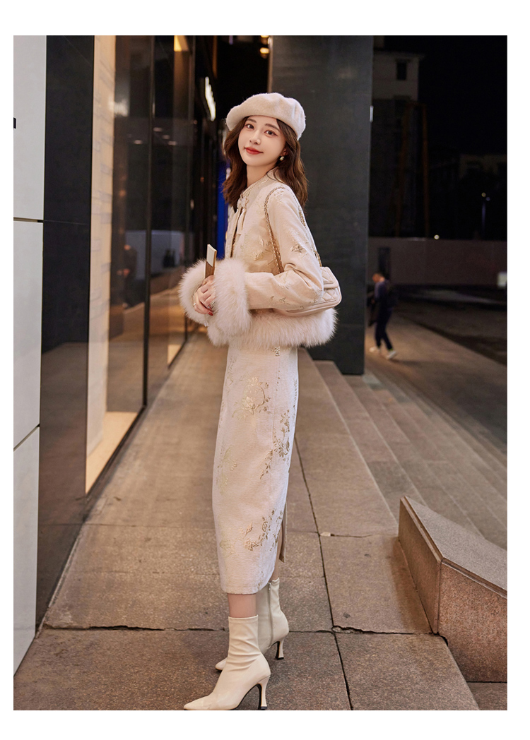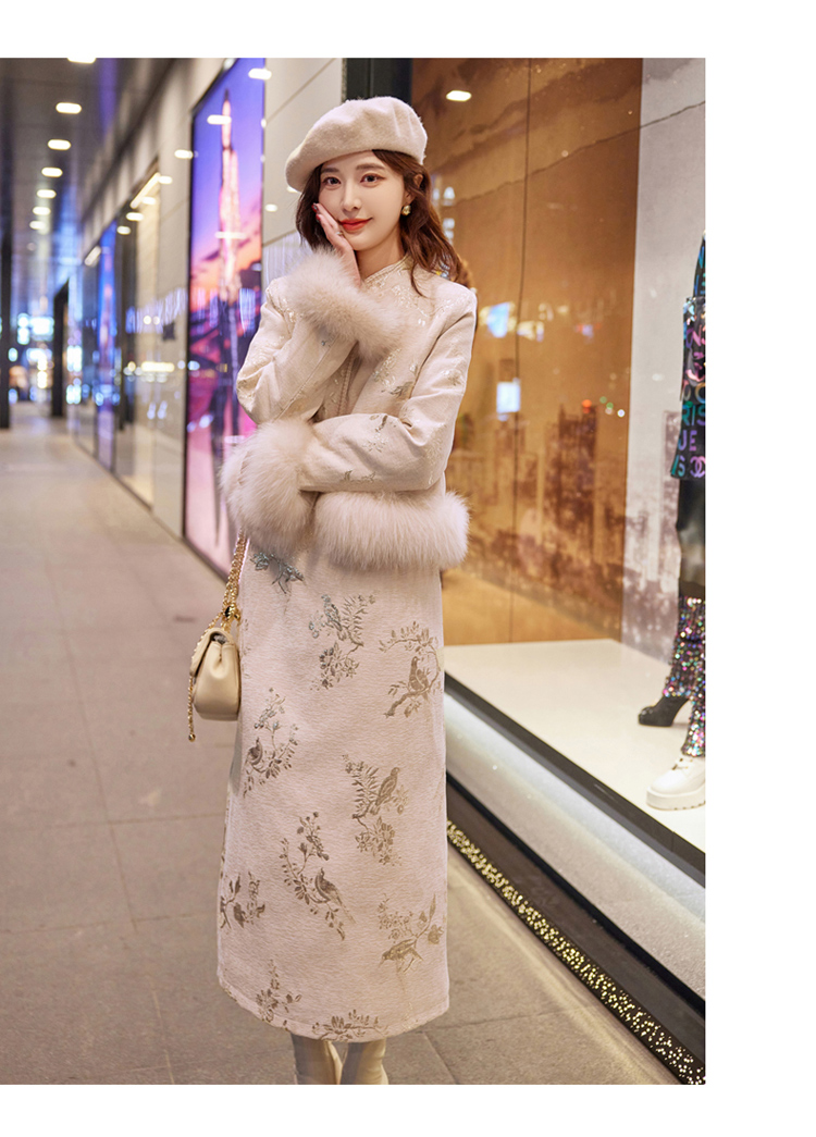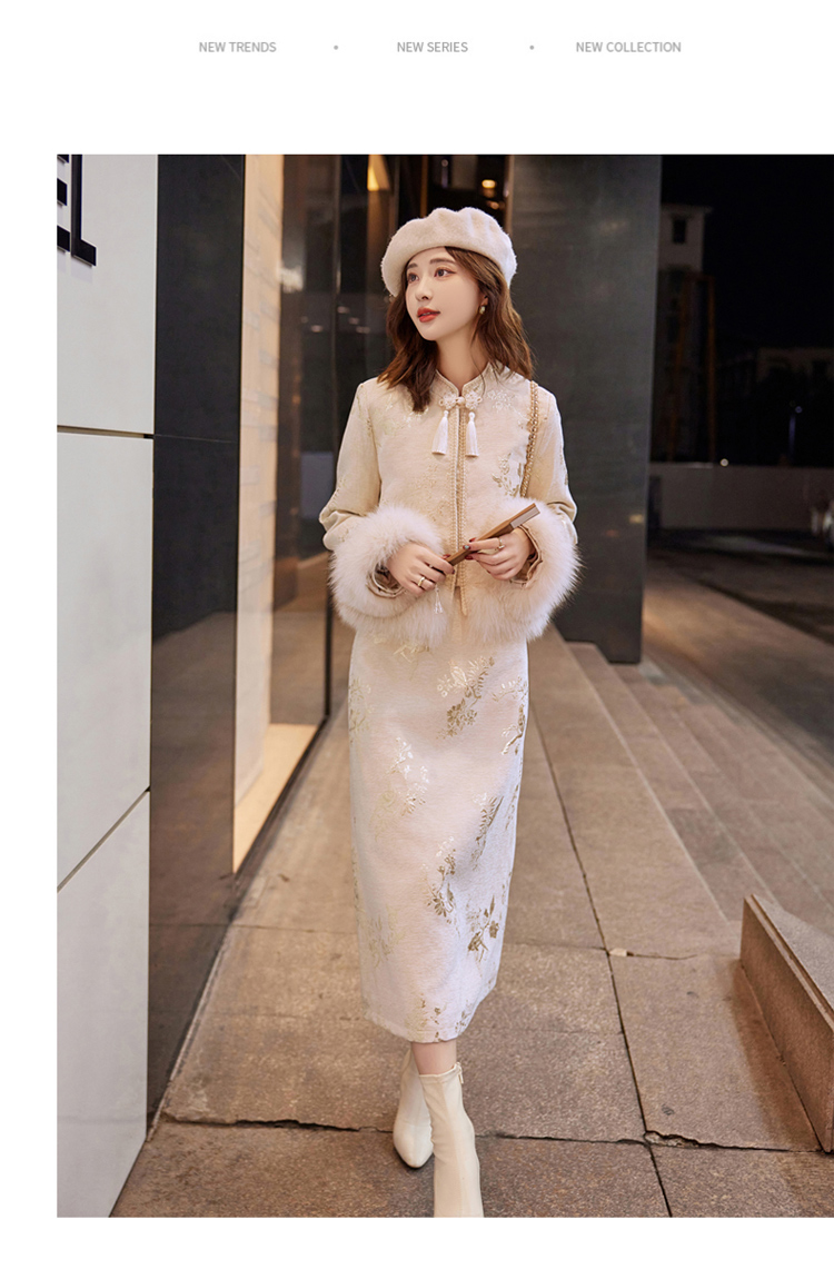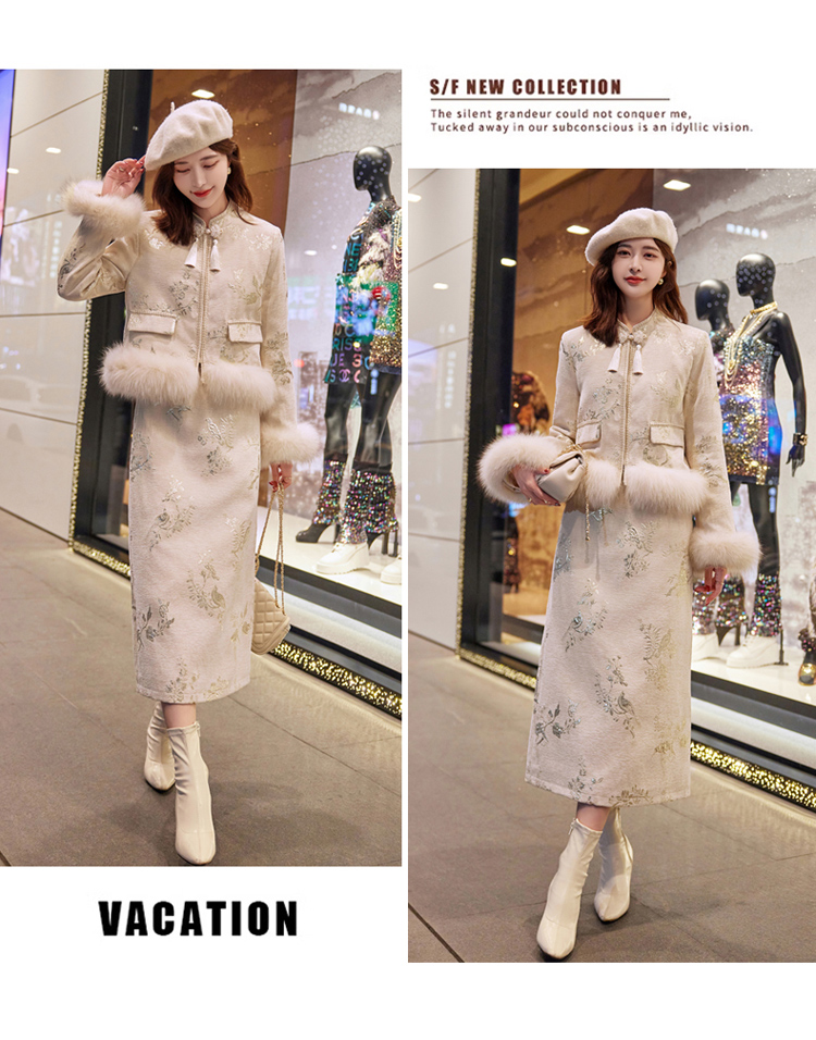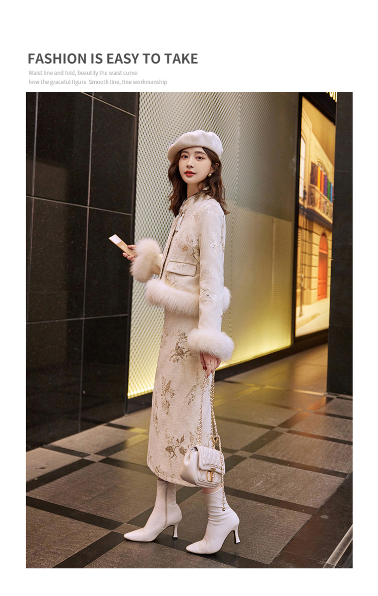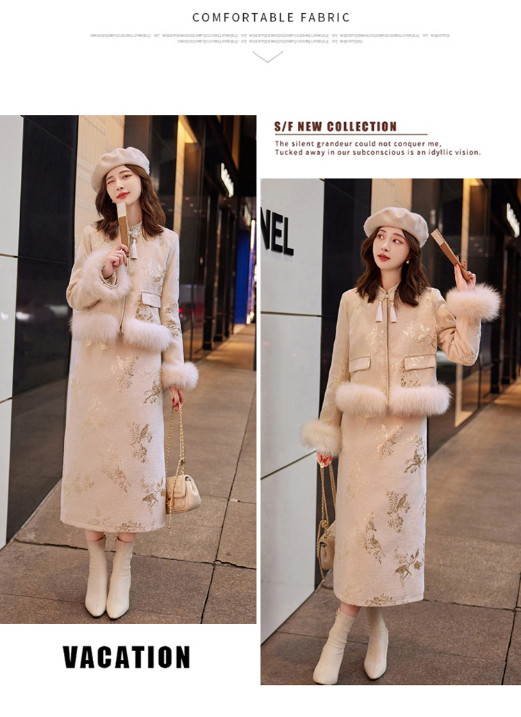新款冬装,白鸭绒真狐狸毛新中式盘扣羽绒服套装(配真毛领配袖毛)HR-YJLY9029