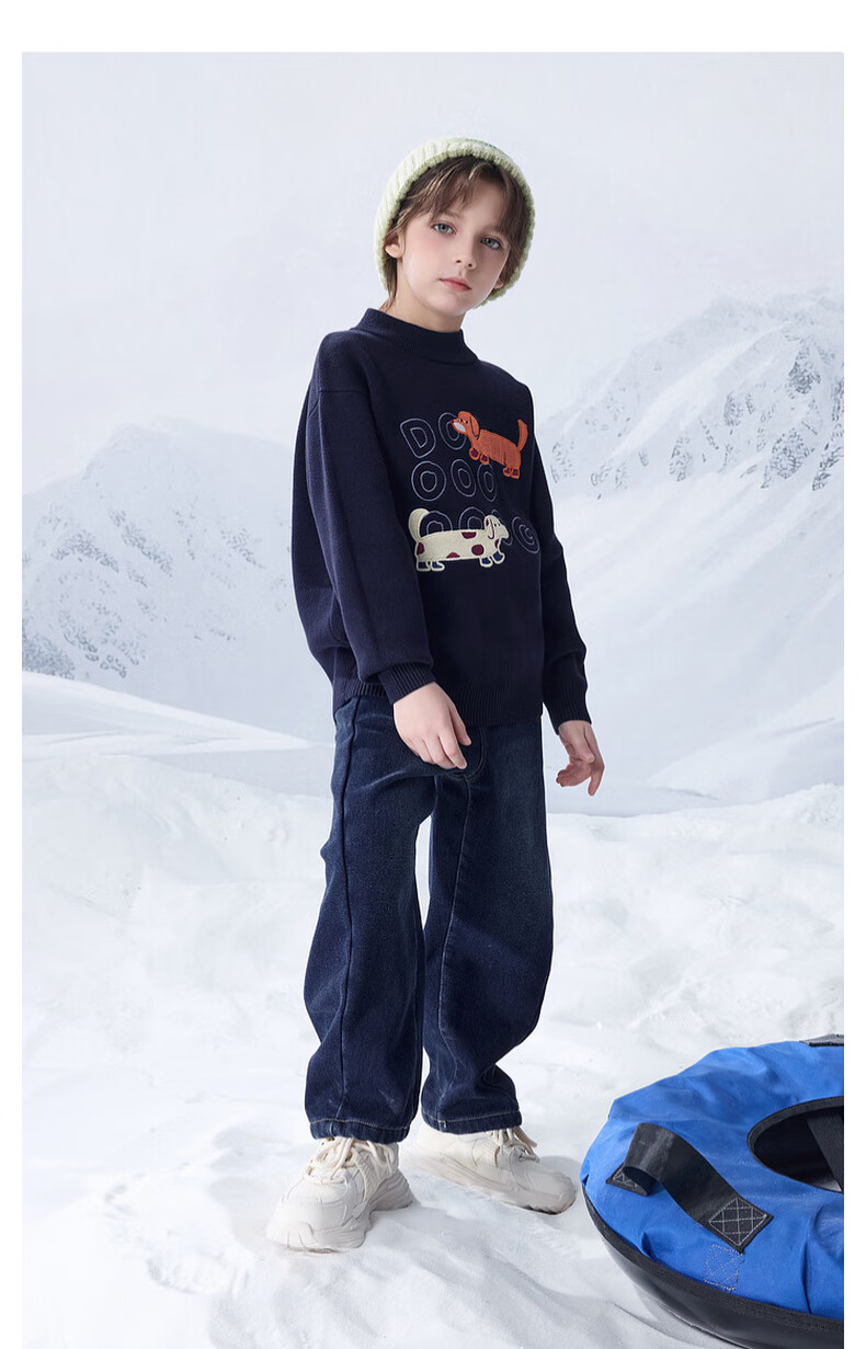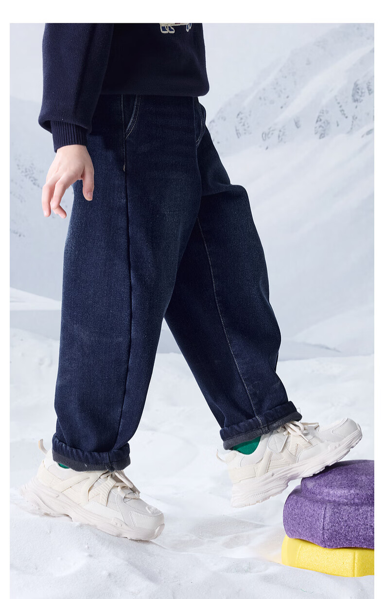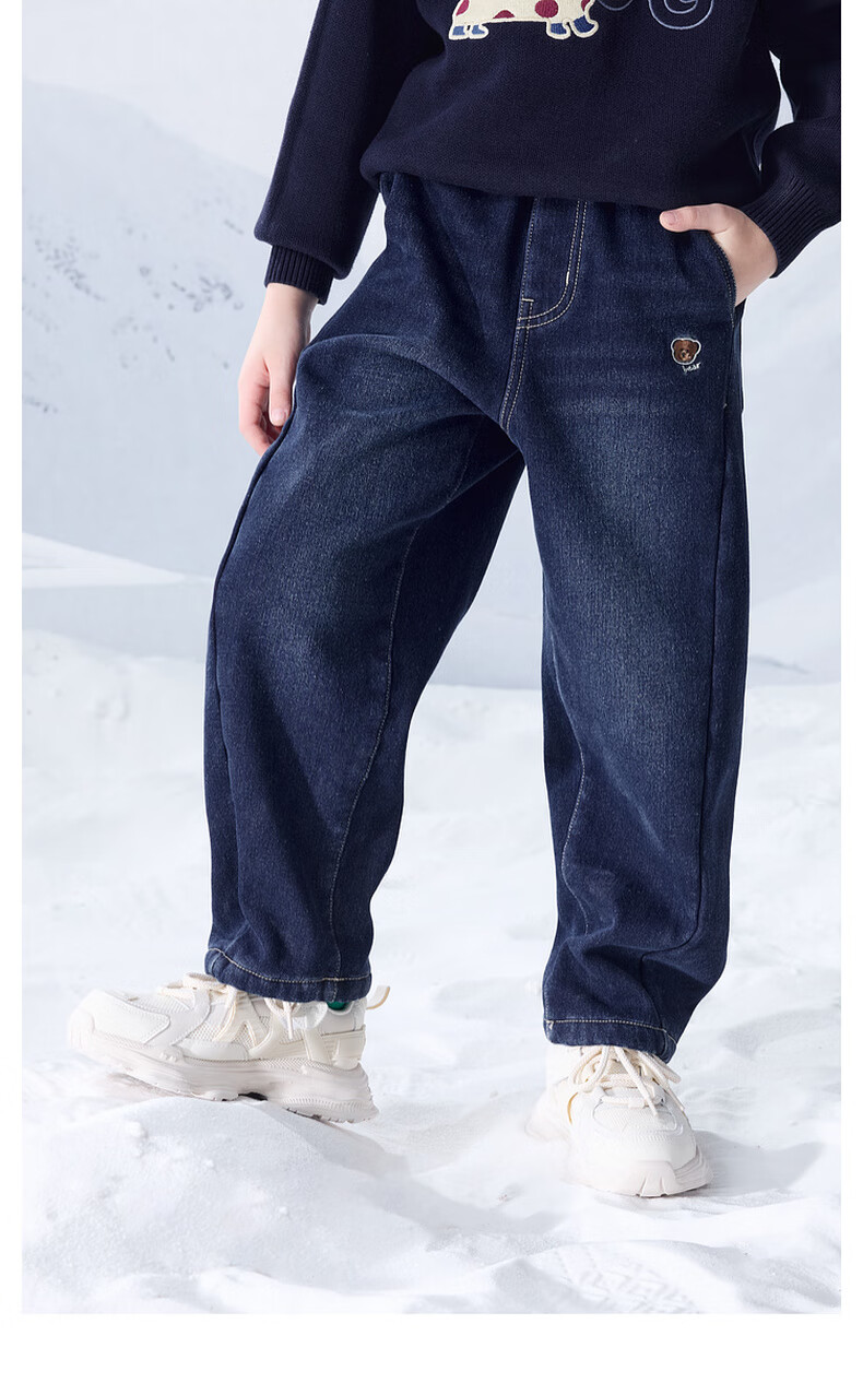 【MQD】冬季男大童学院风潮酷休闲百搭加绒牛仔裤
