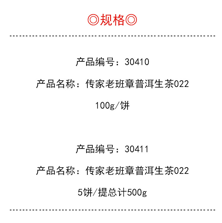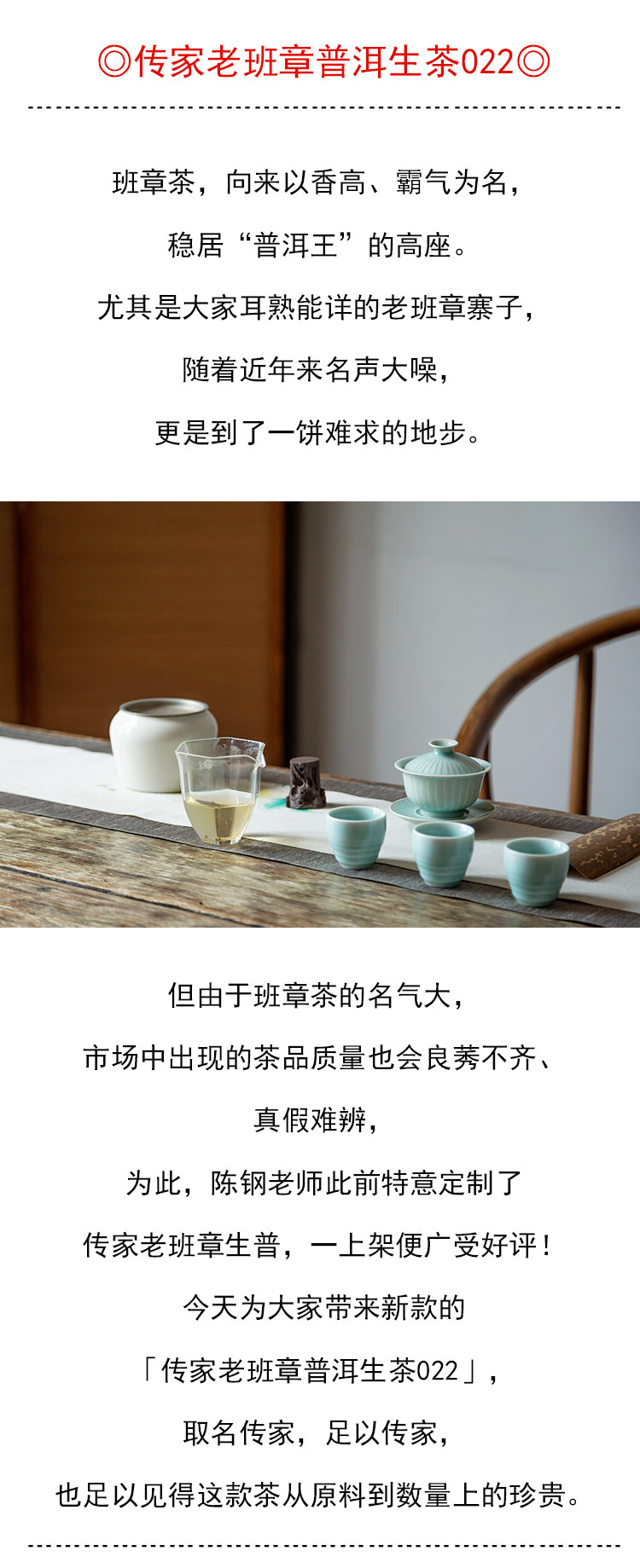 茶香记 传家老班章普洱生茶022 香气馥郁 甜润好喝 宜藏宜喝 生普