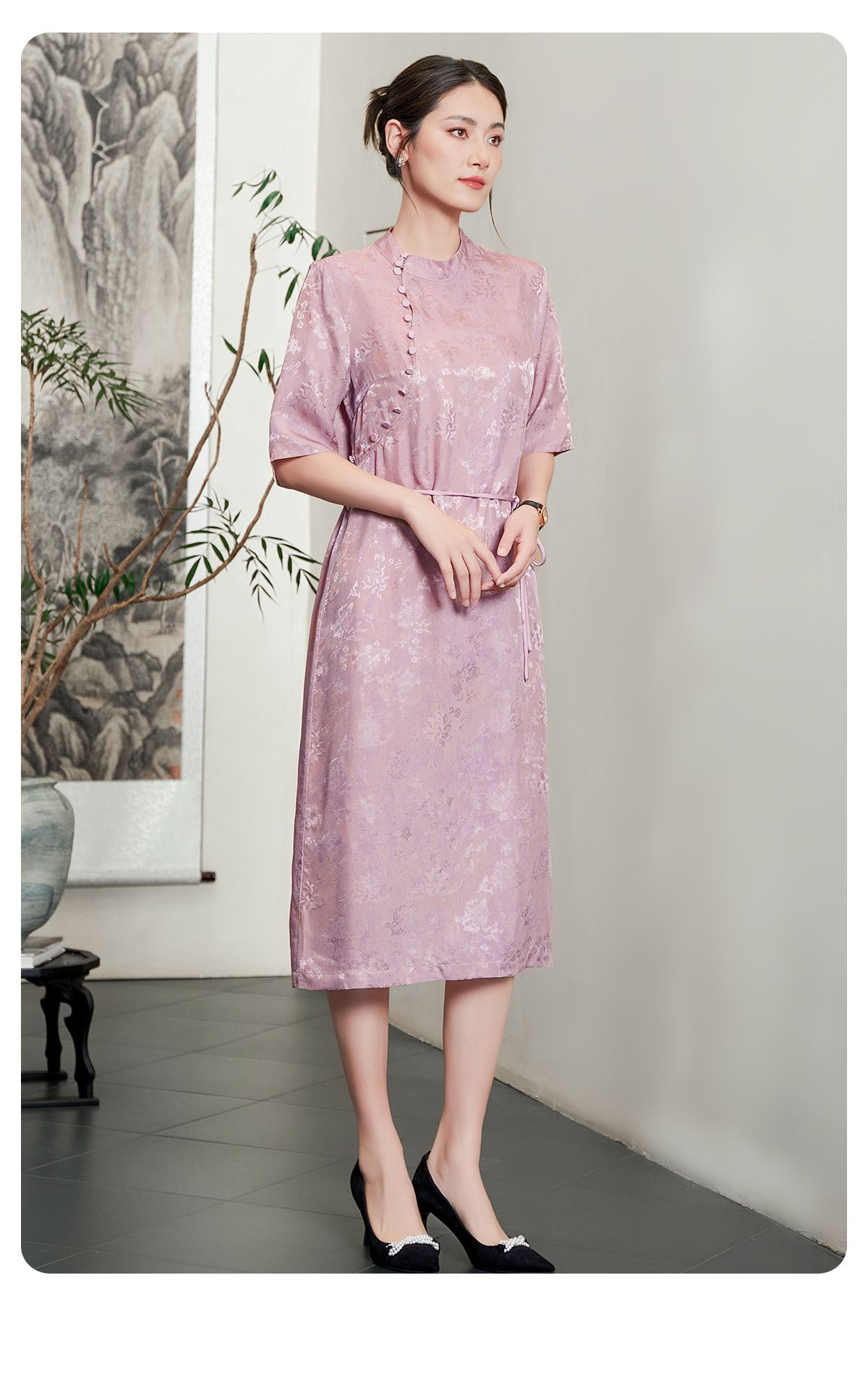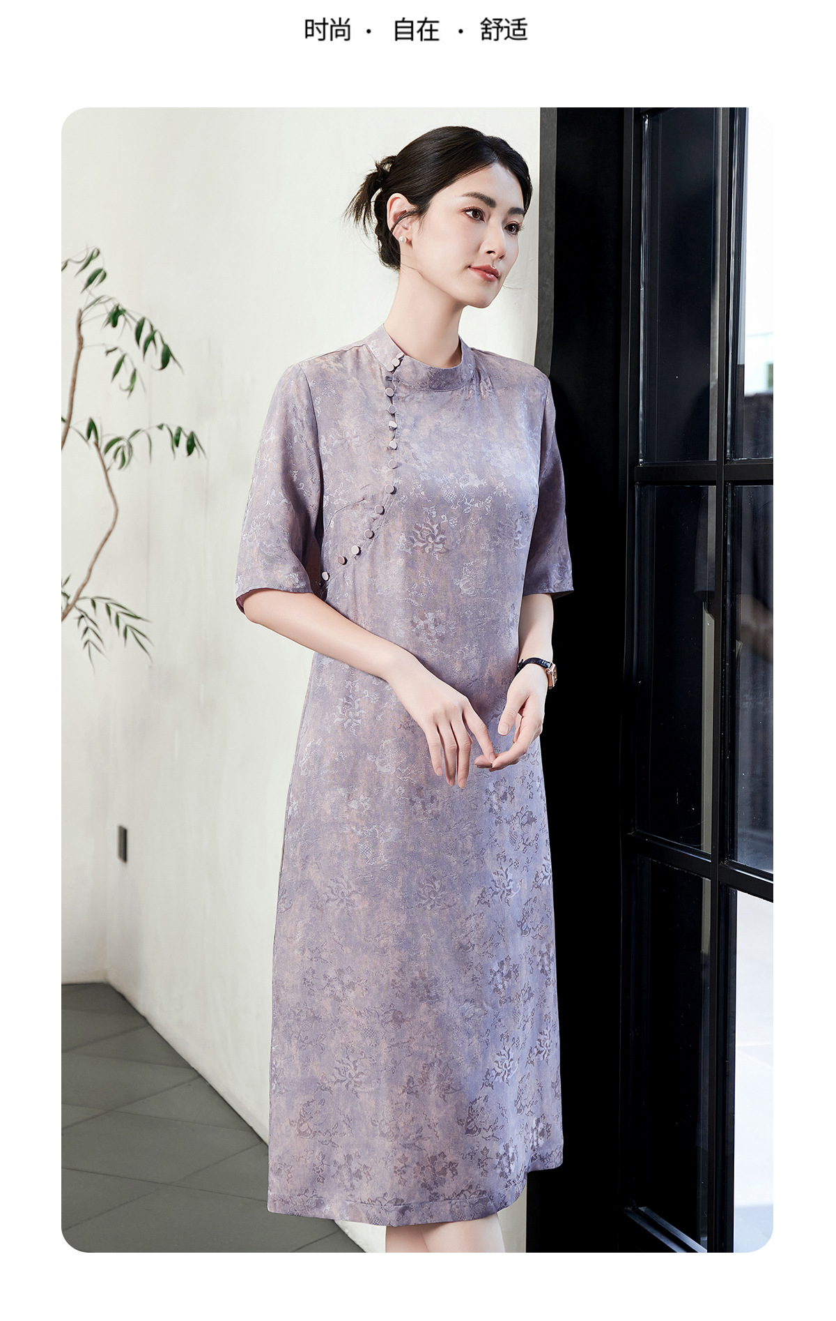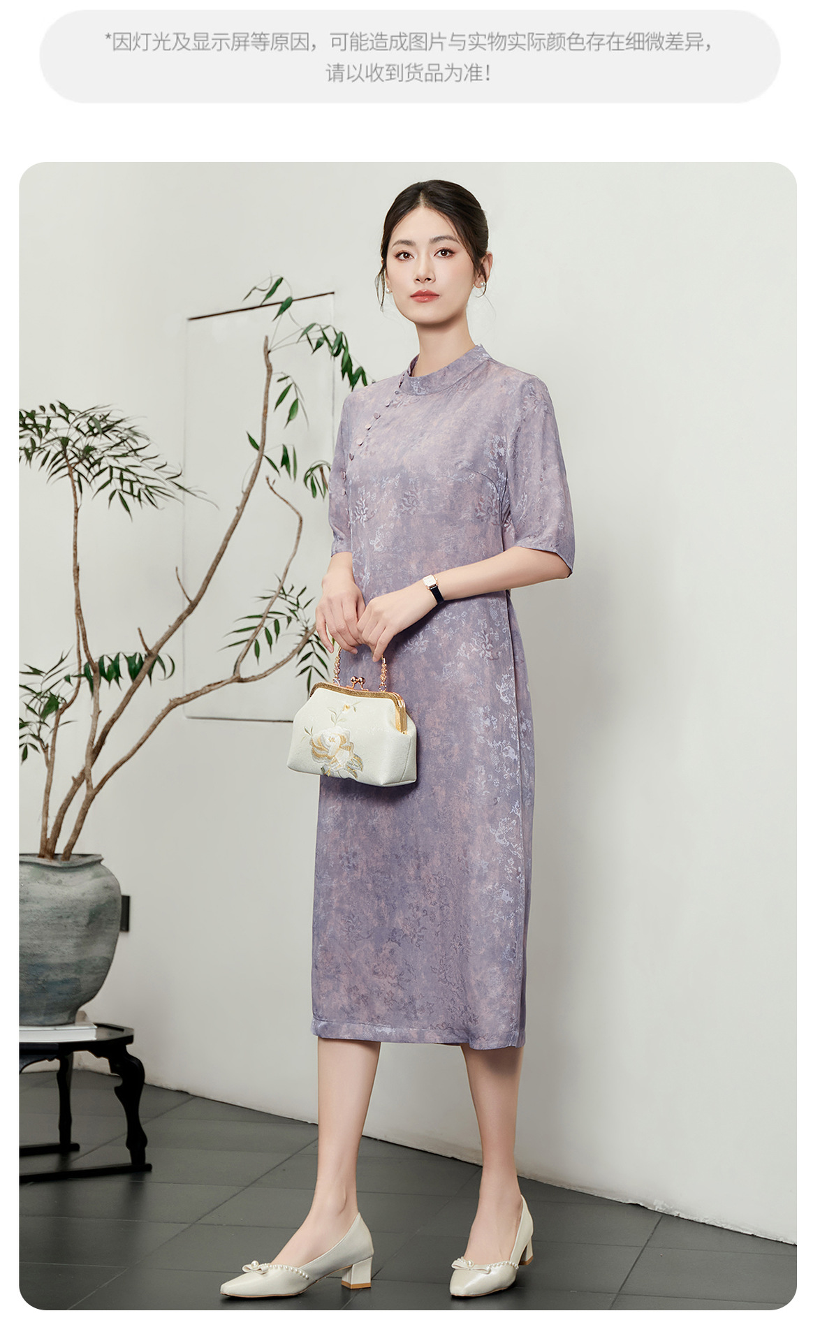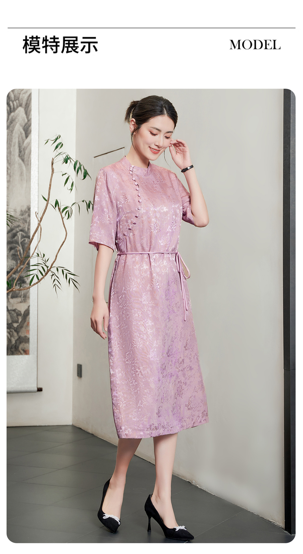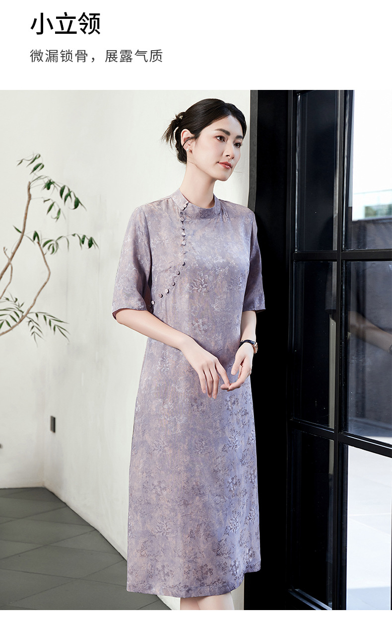 TC 54801改良新中式半高领显瘦复古暗纹提花桑蚕丝日常旗袍连衣裙 商品图4