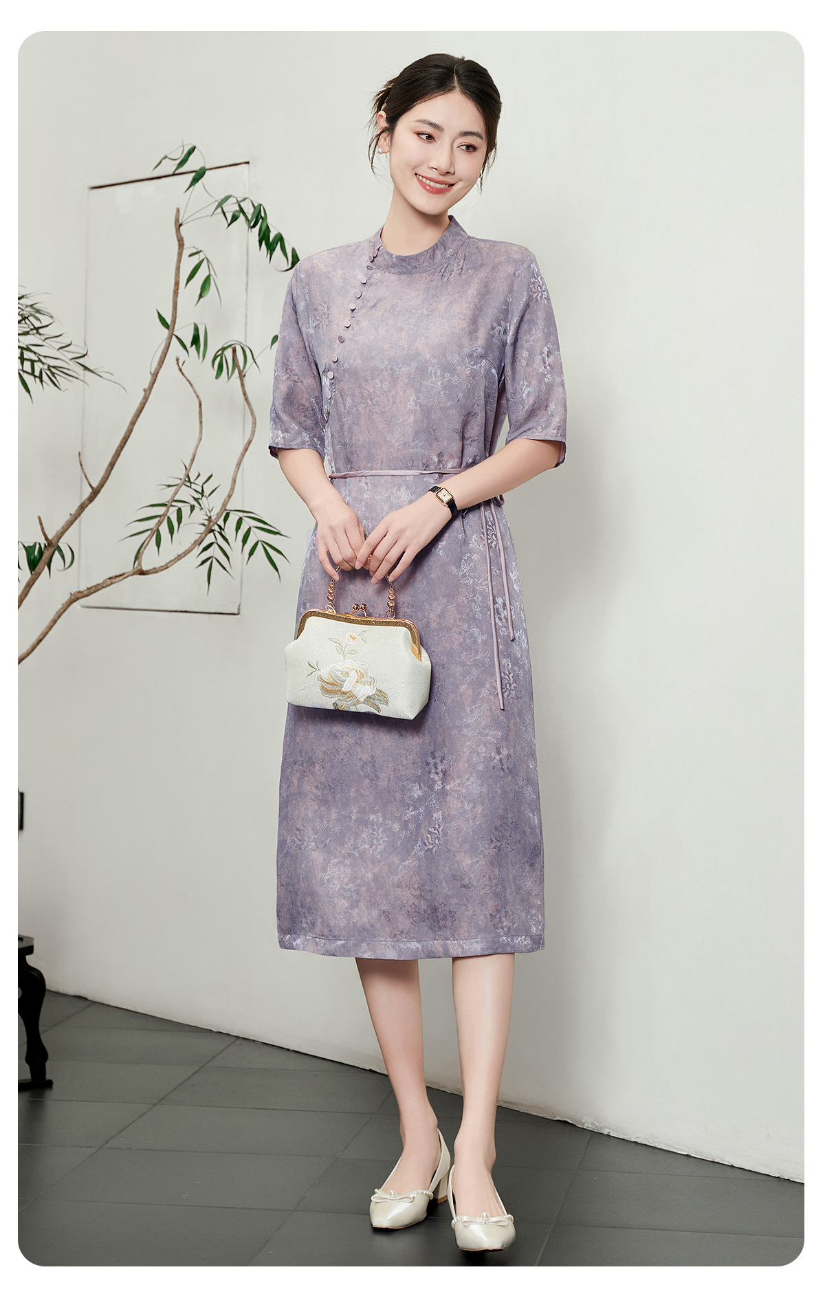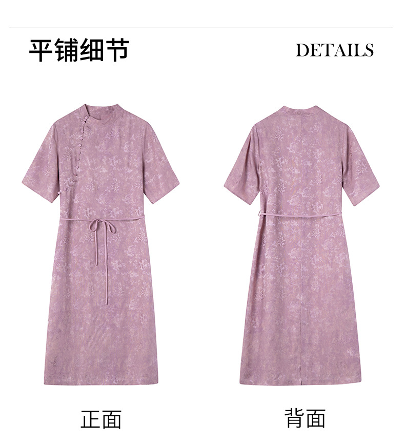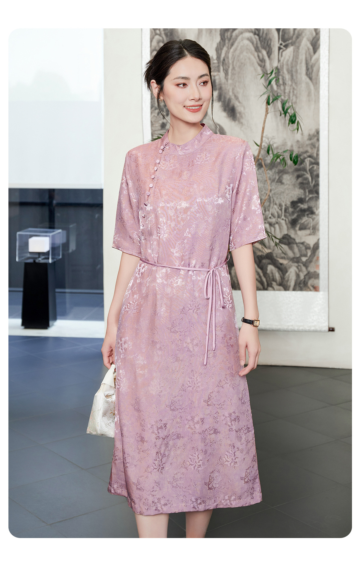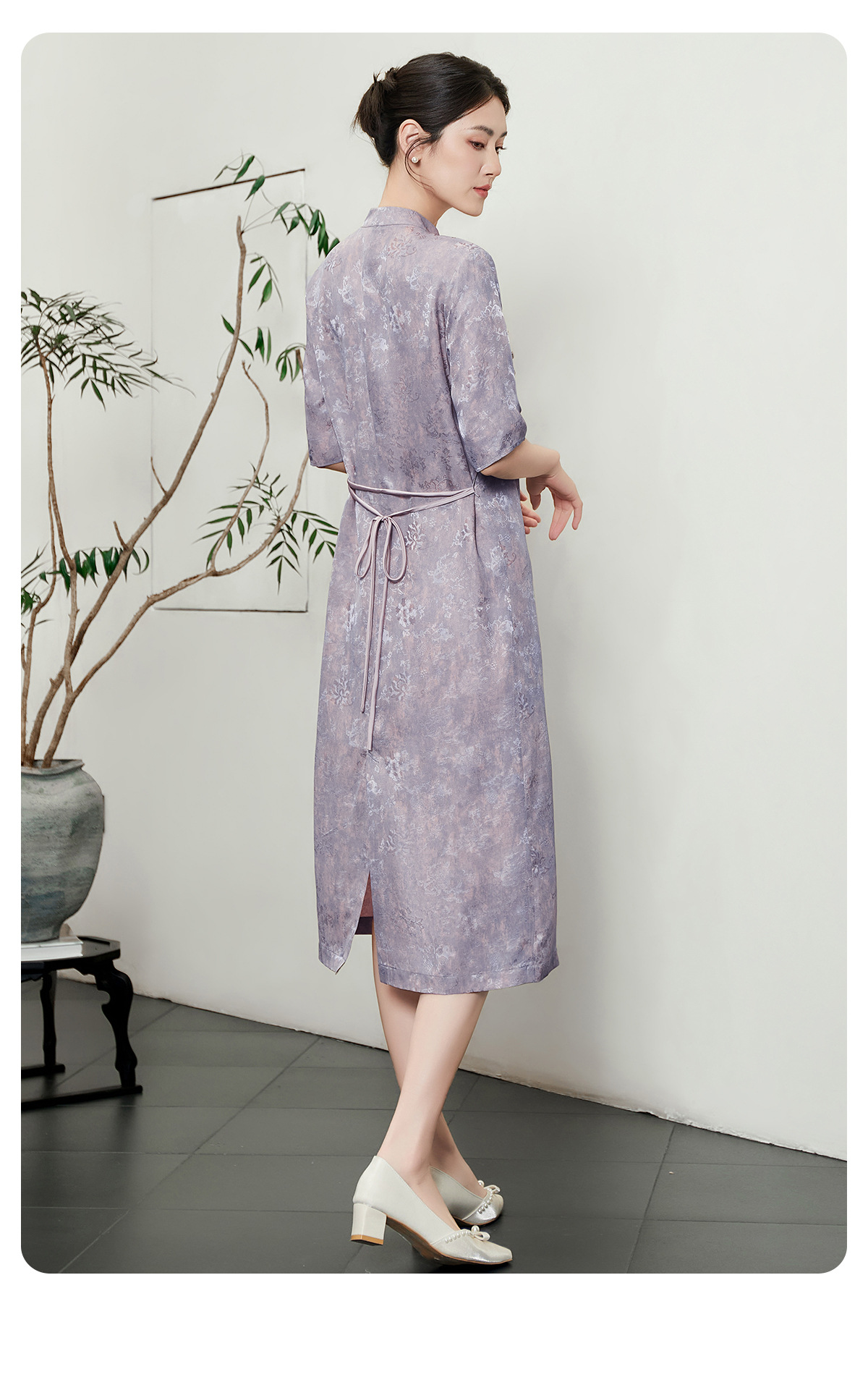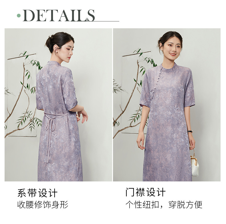 TC 54801改良新中式半高领显瘦复古暗纹提花桑蚕丝日常旗袍连衣裙 商品图4