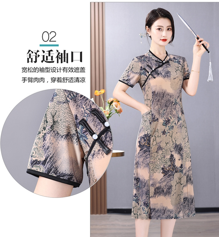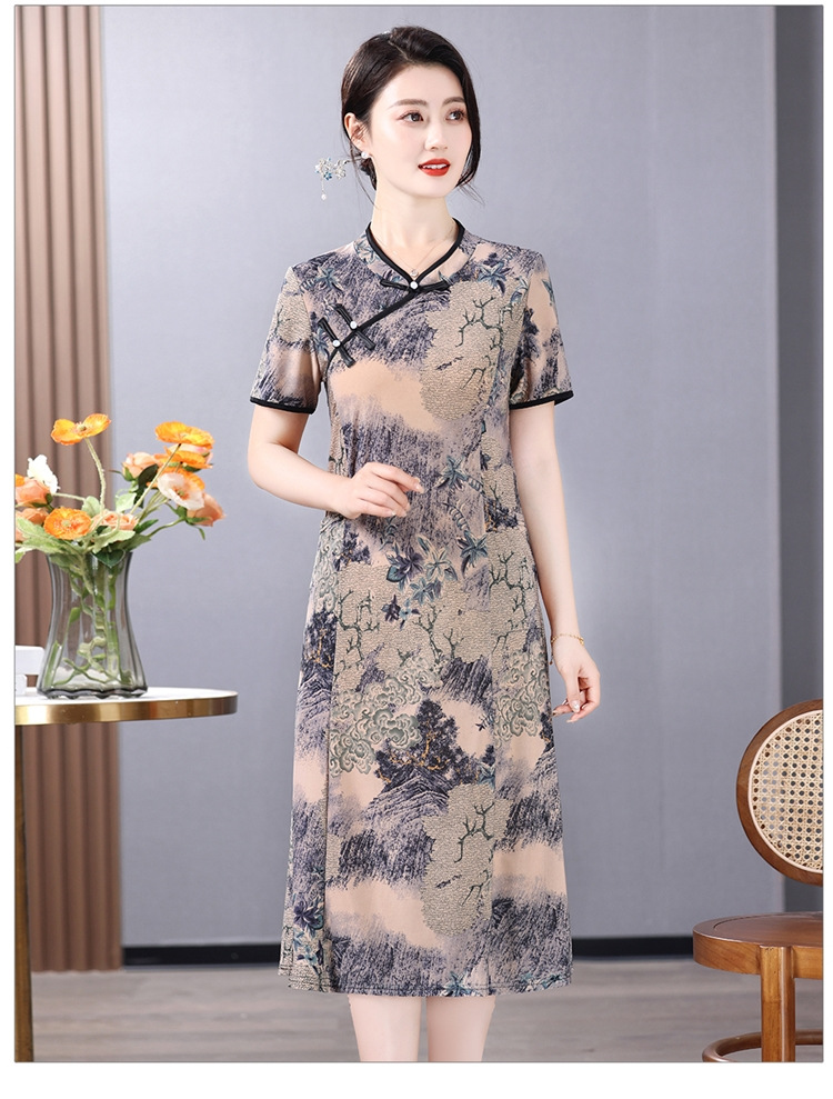 MC 2438妈妈夏装连衣裙国风改良旗袍裙