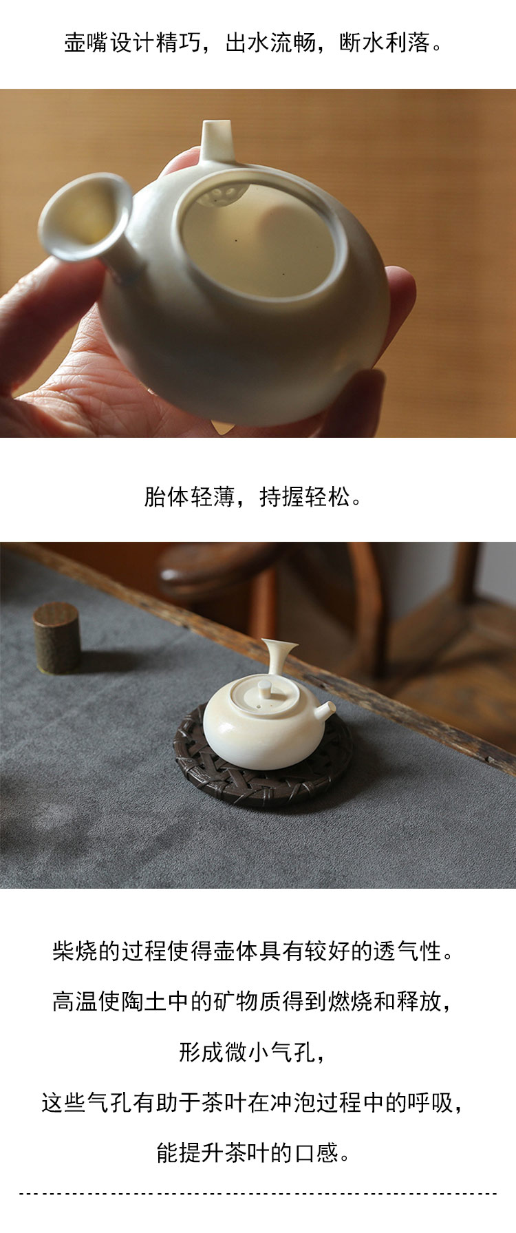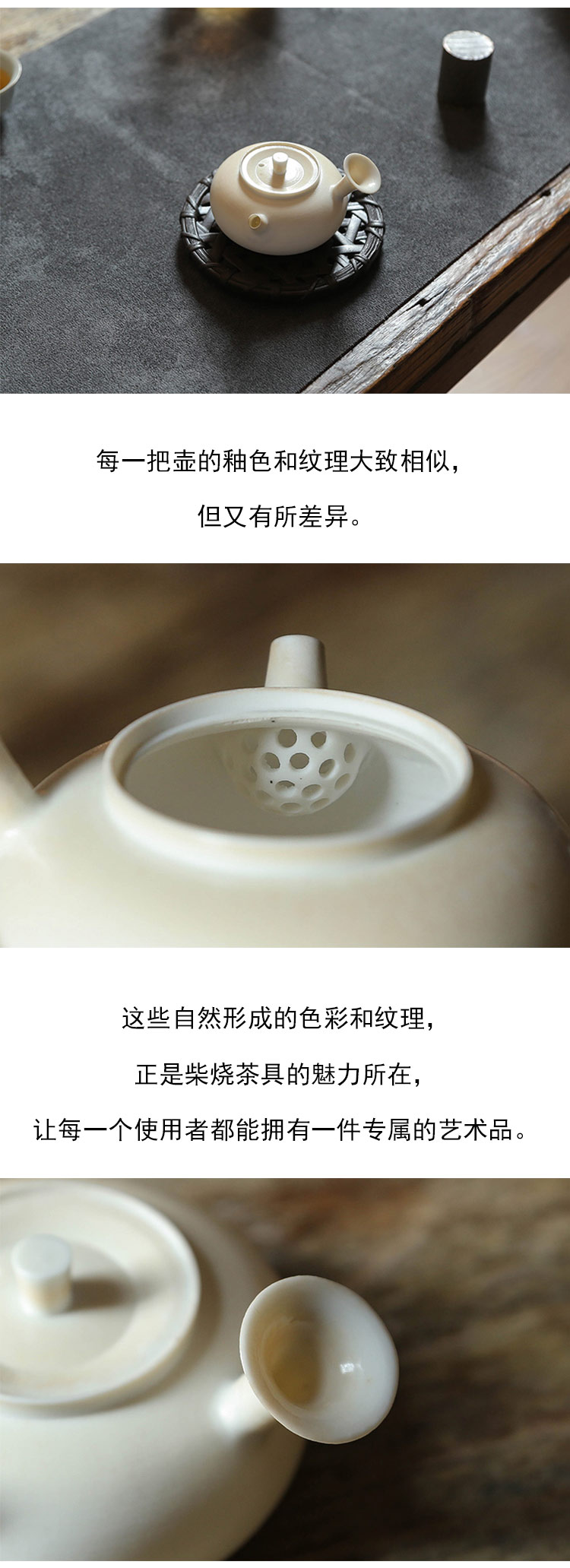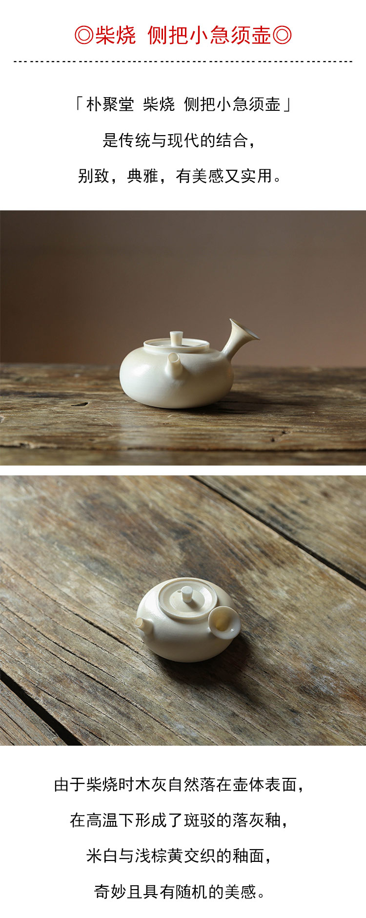 茶香记 朴聚堂柴烧侧把小急须壶90ml陶瓷泡茶壶古典素雅功夫茶具