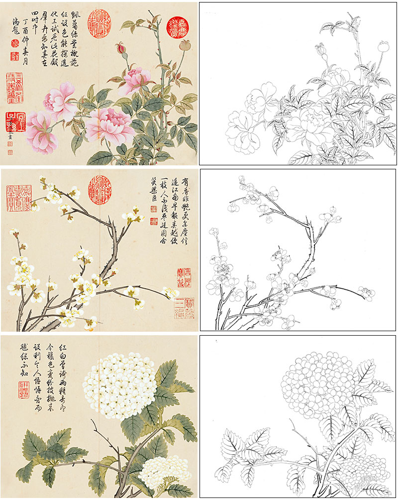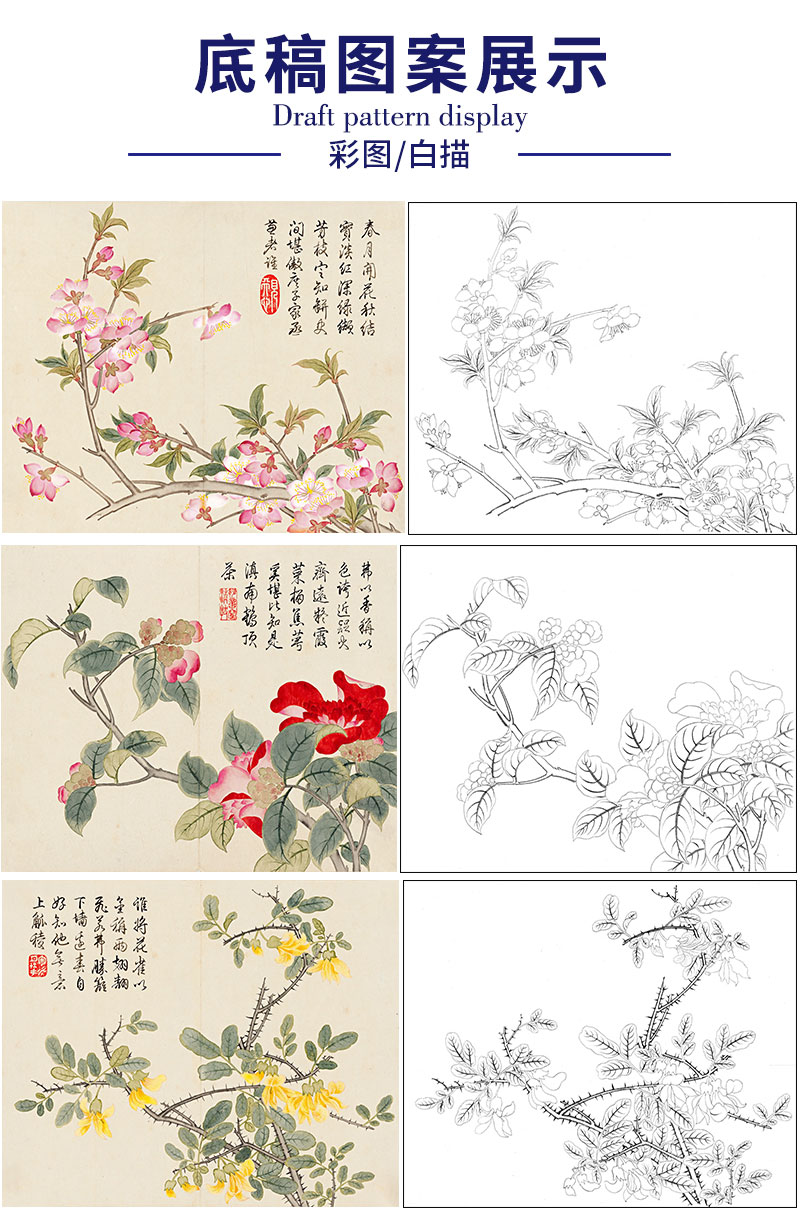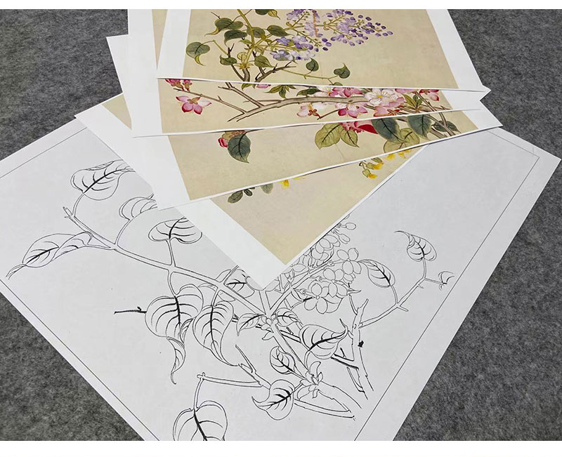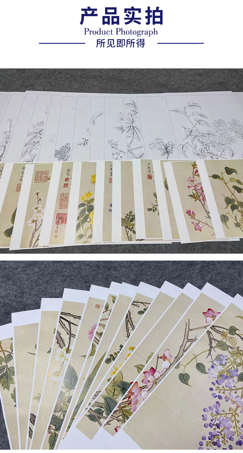 董诰工笔花鸟画白描底稿花卉册页小品一套十二幅册页初学者尺寸40*48厘米MT08