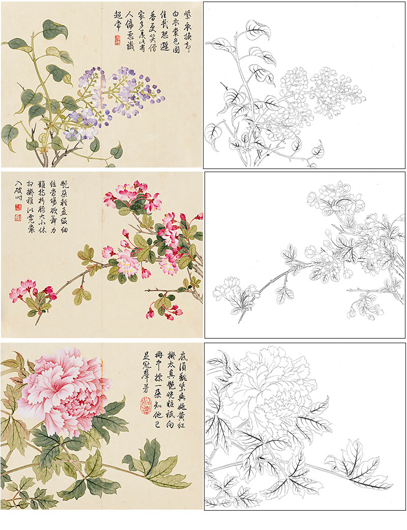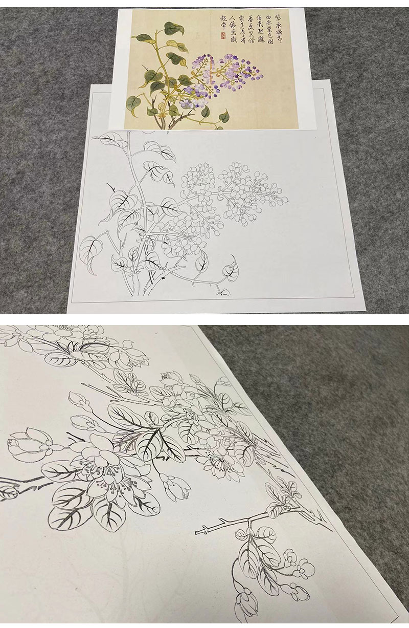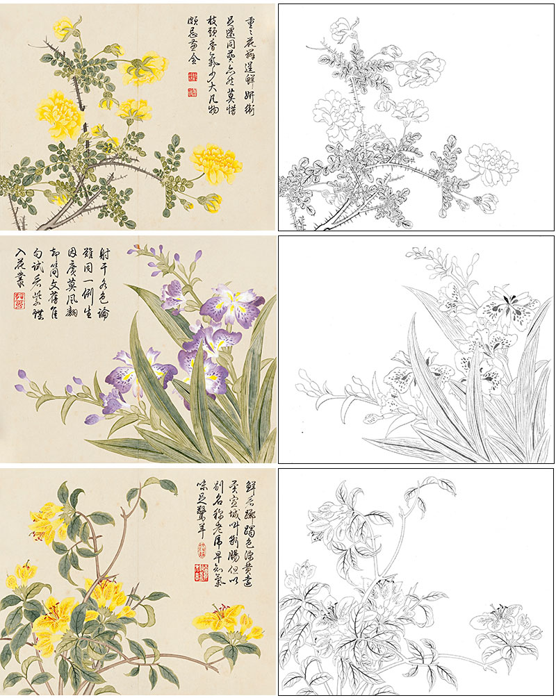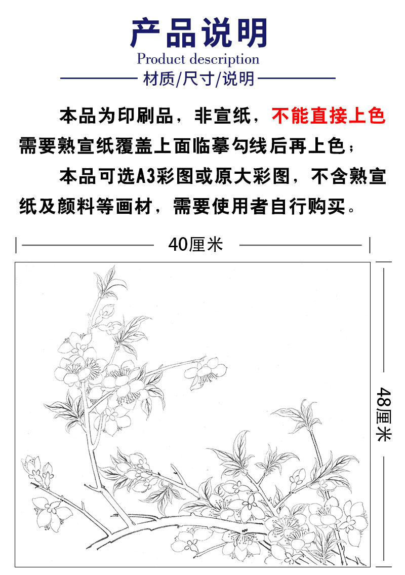 董诰工笔花鸟画白描底稿花卉册页小品一套十二幅册页初学者尺寸40*48厘米MT08