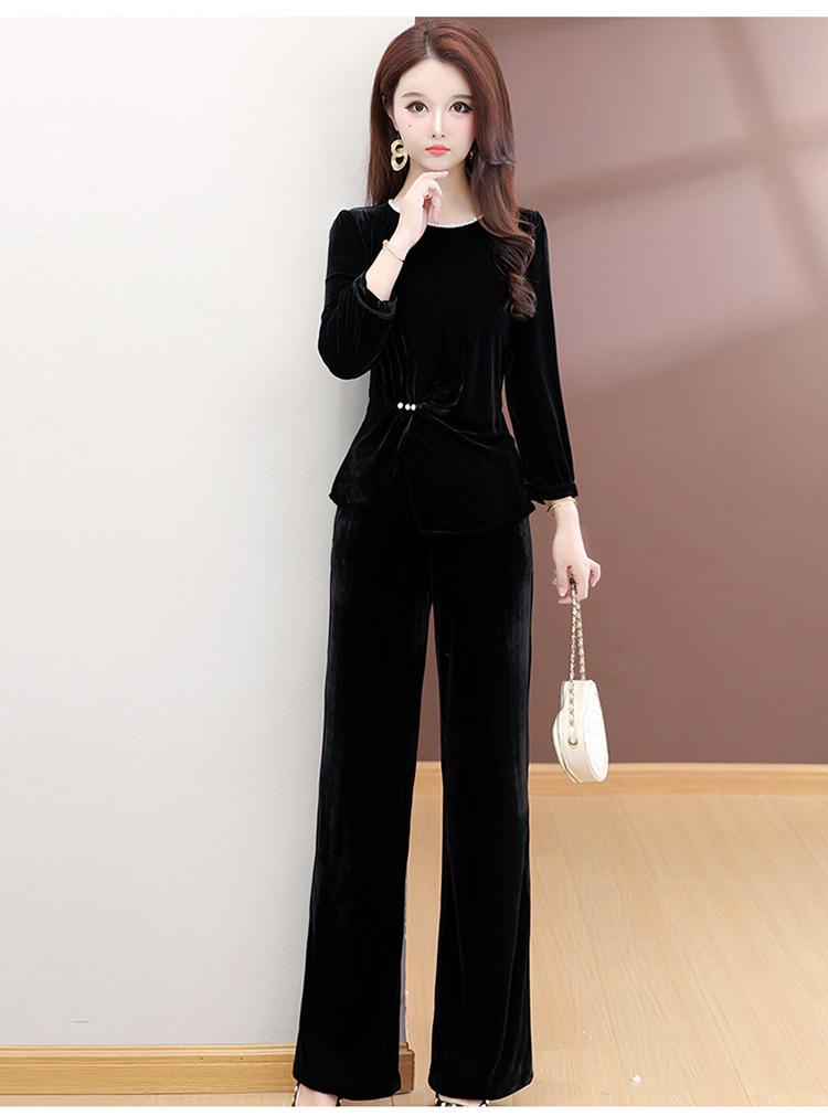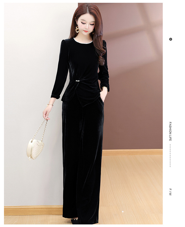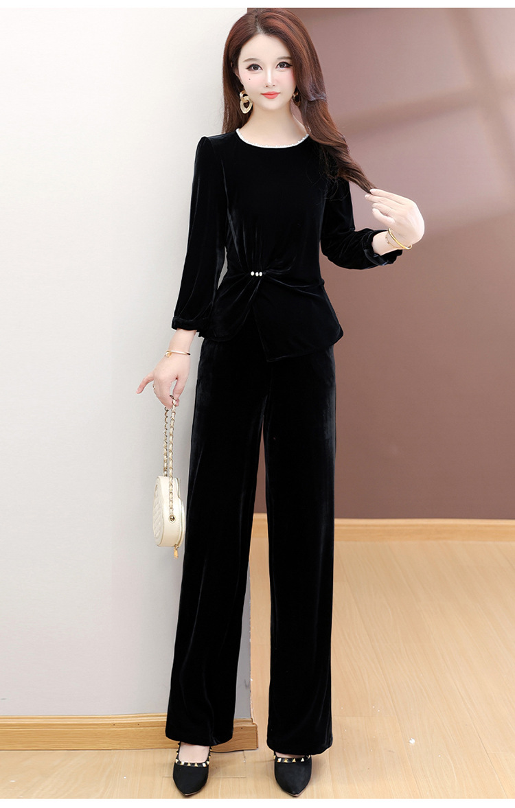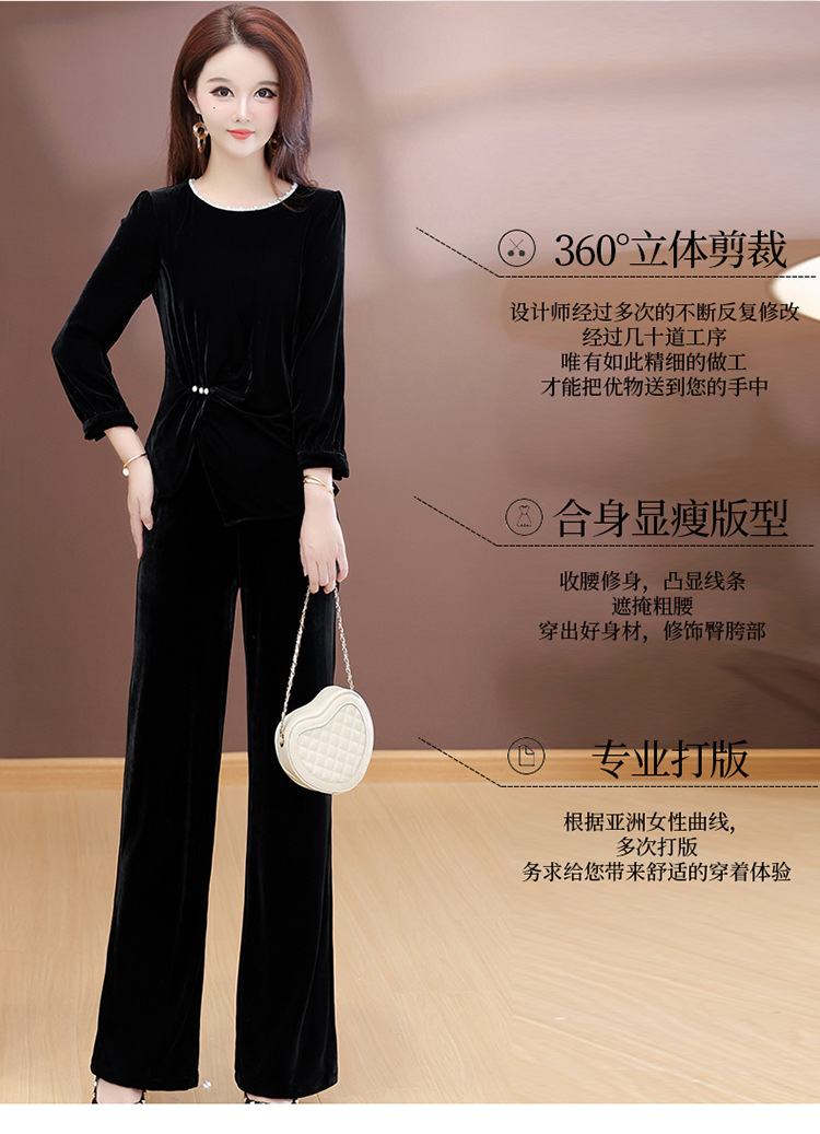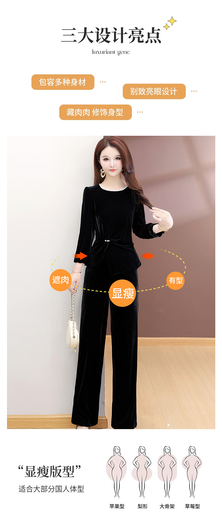 QYM 25YS22-Y套装金丝绒小衫+阔腿裤两件套 商品图0