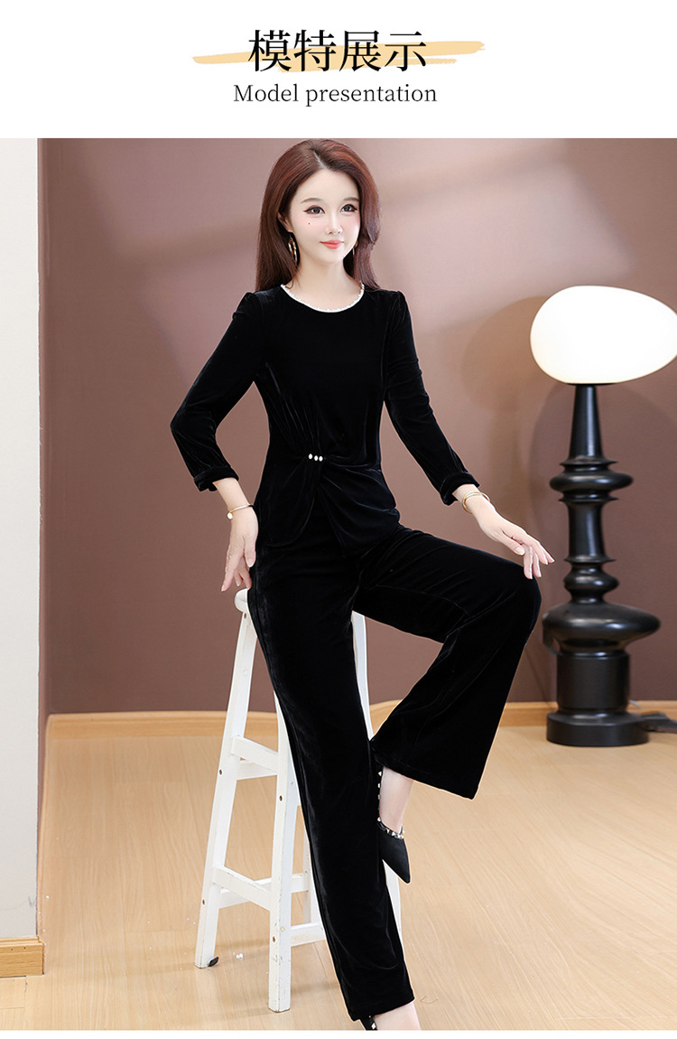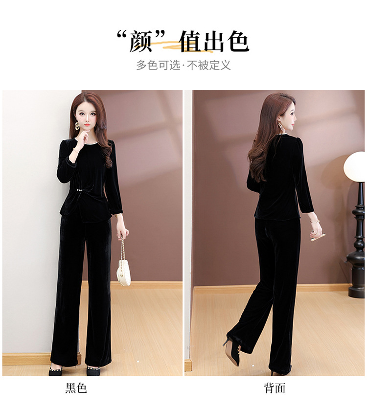 QYM 25YS22-Y套装金丝绒小衫+阔腿裤两件套 商品图2