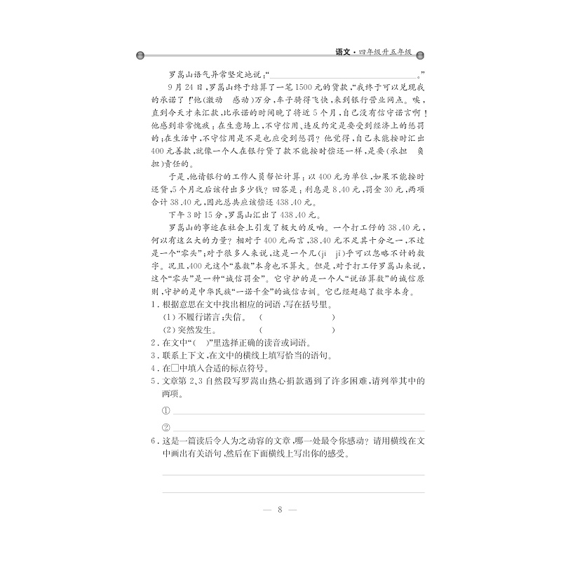 书名:小学年级衔接 导与练 (语文四年级升五年级)